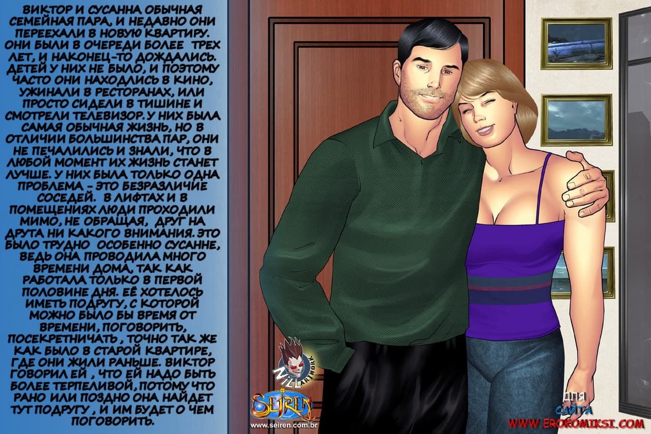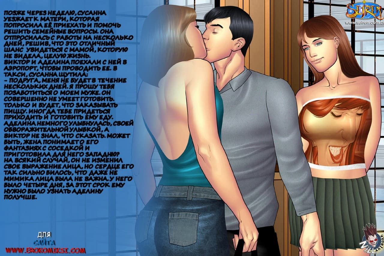 Эта эротическая история с картинками про семейную пару, переехавшую в новую квартиру. А также про их сексапильную соседку Аделину, с которой очень сдружилась жена, а вскоре и муж. И подружился он с ней до такой степени, что стал делиться с ее вагиной своей спермой.