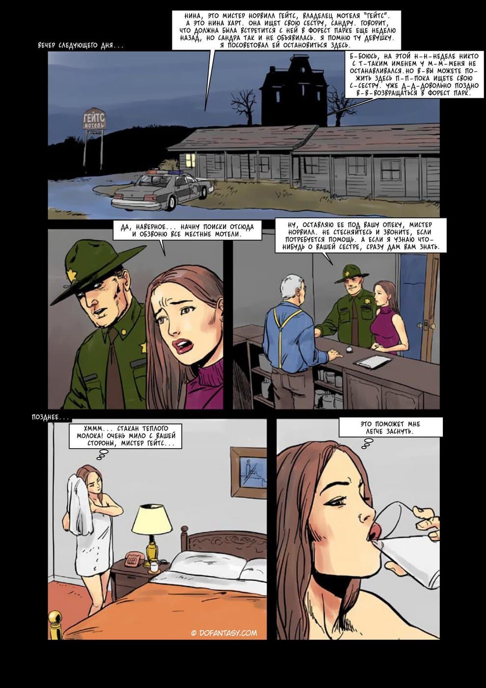 Эрокомикс Психоз. Это рисованное красивое и жестокое онлайн порно история об одинокой молодой девушке, которая остановилась на ночь в отеле. Она и не подозревала, что через некоторое время окажется в лапах извращенца, и он будет трахать ее во все доступные для этого места.