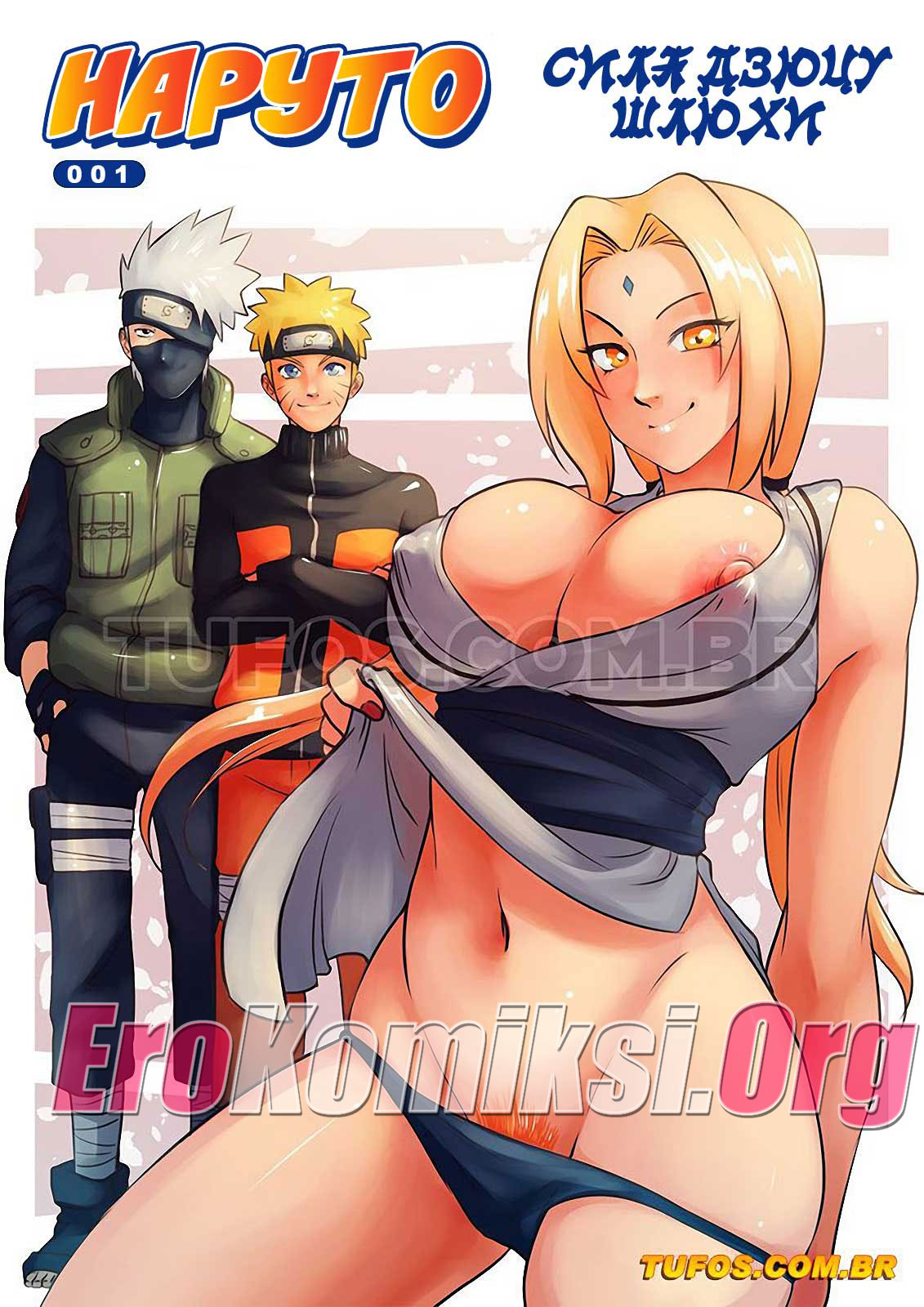 Наруто и Какаши отправились в бар, чтобы забрать от туда Цунаде и отвести её домой. Она сидела за барной стойкой очень пьяная и не хотела уходить. Но все же парни отвели милфу домой и женщина предложила им новую миссию. Парни заинтересовались и выслушали её, нужно было удовлетворить развратную женщину, чтобы она получила яркий оргазм. Парни без промедления начали выполнение этого задания.