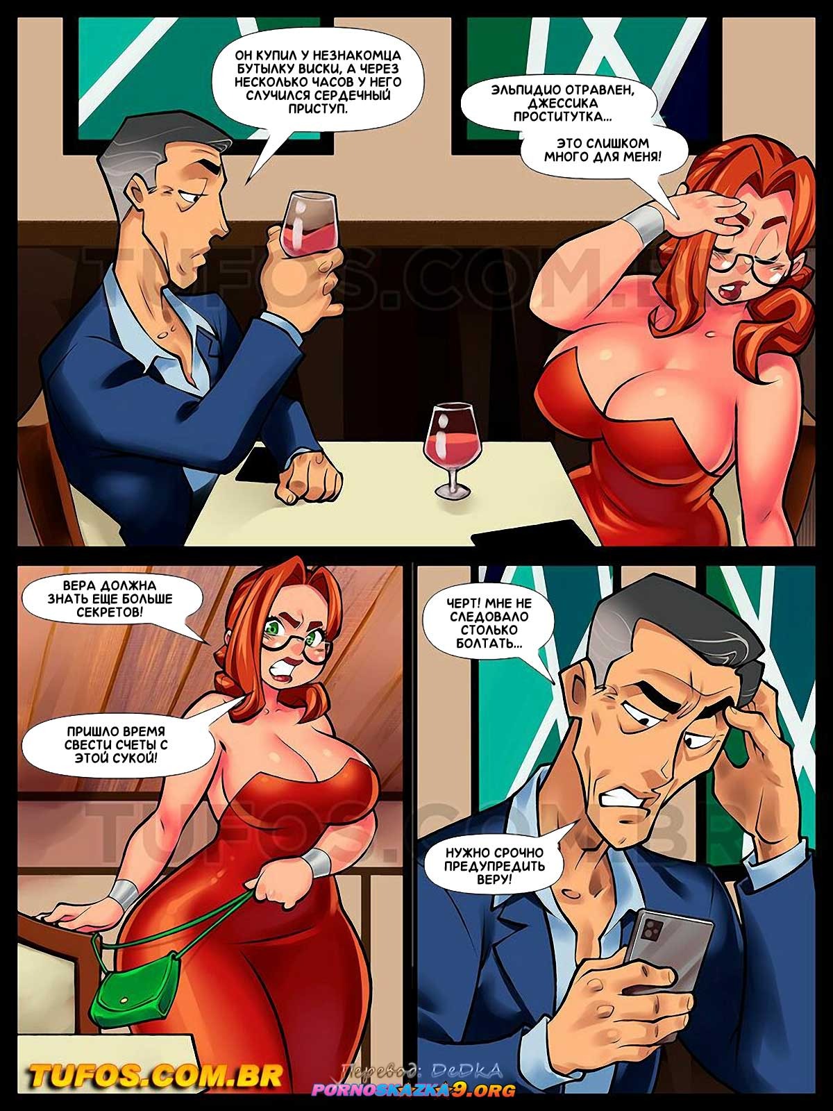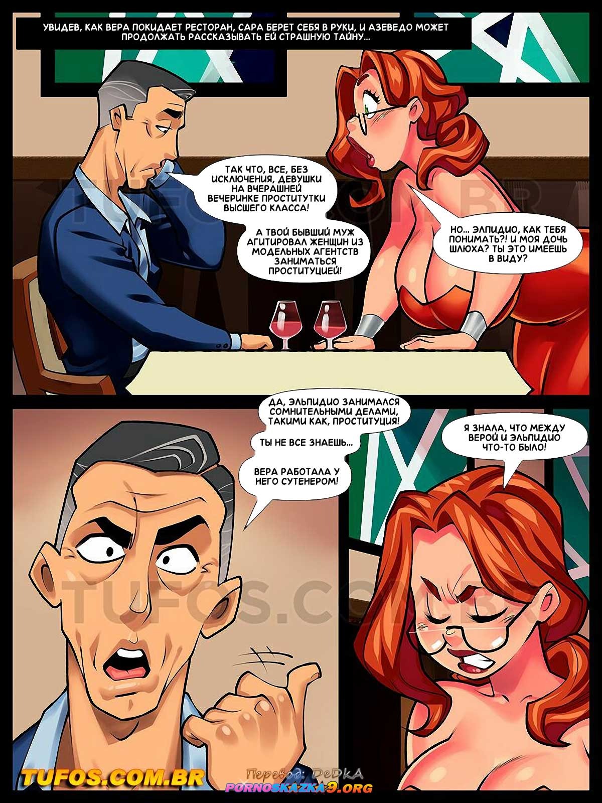 Секс комикс Сладострастные домохозяйки. Часть 6: Страшная тайна. Азеведо открывает Саре страшную тайну, это нечто действительно леденящее душу и способное вызвать большой переполох… Тем временем другая сладострастная домохозяйка, Вера, которая за свою жизнь совершила бесчисленное количество безумных поступков, собирается совершить самый безумный из них…