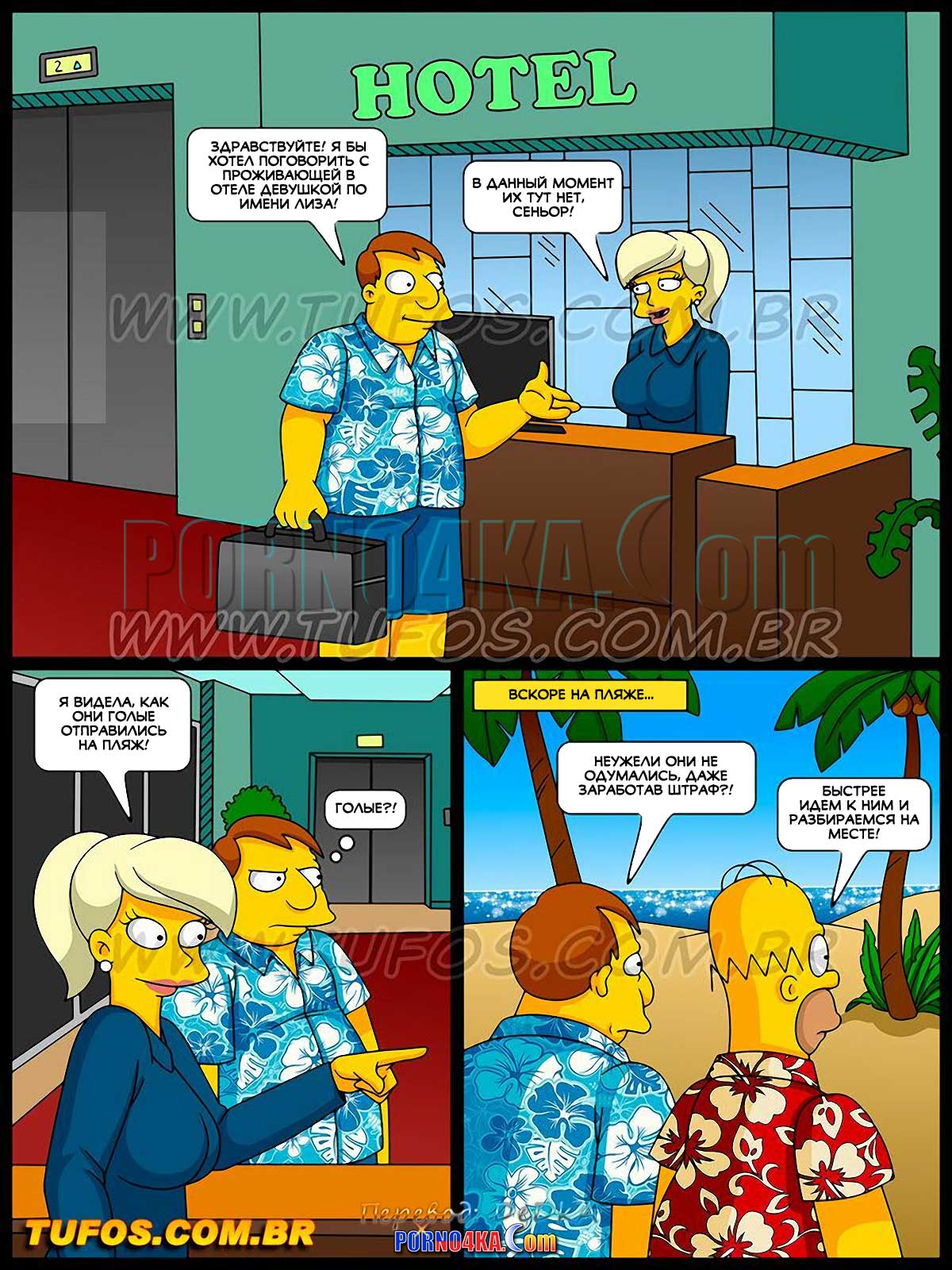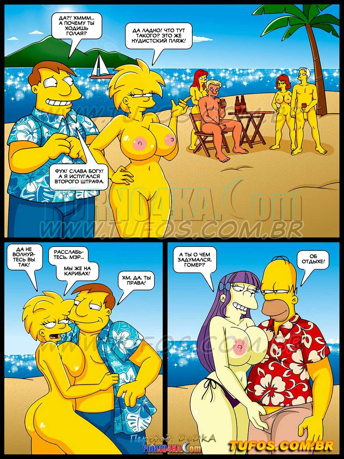 Порно комикс Симпсоны. Часть 47: Шлюхи на Карибах. Эпизод 3. Мэр Спрингфилда вместе с Гомером прибывает на Карибы на разборки, он в ярости из-за штрафа, который он получил из-за девушек… Мало этого, прибыв на место, они обнаруживают на пляже Лизу, Мэги, Шерри и Терри совершенно голыми!