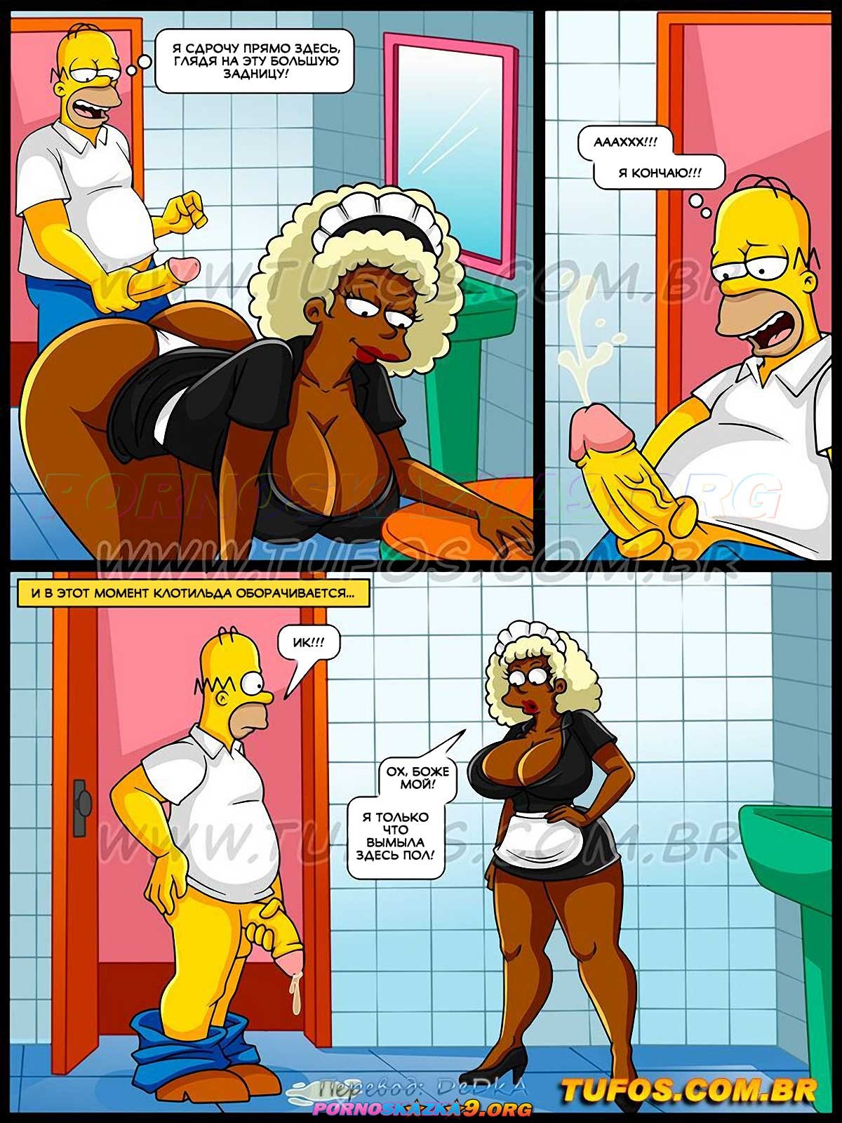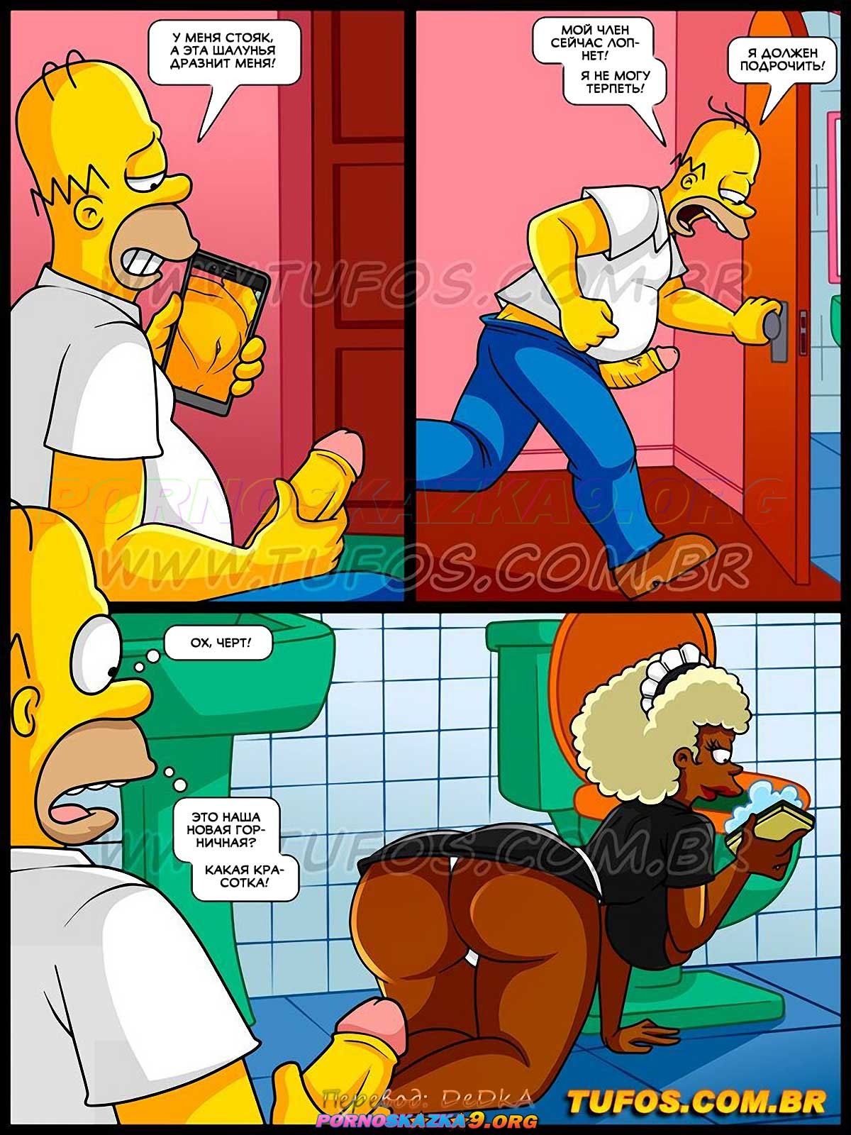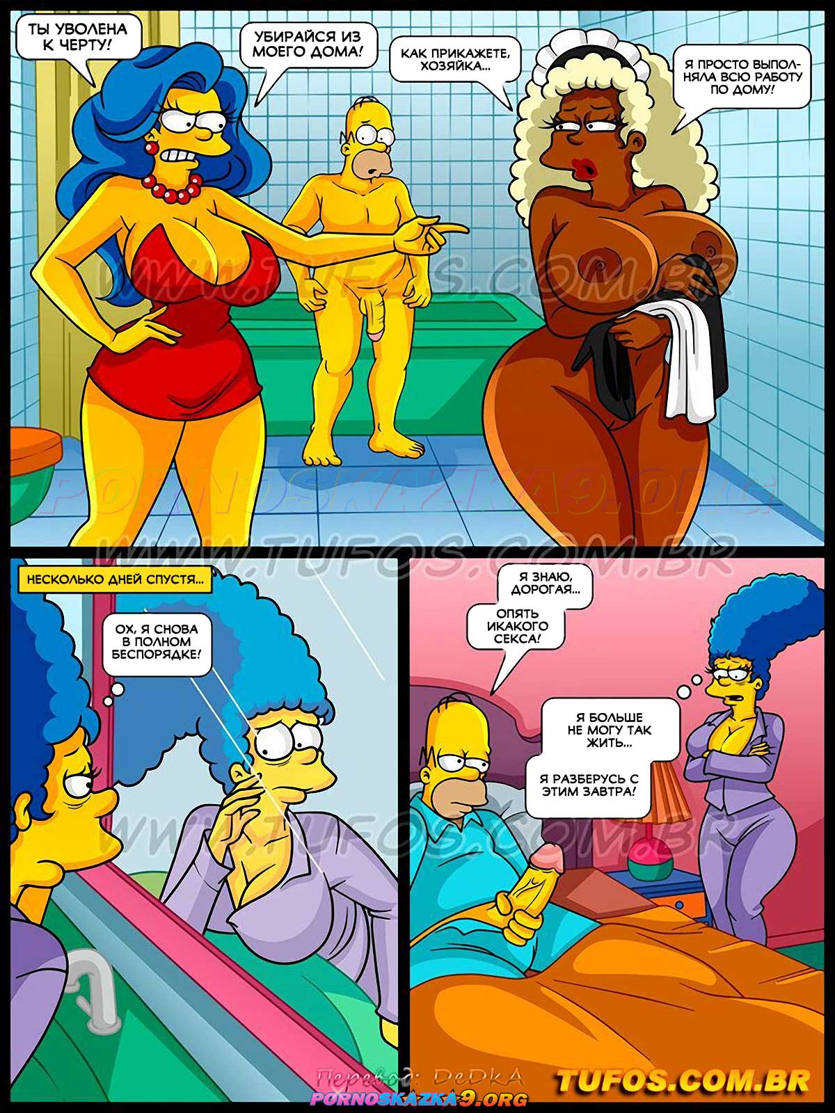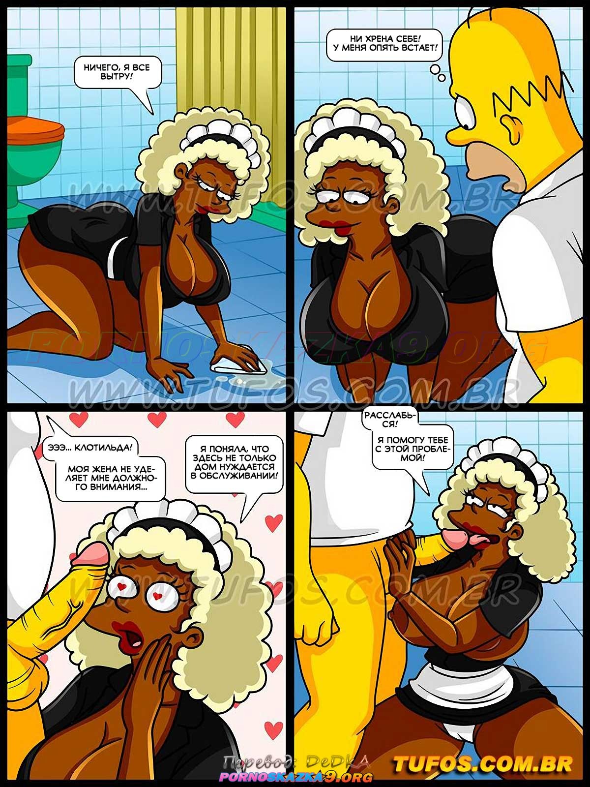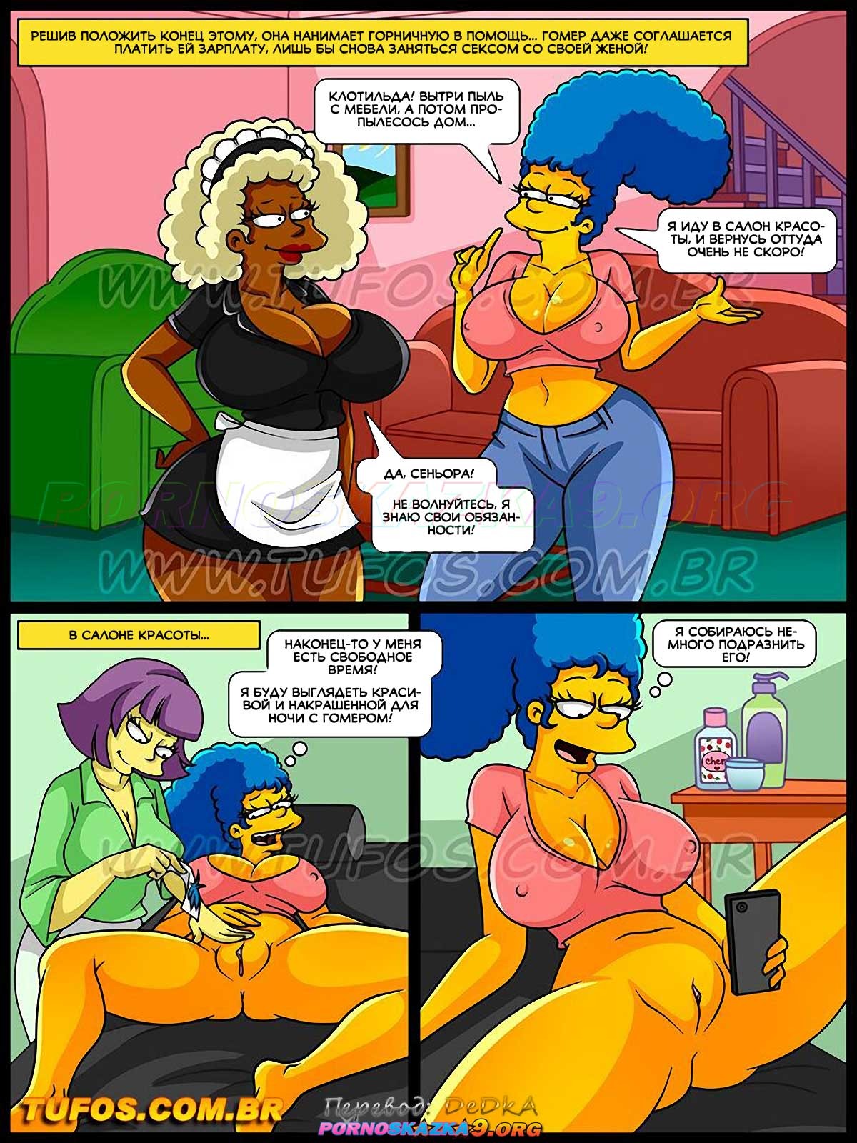 Порно комикс Симпсоны. Часть 63: Горничная с большой задницей. Работа по дому отнимала у Мардж все ее время… Занятая и измотанная домашними делами, она не имела времени ни на себя, ни на секс с Гомером! Желая положить этому конец и спасти свой брак, она нанимает горничную, чтобы та помогала ей в работе по дому…