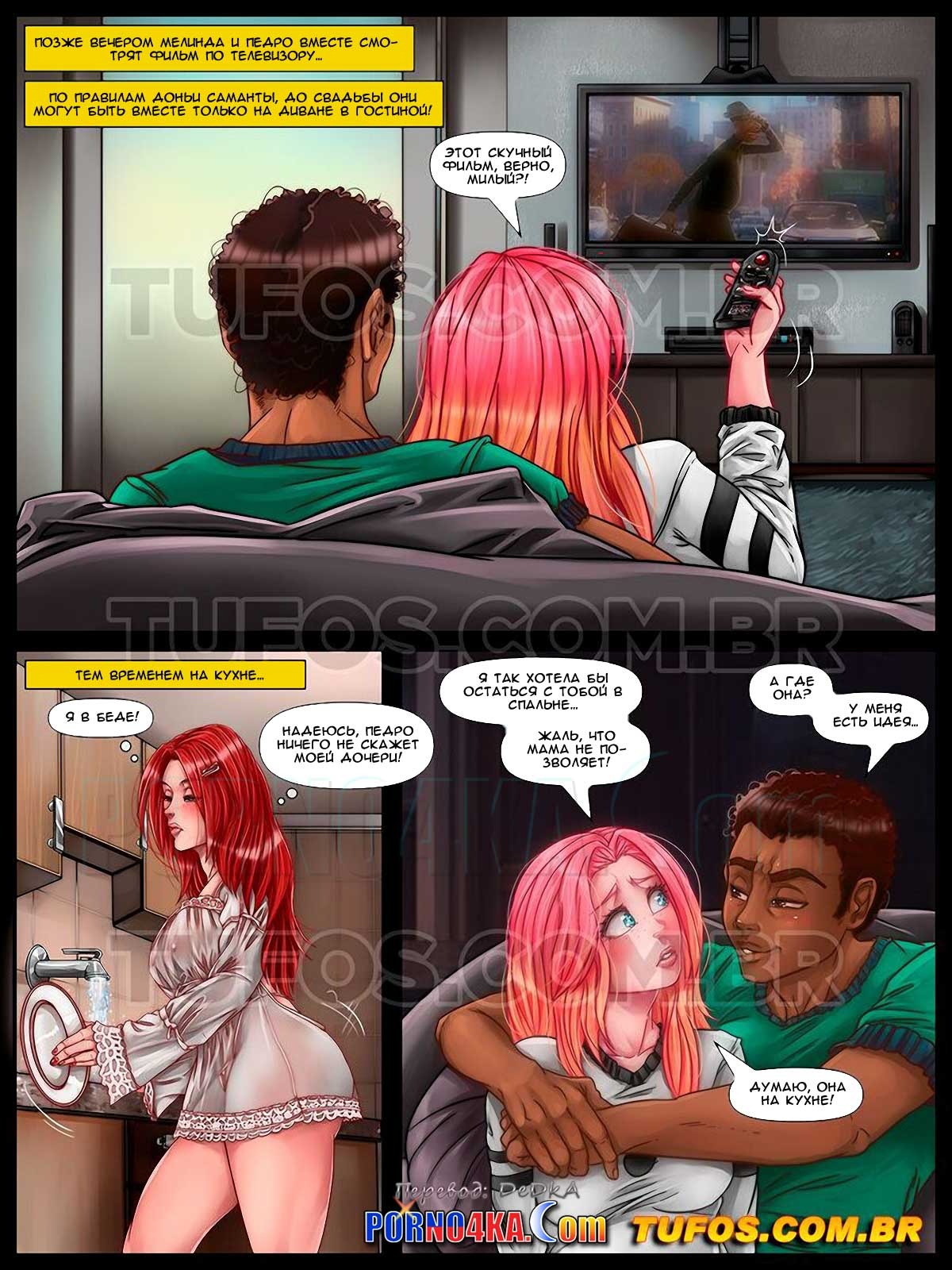 Порно комикс Святоши. Часть 7: Анал, детка! После того, как жених дочери Саманты поймал ее с поличным у соседа, ей осталось только уйти, в надежде, что и сосед, и будущий зять будут держать языки за зубами…