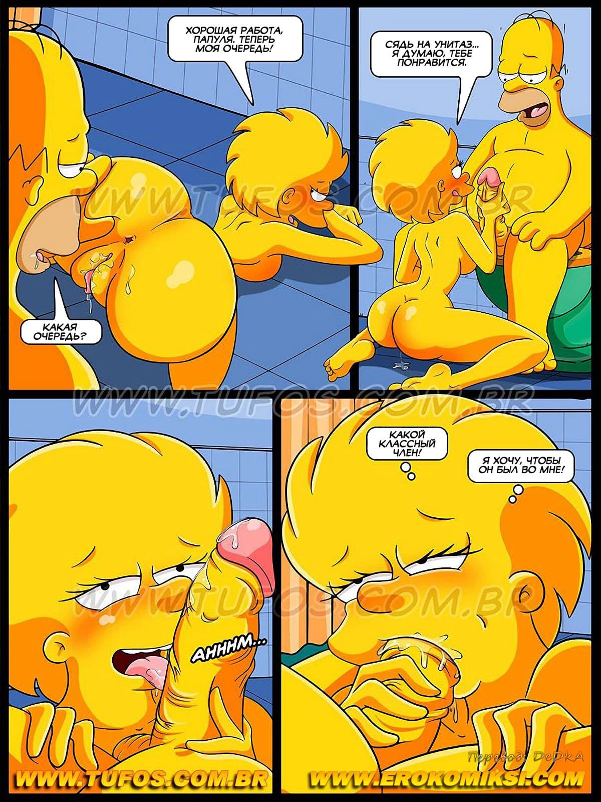Порно комиксы Симпсоны футбол и пиво продолжаются! Во 2 части, заслужившей популярность, инцест пародии события начинаются с того, что Гомер и Барт, потягивая пивко, смотрели футбол. Через некоторое время Гомеру припёрло пописать, и он отправился в туалет, где в это время была его дочь Лиза. Что произошло в гостиной с Бартом, пока Гомера не было, вы знаете из первой части этого секс комикса, а из этой части вы узнаете, что произошло в туалете…