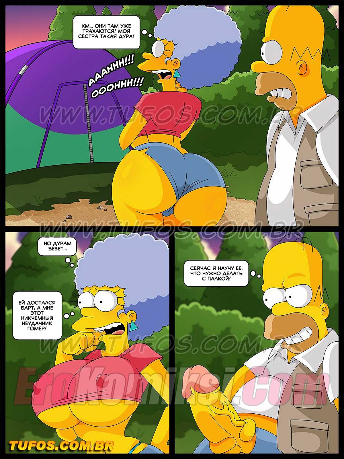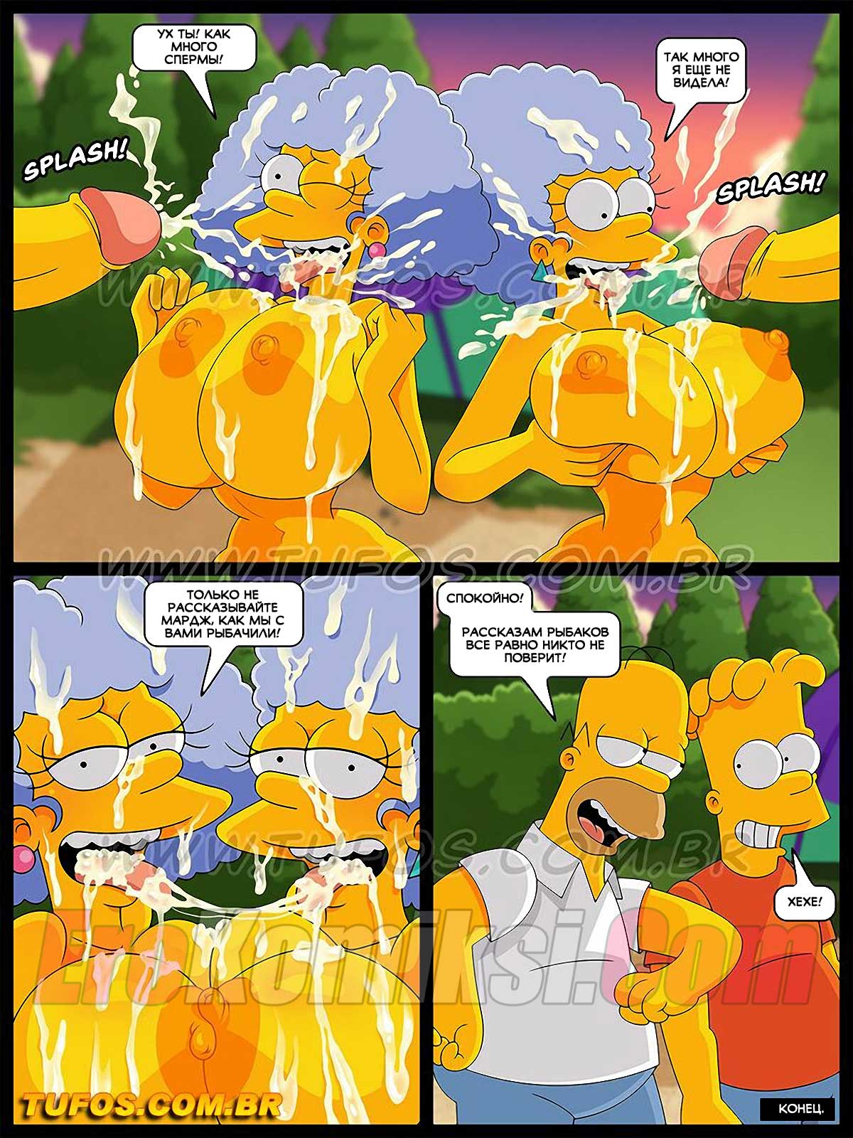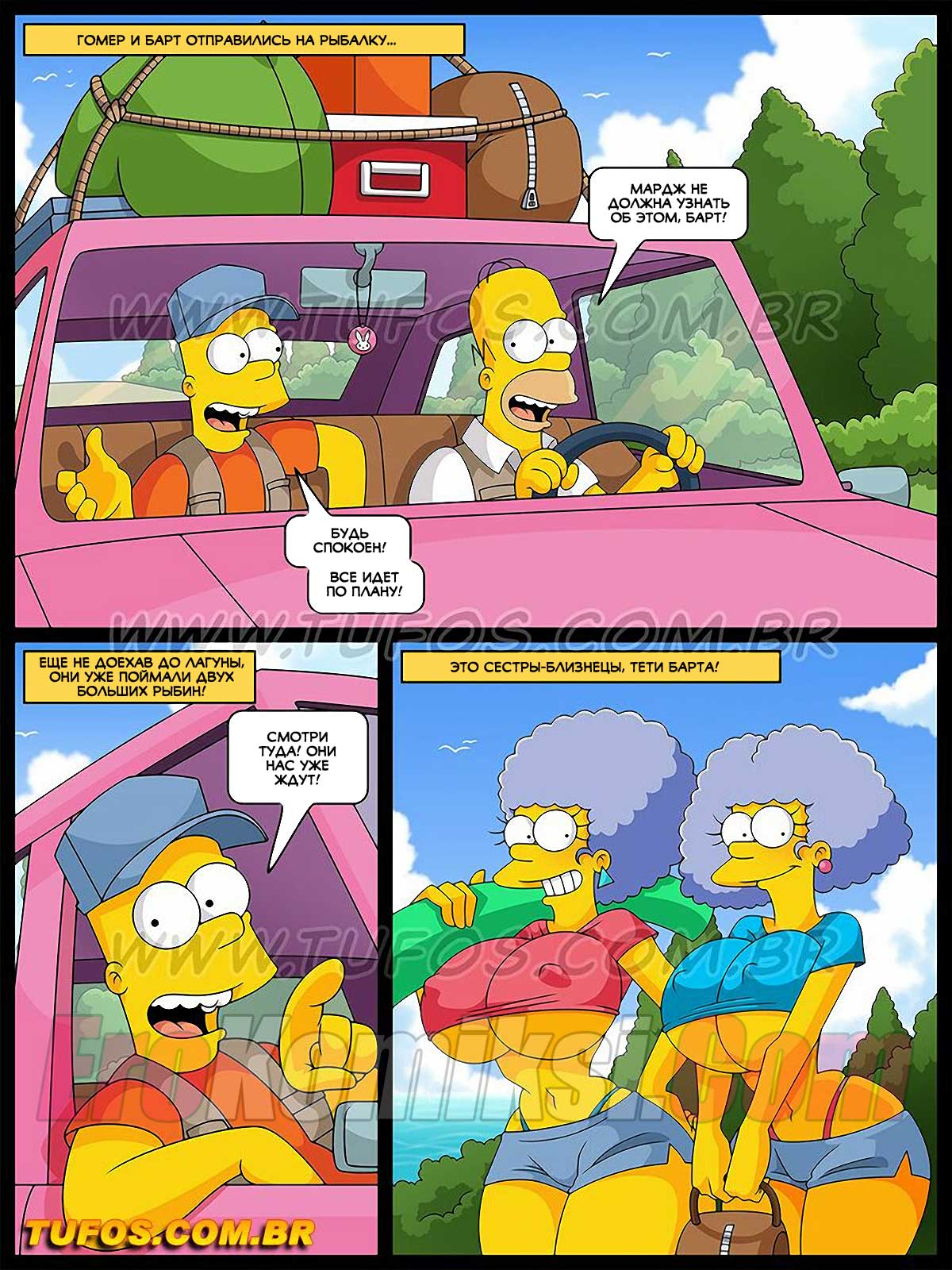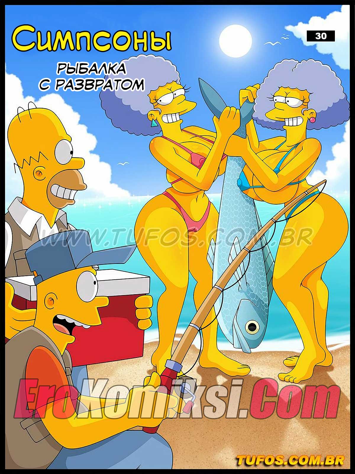 Порно комикс Симпсоны. Часть 30: Рыбалка с развратом. Гомер и Барт поехали на рыбалку, за ними увязались сестры Мардж. Мужчина нашли применение этим двум красоткам.