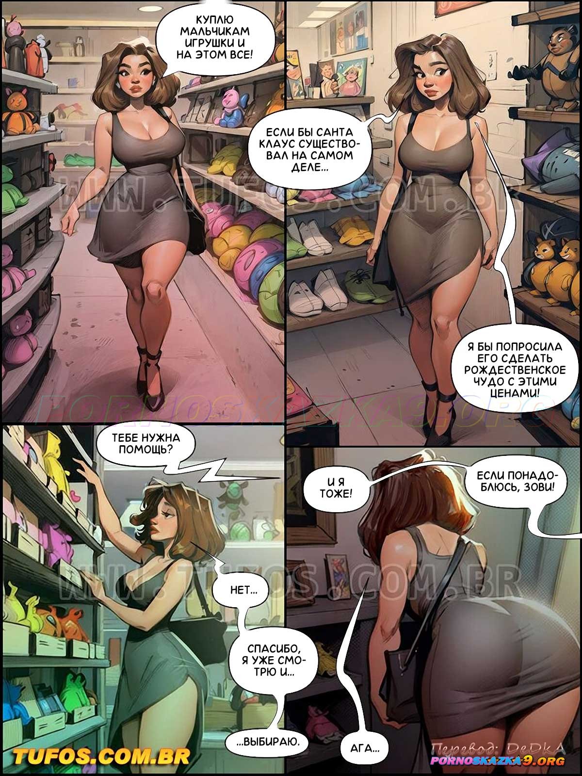 Порно комикс Наслаждайся жизнью по полной. Часть 6: Рождественское чудо с ценами. Сексуальная брюнетка милфа отправилась в магазин за подарками на рождество. Цены кусались, поэтому красотке пришлось заняться сексом с парнем, чтобы получить существенную скидку…