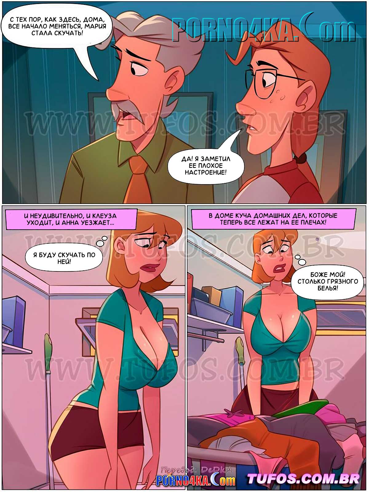 Порно комикс Четверо похотливых. Часть 1: Грязное белье стирают дома. Анна Развратос, еще не уехала в путешествие, а дона Мария Развратос уже скучает по ней… Плюс ко всему, служанки Клеузы сейчас нет, а груда грязной одежды становится все больше! Да, кое что изменилось в доме похотливой семейки Развратос, но похотливость жильцов осталась неизменной!