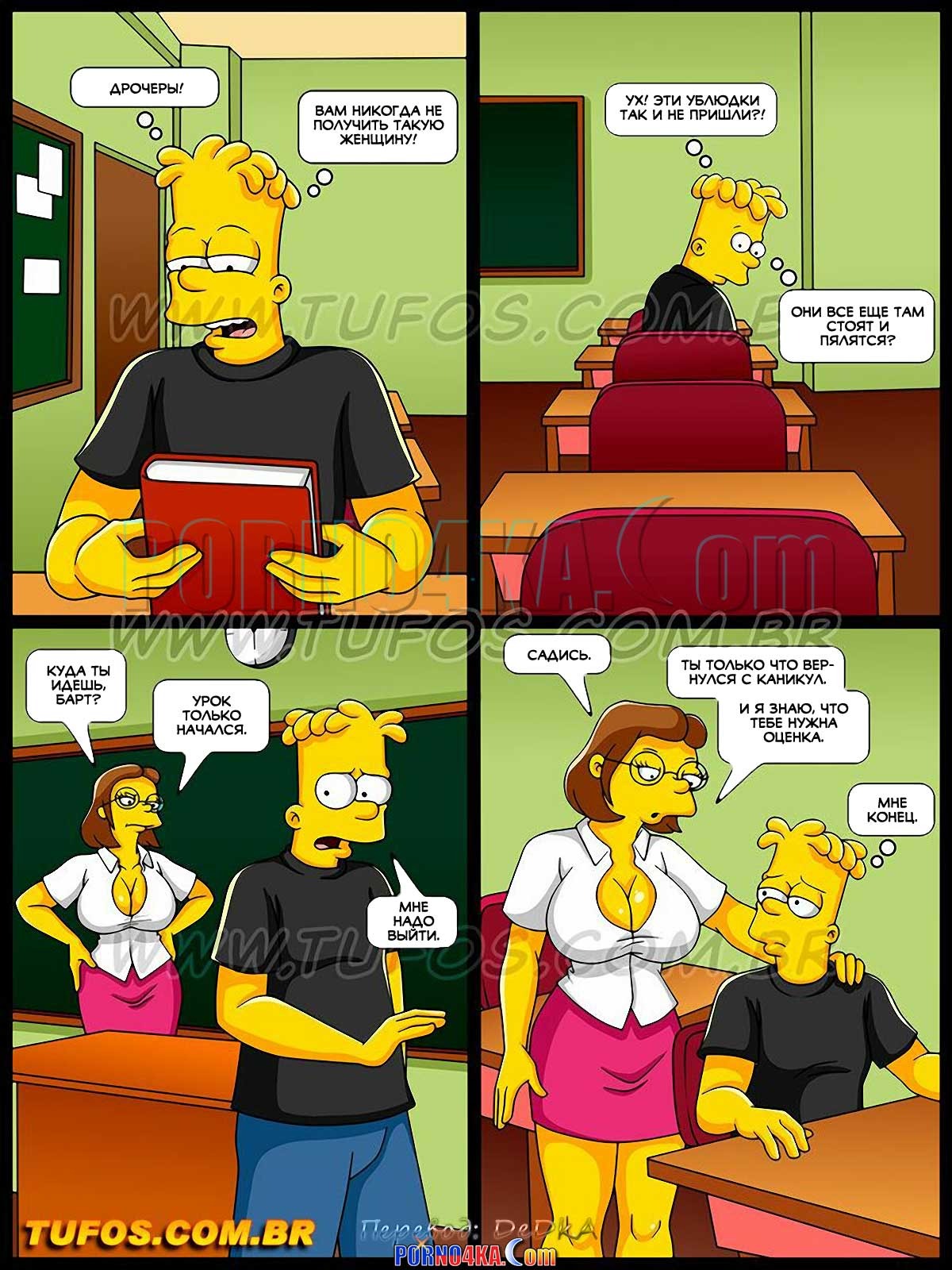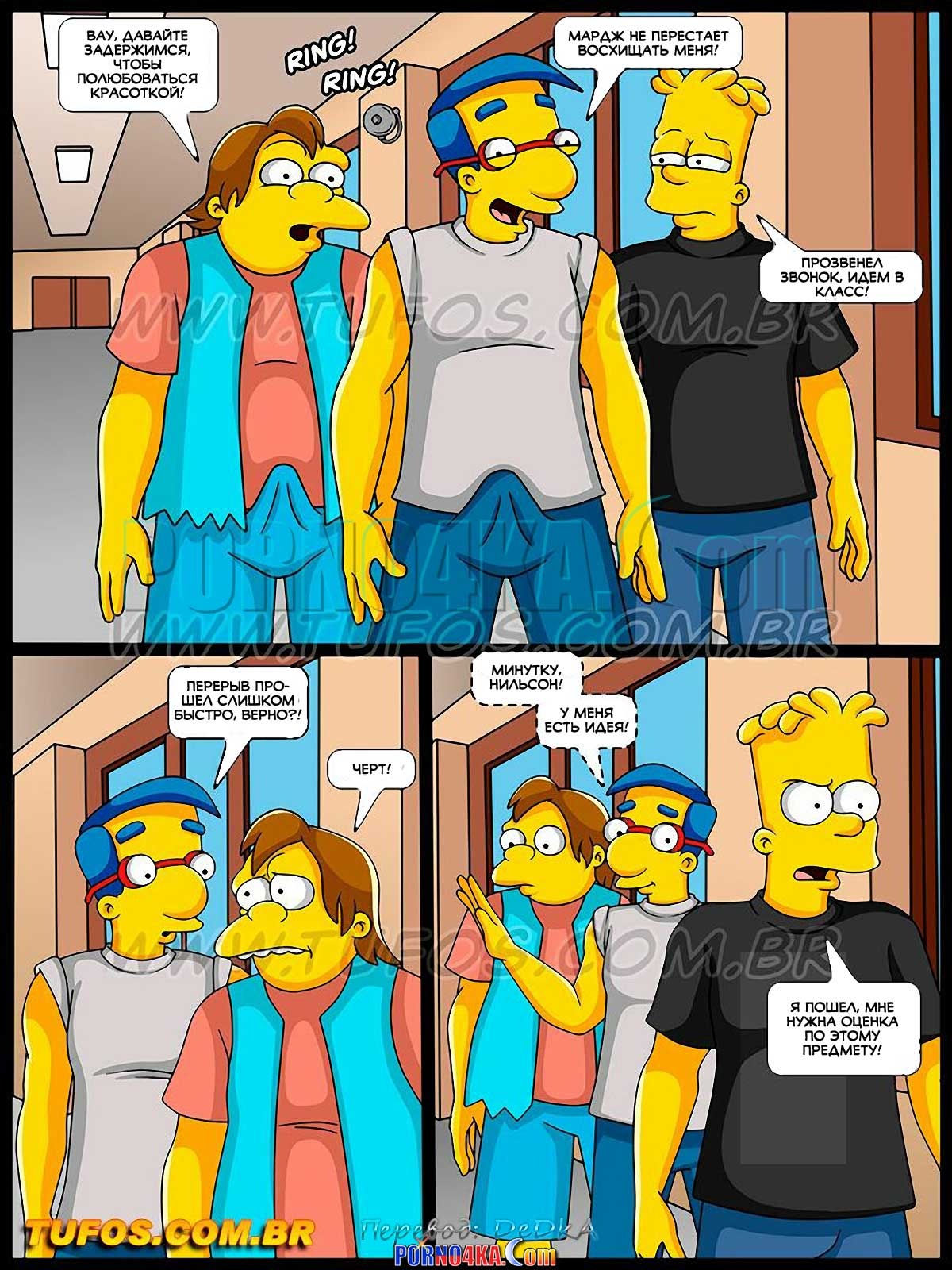Порно комикс Симпсоны. Часть 50: Трудолюбивая уборщица. Чтобы заработать денег, с которыми у Симпсонов очень туго, Мардж устраивается на работу уборщицей в колледж… Нильсон и Милхаус сходят с ума, когда видят, как она сексуально позирует во время уборки! Друзья придумывают коварный план…