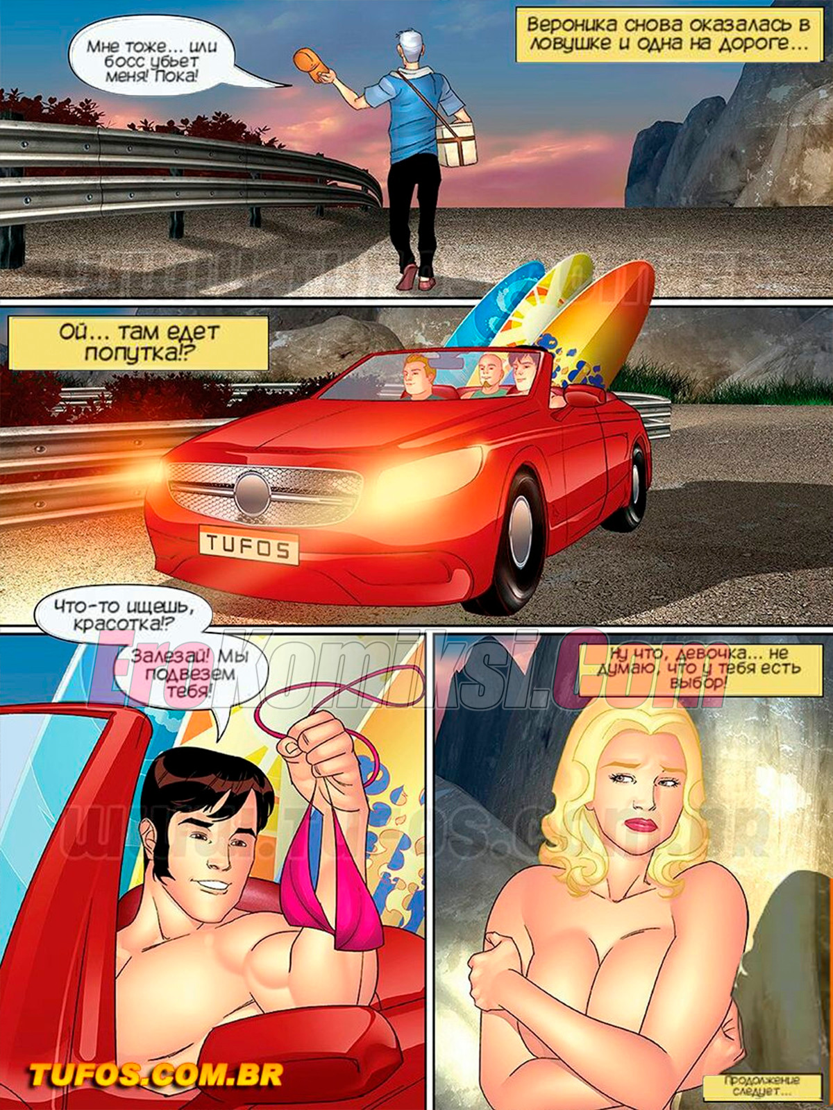 Порно комикс Тетя, кузины и племянник Часть 29: Мороженое в виде члена Молодая горячая блондинка покинула вечером пляж в одних трусиках от бикини. Она очень хотела пить и есть, поэтому когда она встретила пожилого мороженщика, сучка согласилась отсосать ему и дать себя выебать в обмен на мороженое.