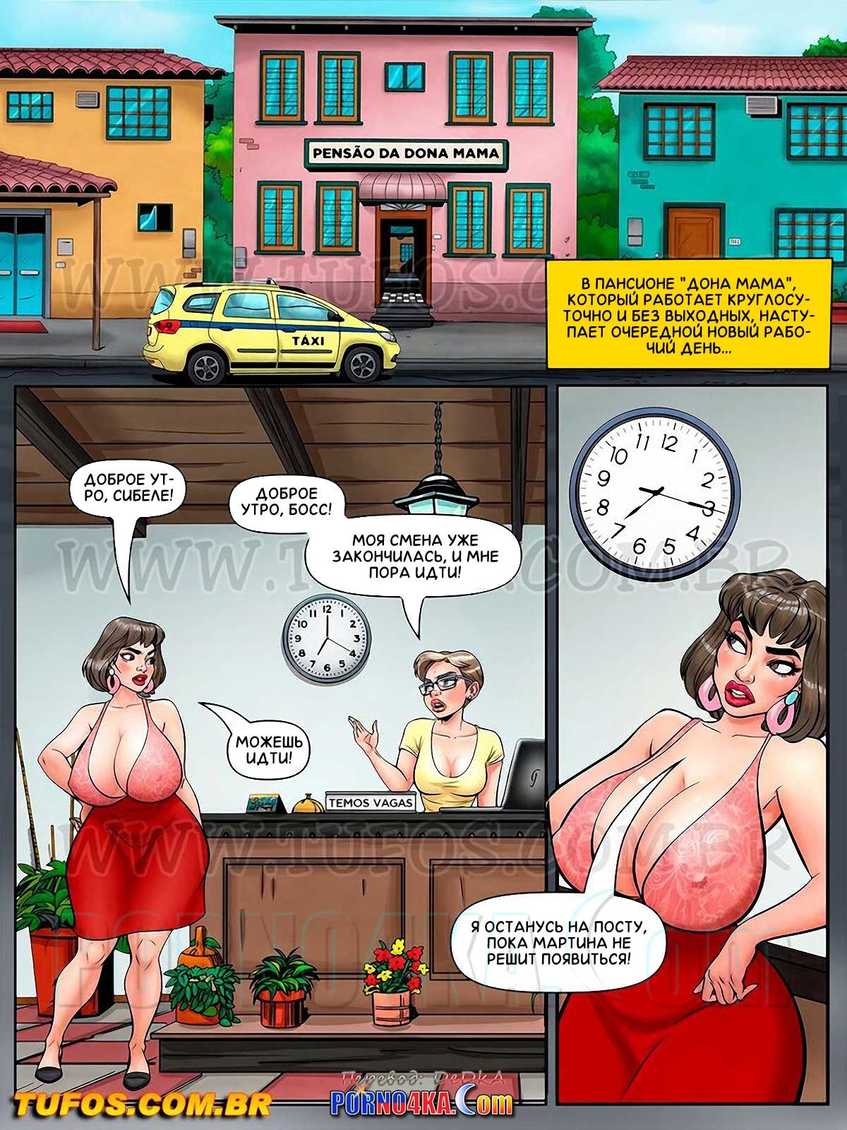 Порно комикс Дона Мама. Часть 1: Пансион Дона Мама. Регистрация. В пансионе «Дона Мама», который работает круглосуточно и без выходных, уже рассвело… Марта, более известная как Дона Мама, — владелица этого заведения. Он замужем за Сержаном уже более двадцати лет, она мать Мартины и Сержиньо, она очень строга с детьми, но с другими она очень часто — просто «мамочка»! У семьи всегда суматошный распорядок дня, и этот день не был исключением…