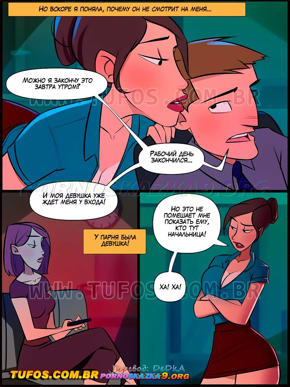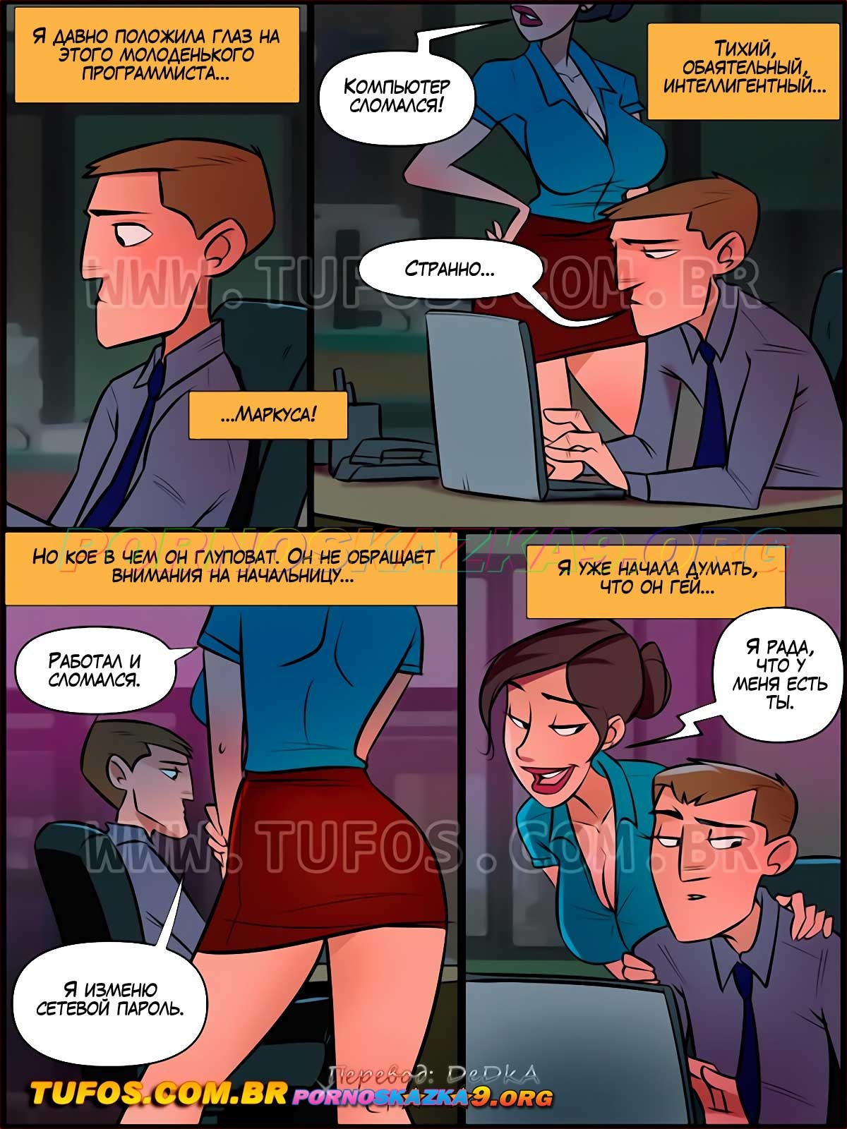 Порно комикс Дом мамы Жоаны. Часть 19: Начальнице можно все. Маркус был программистом в компании… Начальница считала его, тихим, обаятельным и умным мальчиком! Такие качества пленили дону Алессандру, которая почувствовала к нему сексуальное влечение. Однако Маркус был слишком сосредоточен на работе, чтобы заметить это…