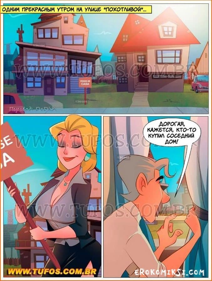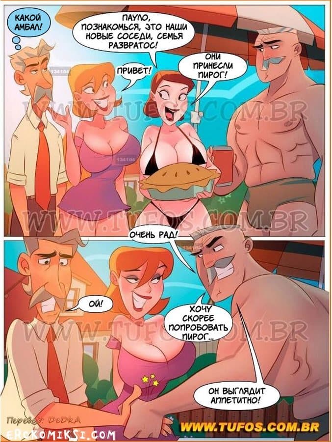 Порно комикс Семья Распутос. Часть 1: Добро пожаловать, новые соседи! Представляем вашему вниманию новый бразильский порно комикс семья Распутос. Так одним прекрасным утром на улице с красноречивым названием «Похотливая», рядом с домом известного нам семейства Развратос (или по другому похотливой семейкой), поселилось семейство Распутос. Соседи начали активно знакомиться…