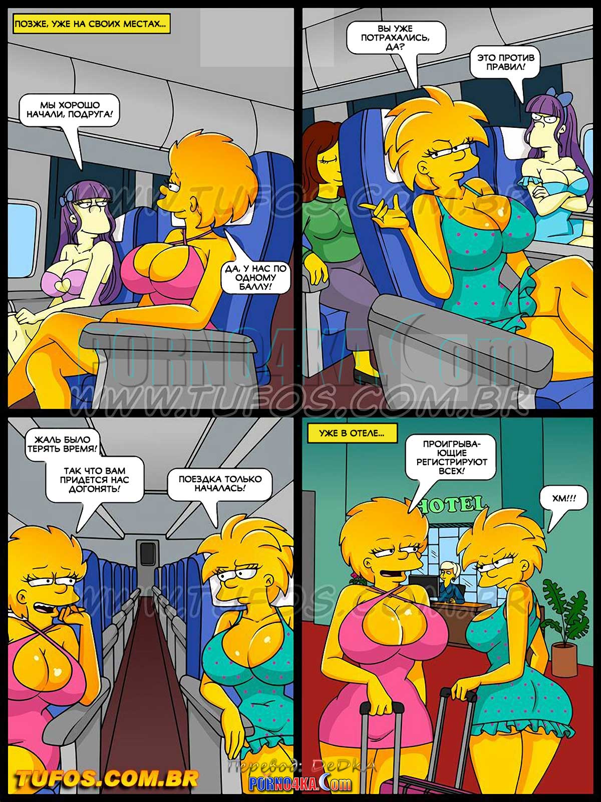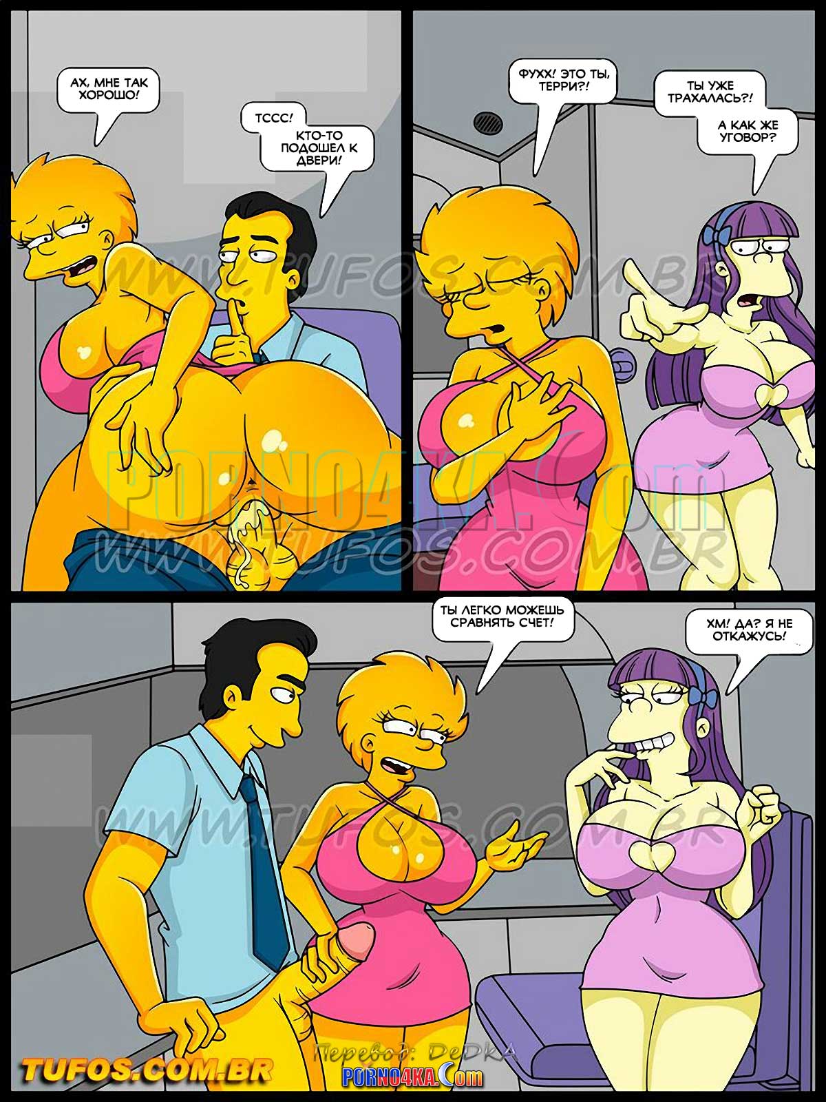 Порно комикс Симпсоны. Часть 45: Шлюхи на на карибах. Часть 1. Наконец-то настал день, когда подружки отправились на Карибы! Для тех, кто не помнит, они выиграли поездку в конкурсе, организованном мэром Спрингфилда. Близняшка Терри решает еще больше оживить пляжный отдых и для этого предлагает устроить конкурс, победителем которого станет та, которую трахнет больше мужчин…