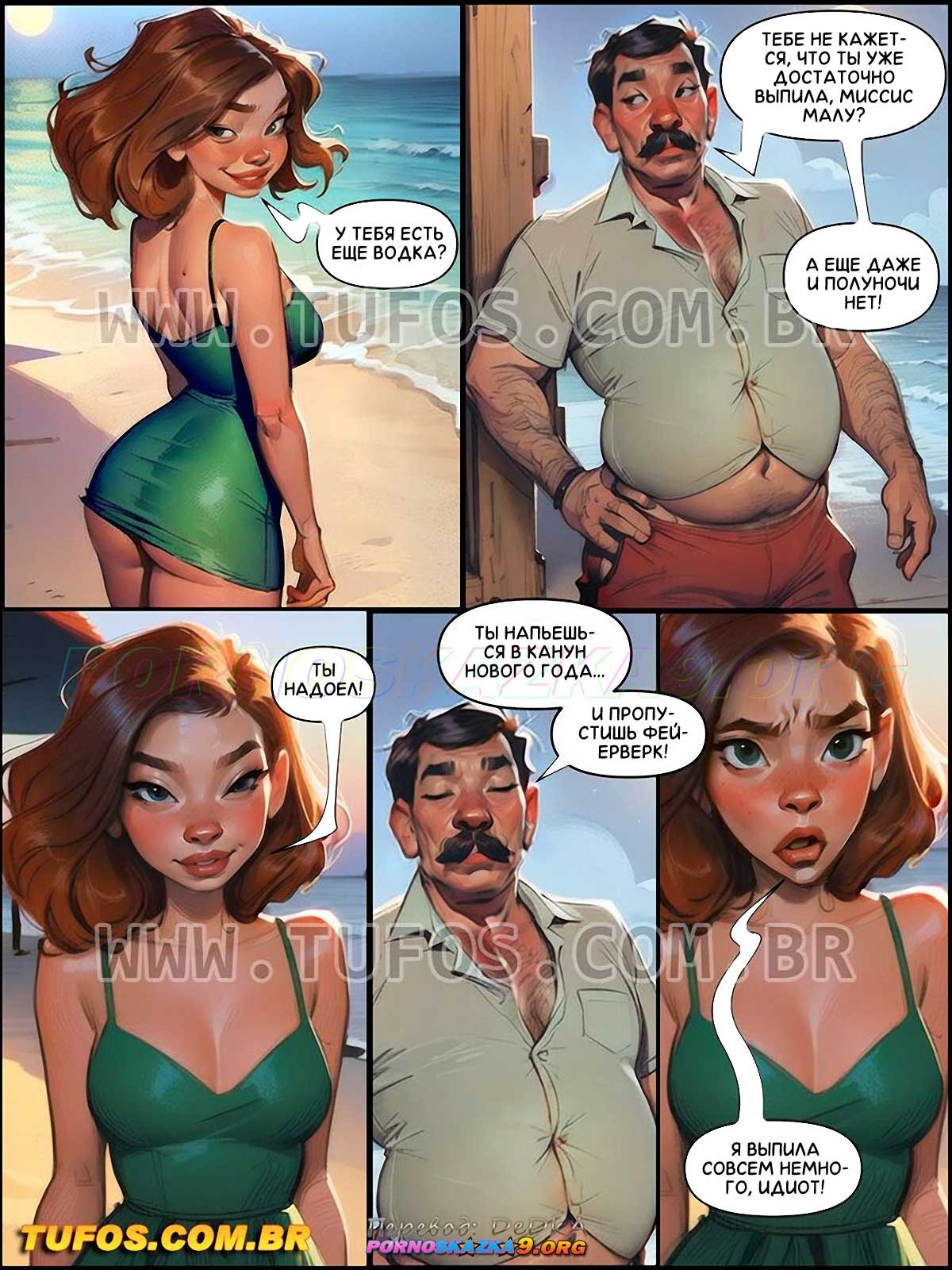 Порно комикс Наслаждайся жизнью по полной. Часть 7: С Новым годом. Сексуальная брюнетка сильно напилась и решила повеселиться с мужчиной на пляже. Она встала на колени и отсосала его большой хуй, после чего дала ему выебать себя во все дырочки…