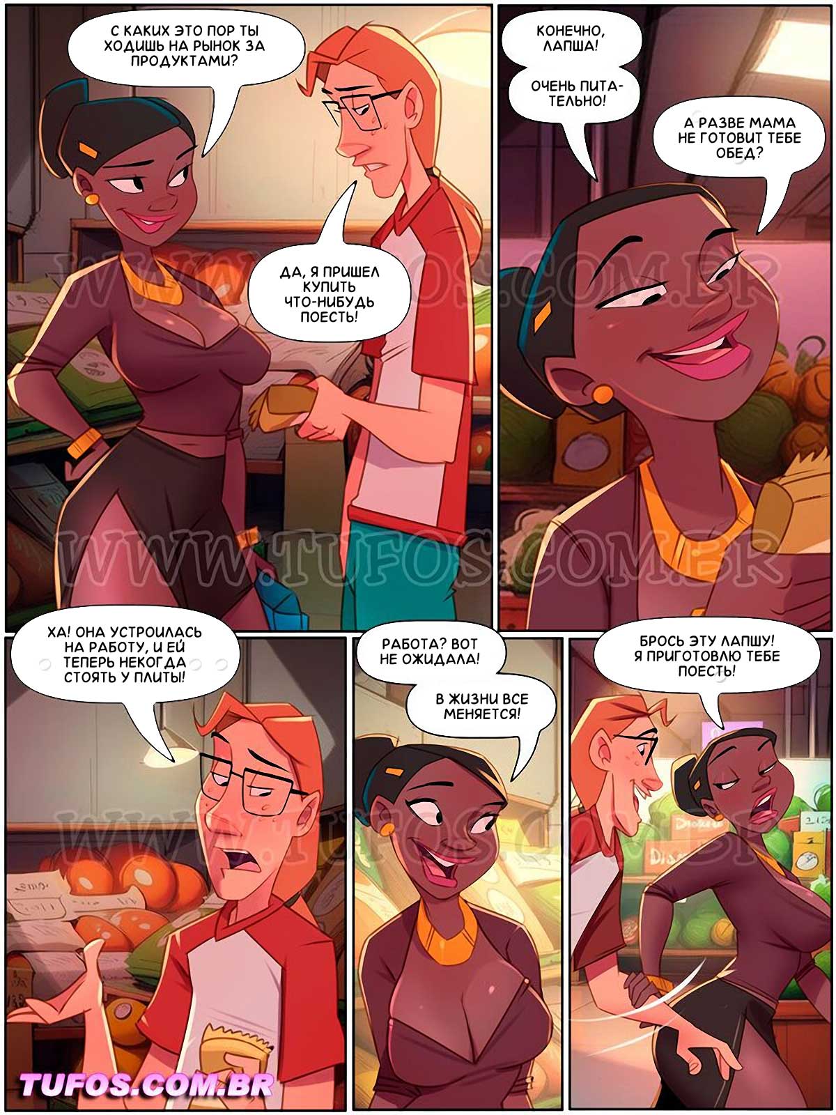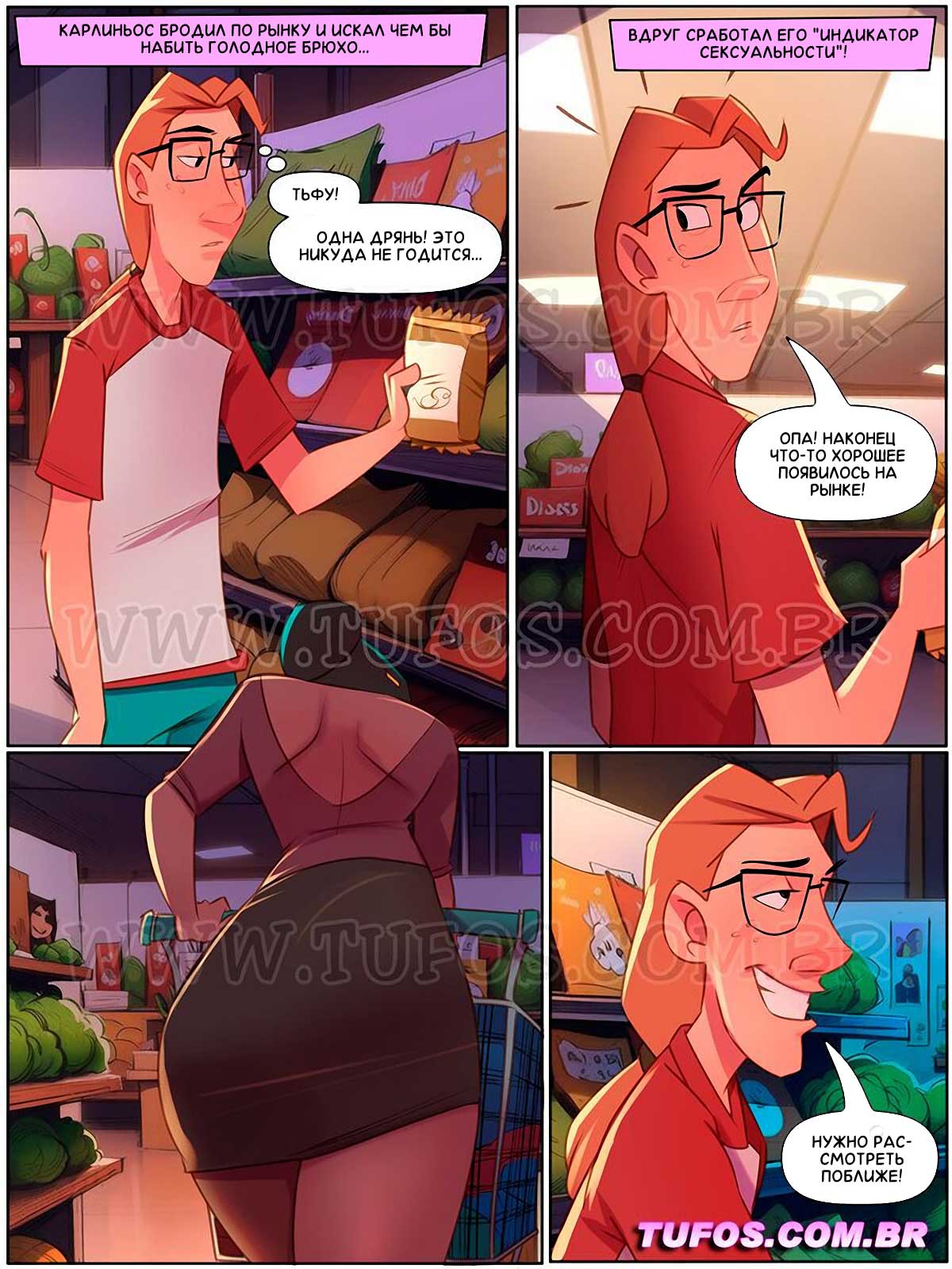Порно комикс Четверо похотливых. Часть 13: Как в старые добрые времена. Однажды Клеуза и Карлиньос случайно встретились на рынке… От Карлиньоса бывшая домработница похотливой семейки Развратос узнает, что донья Мария устроилась на работу и больше не готовит дома обеды. Сочувствуя Карлиньосу, Клеуса предлагает приготовить для него обед, но когда она приходит в дом похотливой семейки, то обнаруживает там полный беспорядок…