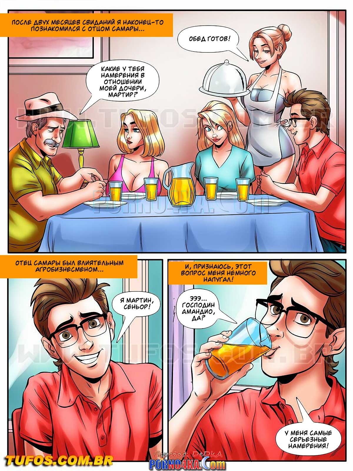 Порно комикс Похотливый ботан. Часть 26: Семейный обед.После двух месяцев знакомства с Самарой Мартин наконец-то встречается с ее отцом! А после семейного обеда ботаник пользуется моментом, чтобы остаться в гостиной наедине со своей девушкой и потрахаться…