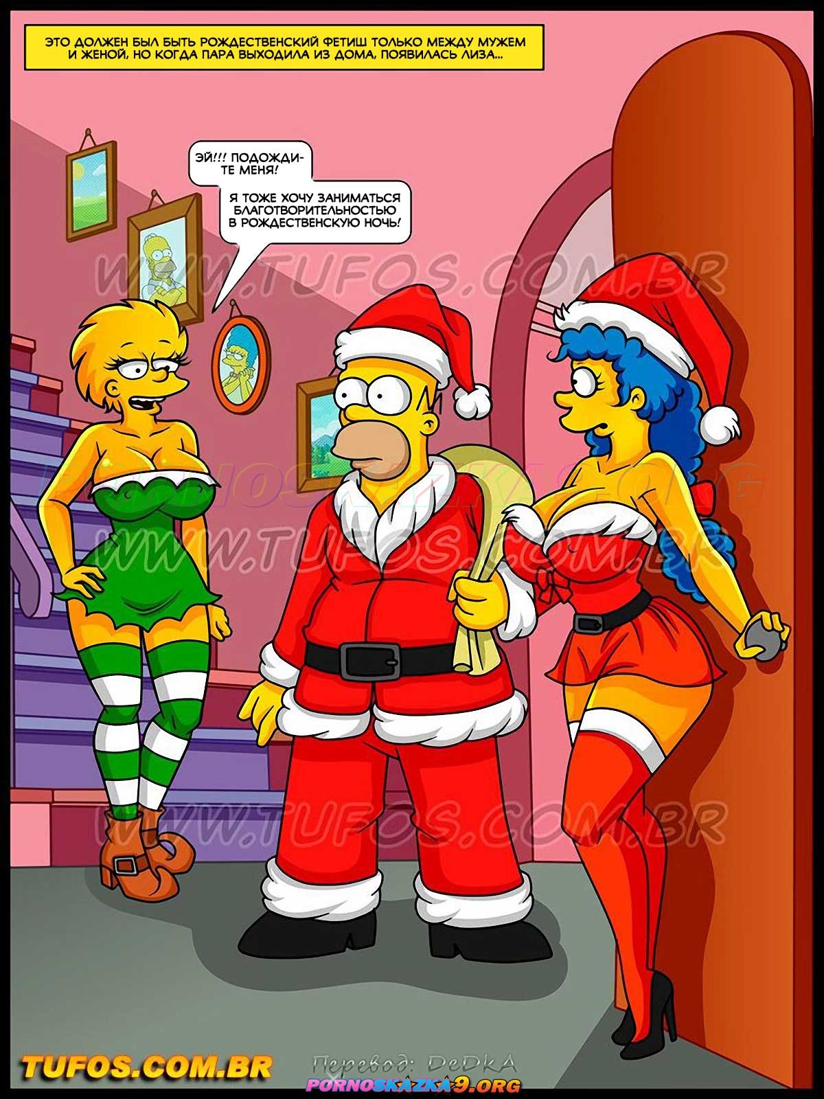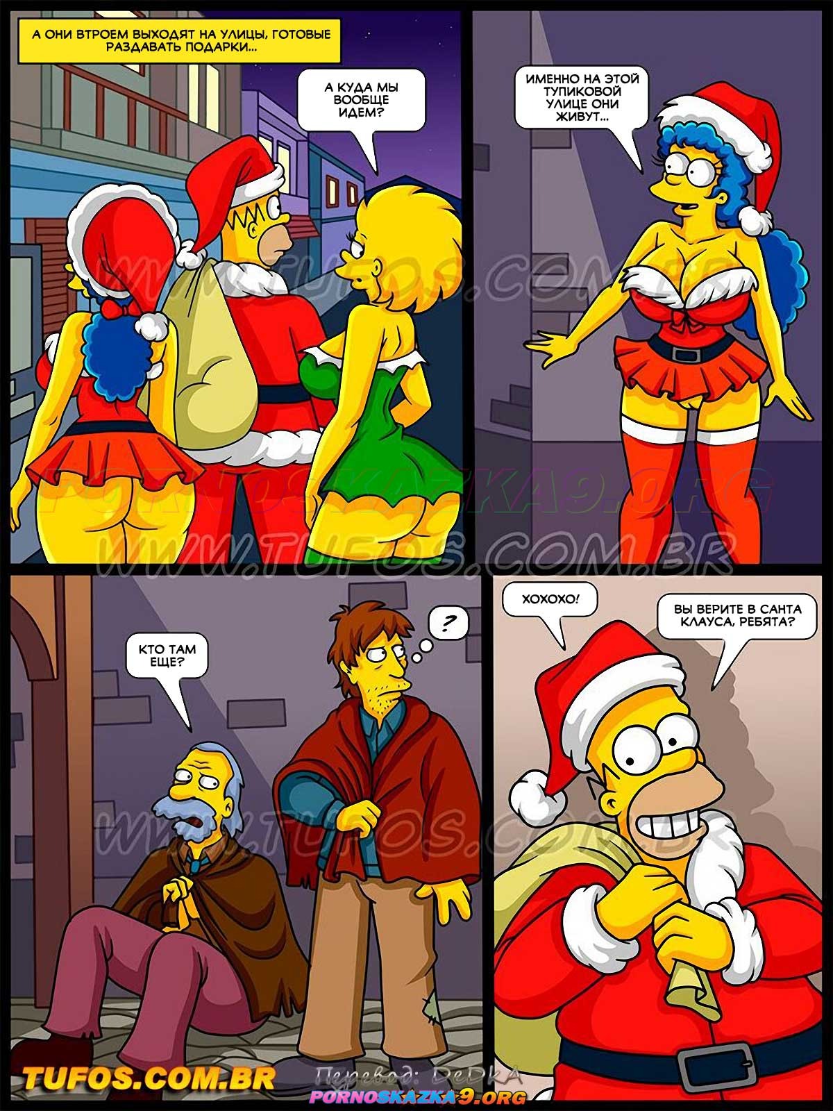 Порно комикс Симпсоны. Часть 59: Рождественский подарок. Мардж с дочкой решил устроить рождественский подарок бездомным парням. Они отправились к ним в переулок и стали сосать большие хуи парней, после чего дали им выебать себя во все дырочки…