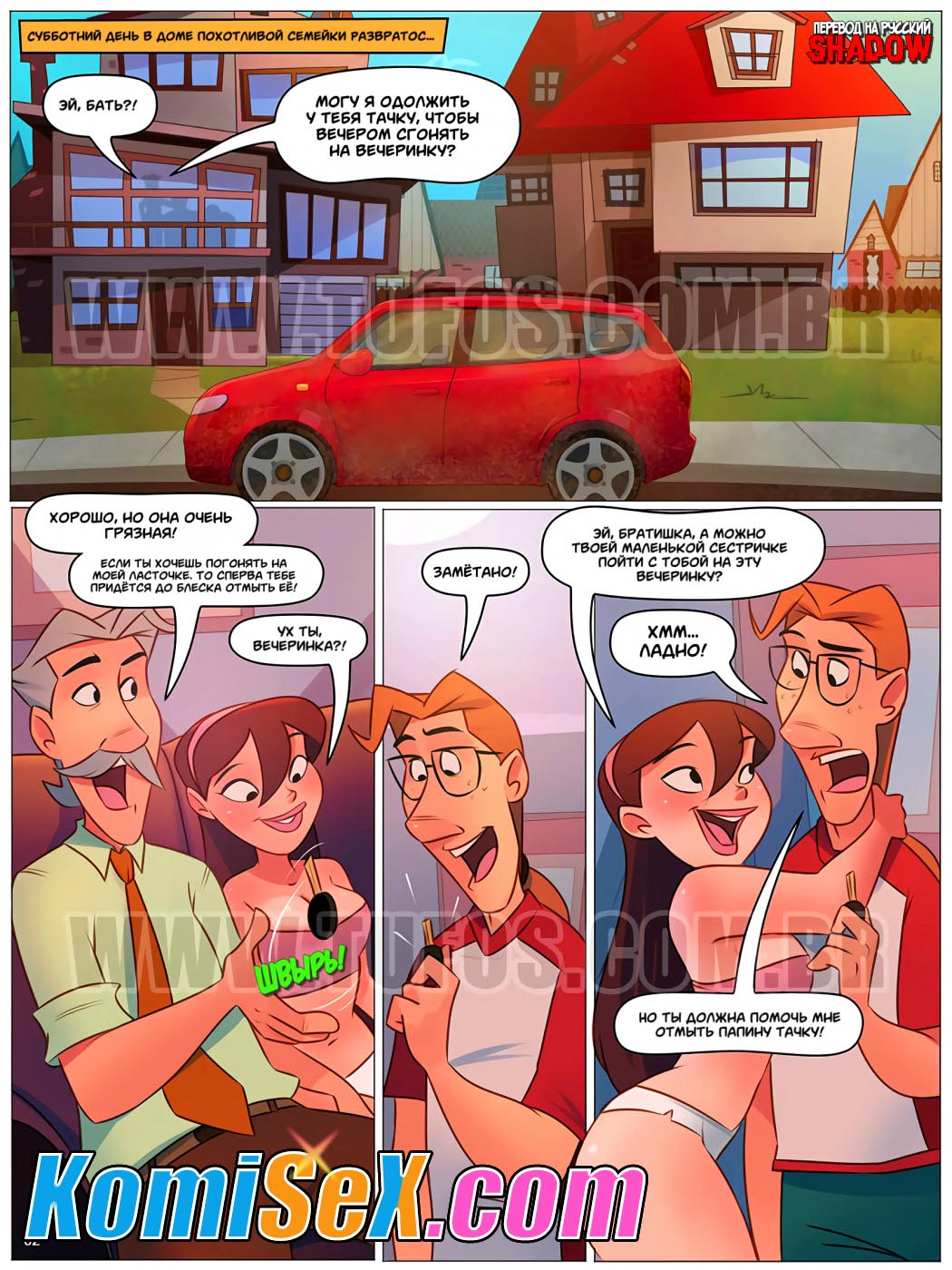 Порно комикс Похотливая семейка. Часть 52: Мытье папиной машины.