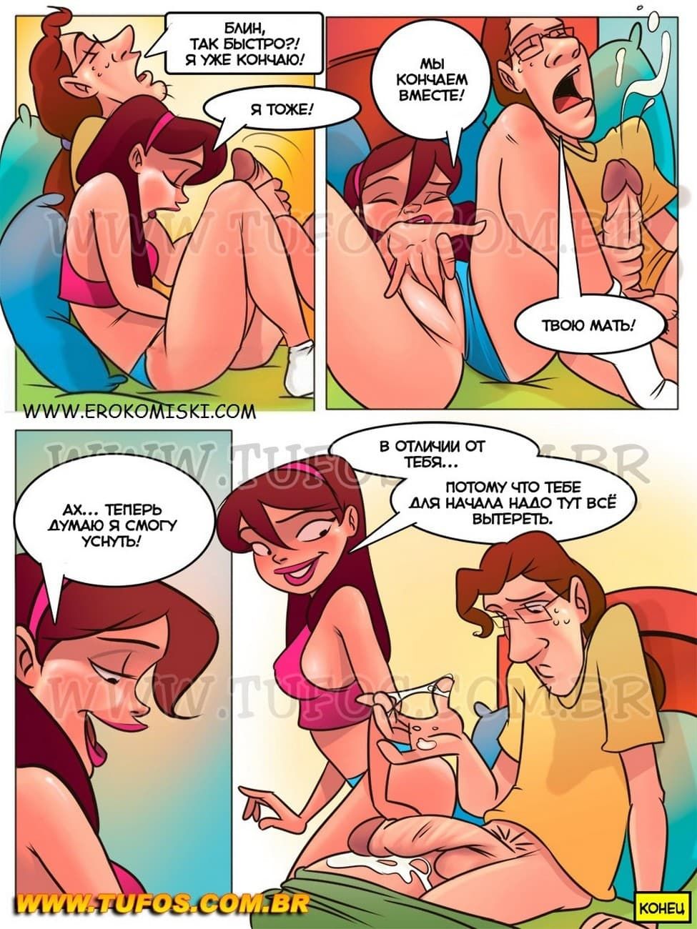 Развлекательный комикс порно похотливая семейка продолжает знакомить нас с развратными приключениями героев. Ранним утром Анина проснулась от сильных криков и стонов. Девушка решила, что в дом ворвался насильник, и побежала будить брата. Карлиньос встав, идет на разведку и видит, что в комнате родителей происходит возбуждающее действо. Какое? Узнаете дальше.