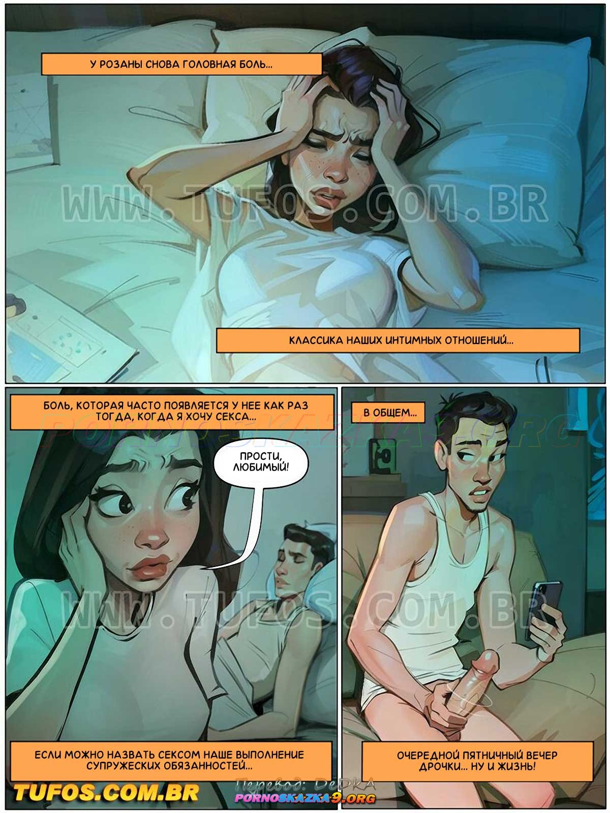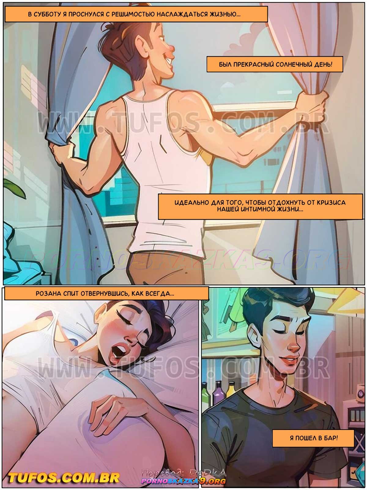 Порно комикс Наслаждайся жизнью по полной. Часть 3: Головная боль. Tufos Недовольный сексуальной жизнью со своей женой, парень отправился выпить, где встретил сексуальную подругу жены. Девушка пригласила парня к себе домой, где позволила ему выебать себя во все дырочки…