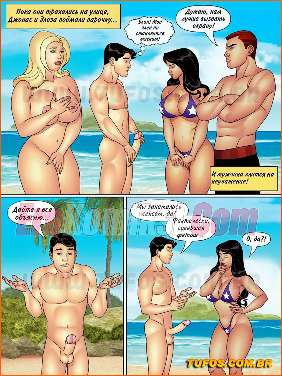 Порно комикс Тетя, кузины и племянник. Часть 28. Наслаждаемся пляжным отдыхом. Эпизод 3 Парнишка со своей кузиной встретили на пляже молодую парочку и решили с ними повеселиться. Они стали трахать прямо на пляже, не боясь, что их поймают, и получили от этой ебли огромное удовольствие.
