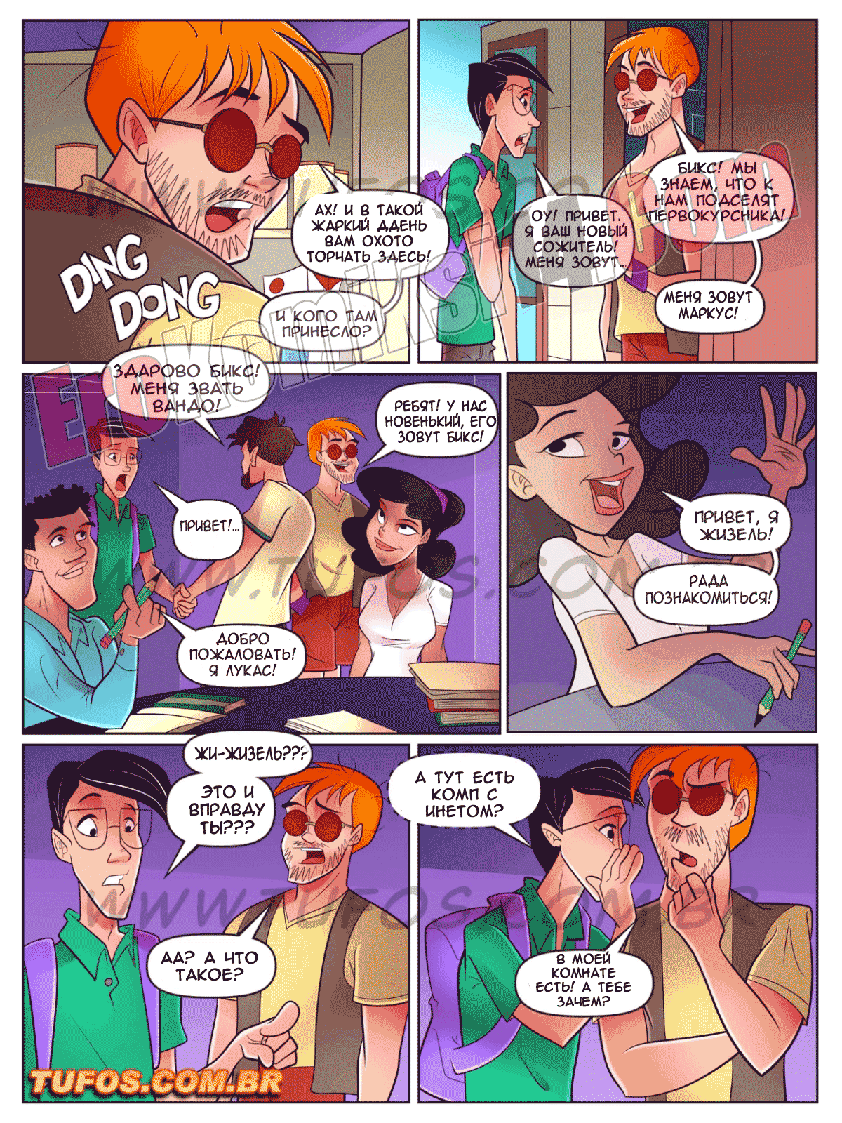 Порно комикс Гребаные соседи. Часть 2: Студенческое общежитие. Смотрите отличный комикс в формате гиф. Парень заселяется в общежитие и в тот же день попадает на местную студенческую оргию. Новичок всех удивляет, когда начинает профессионально трахать девушку.