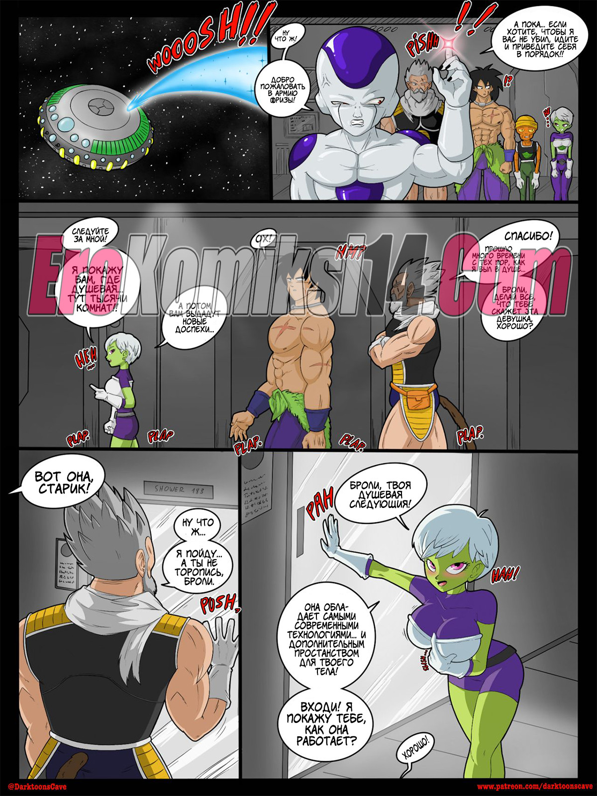 Броли и его отец попали в заключение в армию Фризы и прежде чем им выдадут снаряжение, они должны принять душ и подготовится. В душевые их отвела сексуальная Челаи, а после того, как они зашли в душ и разделись…