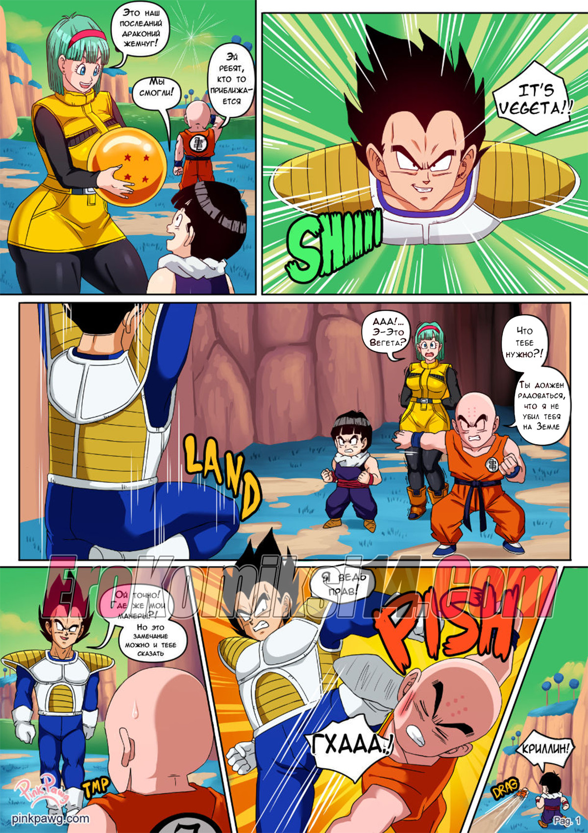 Порно комикс Dragon Ball Z. Бульма на планете Намек. Pink Pawg. На девушку напал злодей Вегета, он хотел забрать последний дракой жемчуг. Но красотка показала ему свои сиськи, он забыл про всё. Как голодный он набросился на девушку и трахнул её.