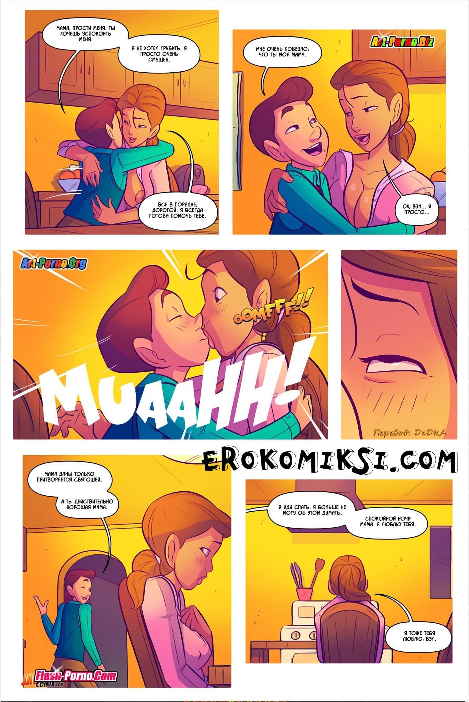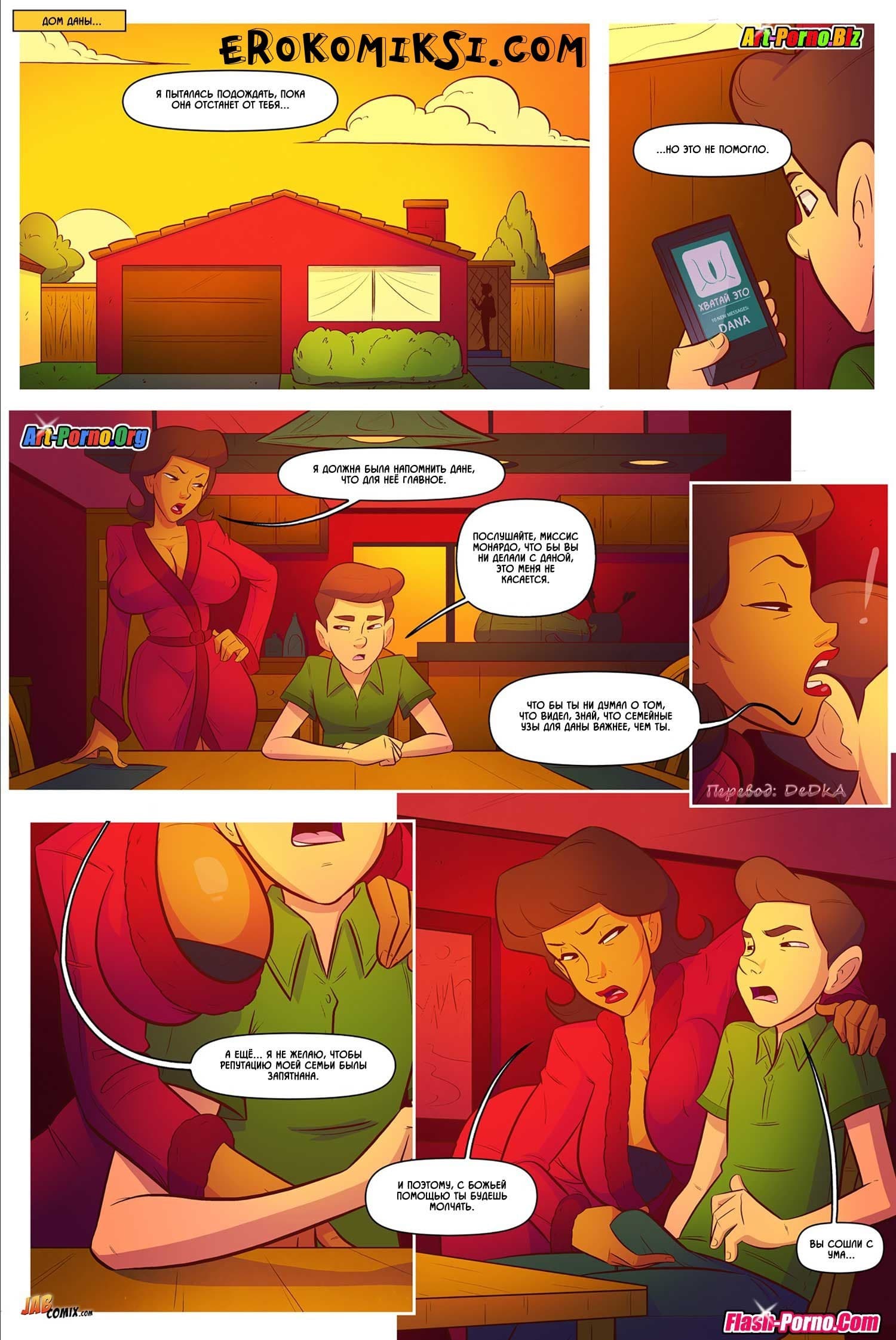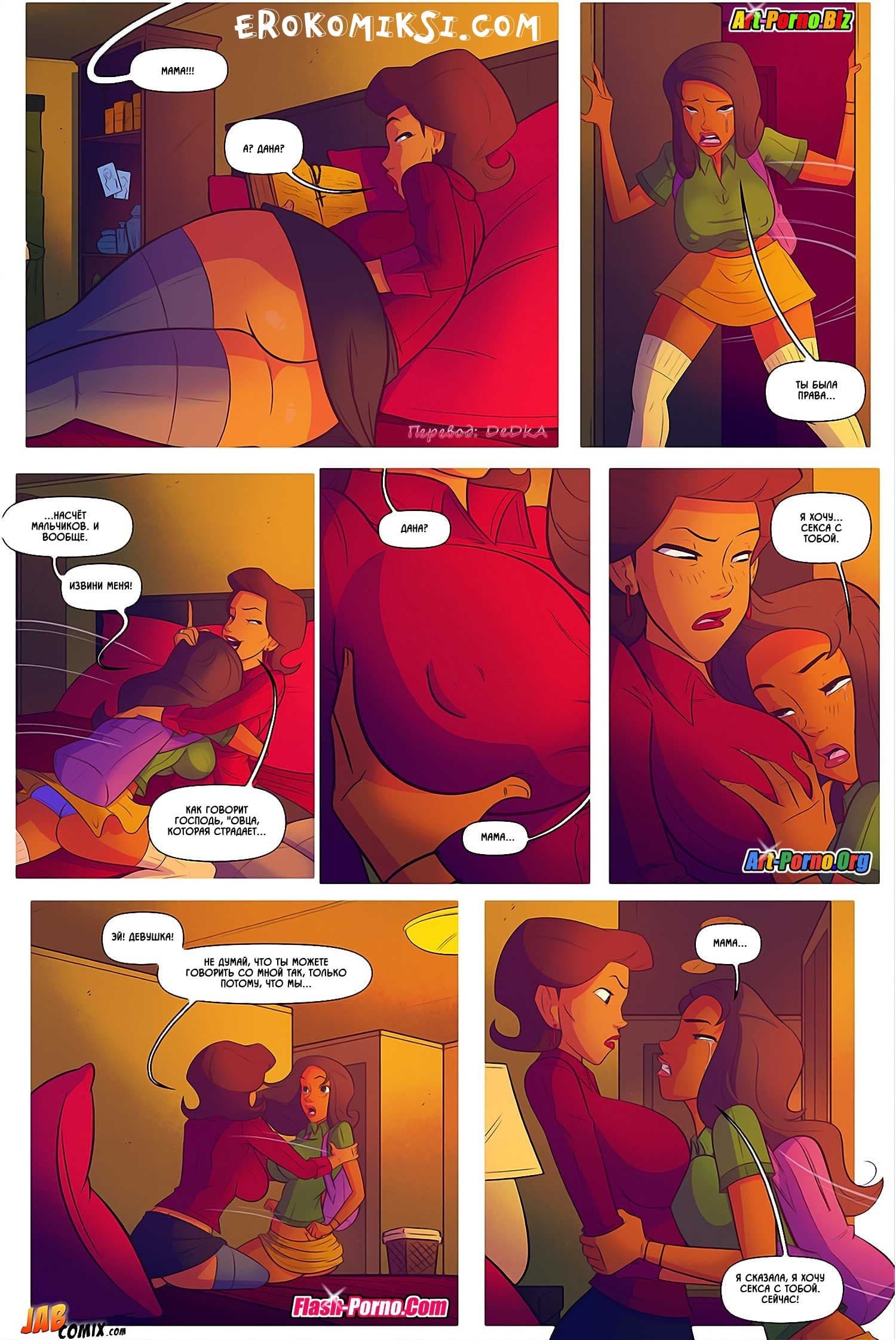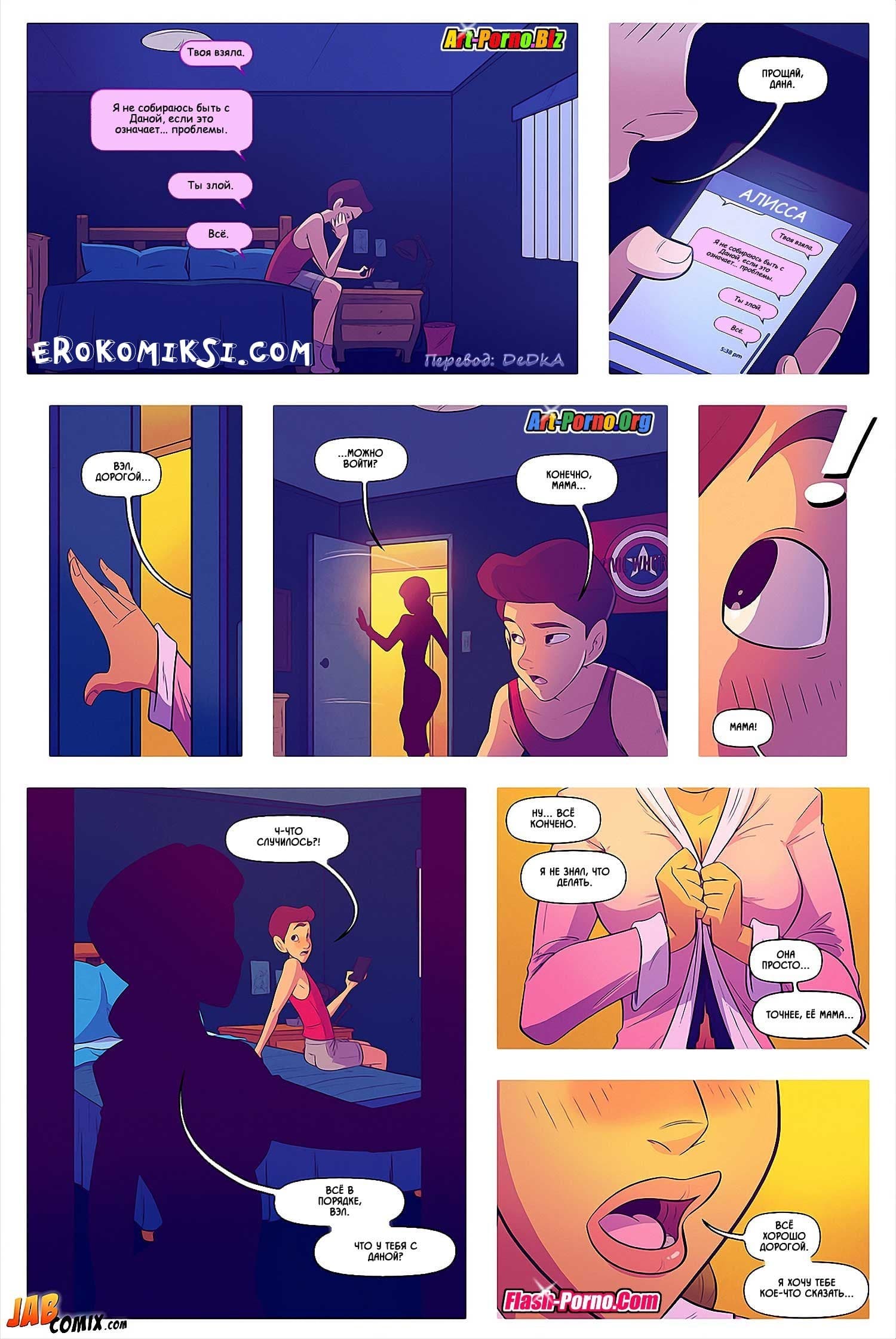 Перед вами порно комикс ДНК часть 2, или по-другому его название «Дана и Вэл». Все начинается с того, что Вэл, ошарашенный от того, что случайно увидел свою подругу Дану, в лесбийских объятиях её «добропорядочной» мамочки, пришёл домой и рассказал обо всём, что он увидел своей взрослой мамочке, которая оказалась не менее «благопристойной», чем мамуля его подружки Даны. А, вскоре, уже поздно вечером Вэл получил сообщение от зрелой мамочки своей подруги с крайне настойчивым предложением прийти к ней в гости утром…