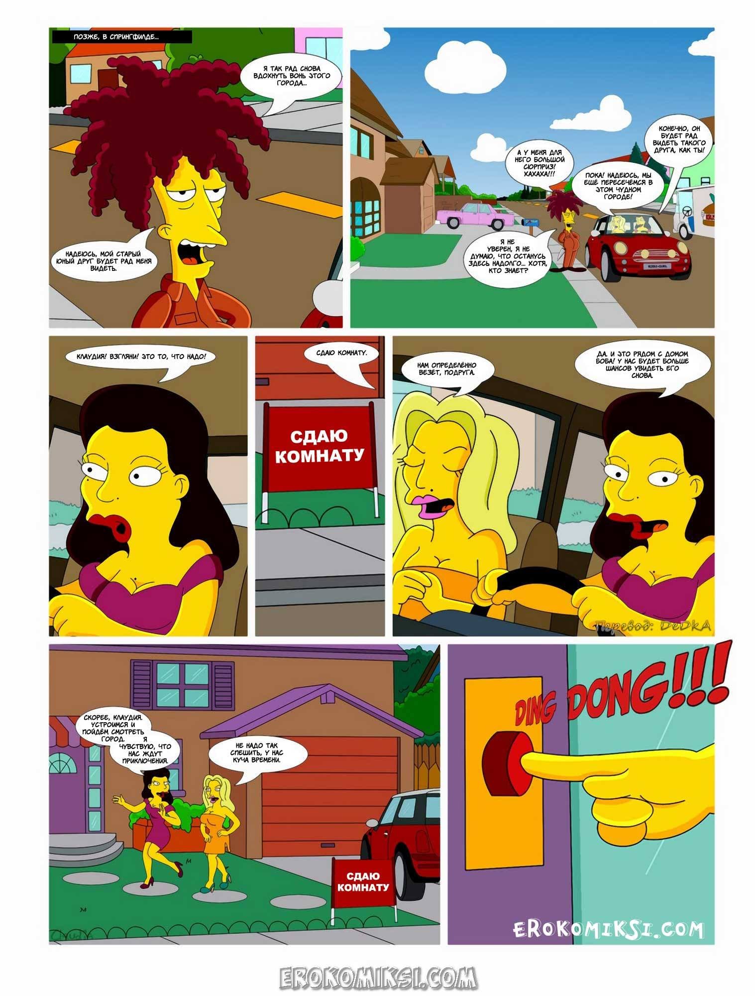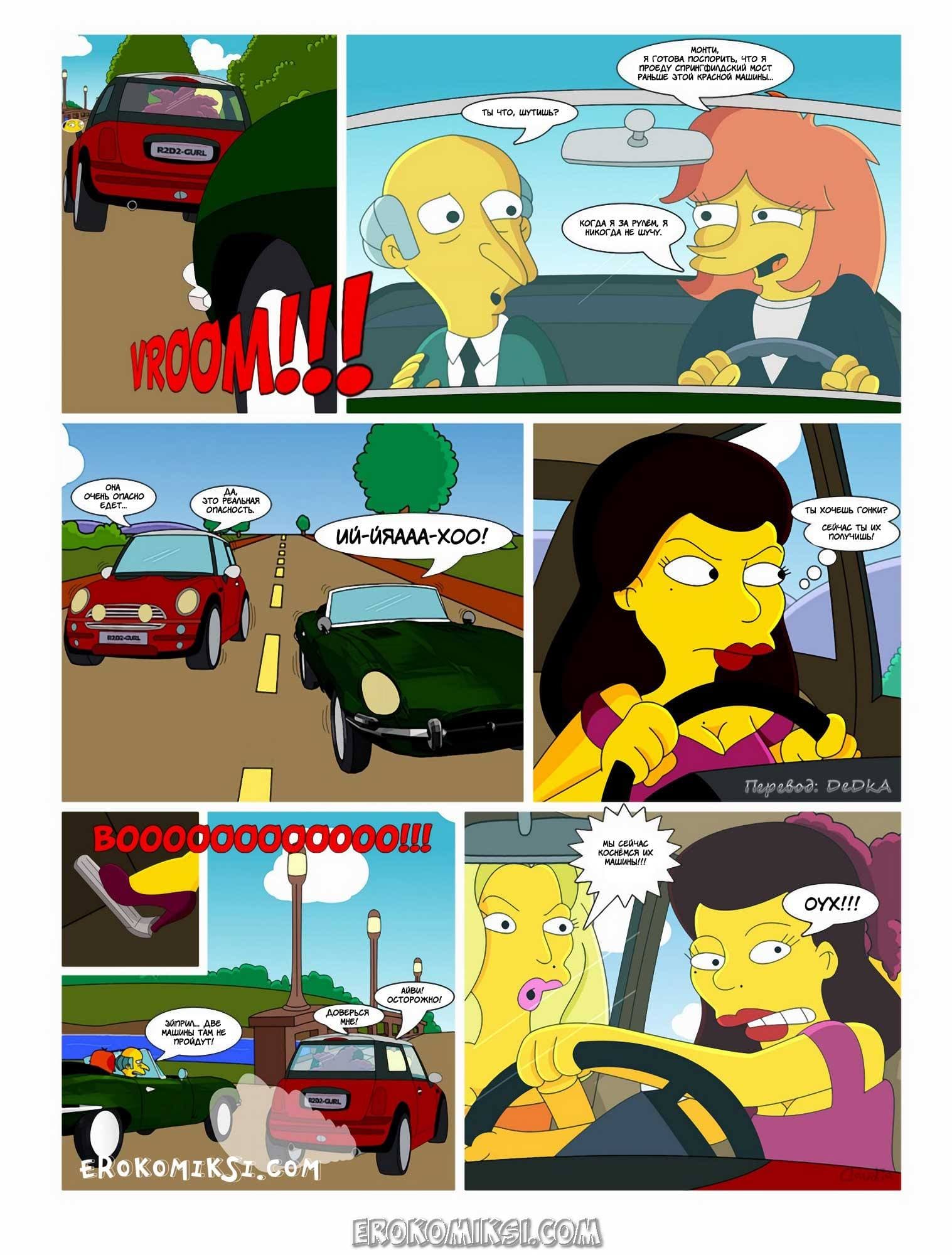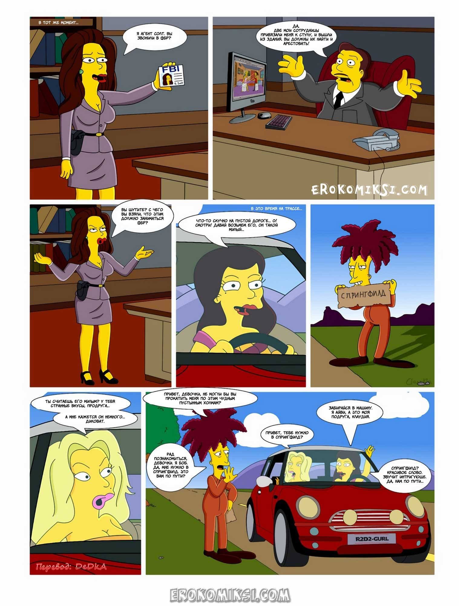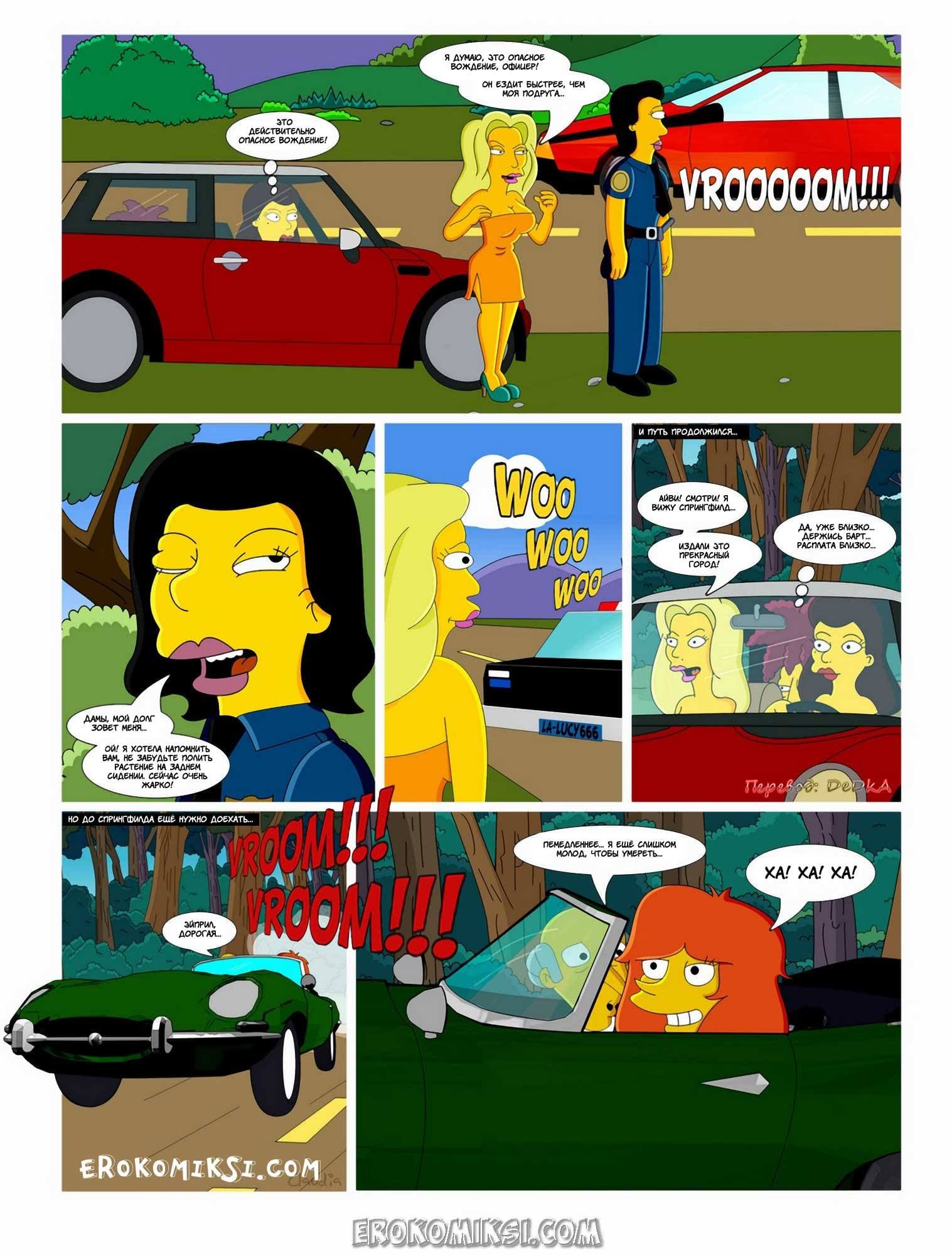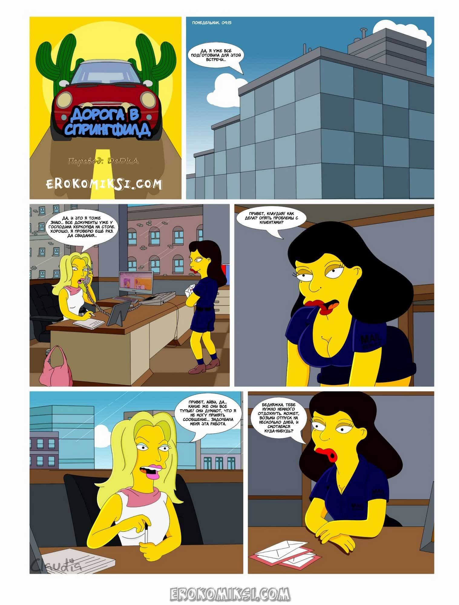 По заказу для нашего сайта был переведен порно комикс Дорога ведёт в Спрингфилд. Данное произведение поведает о том, как две подружки, которым надоело работать и захотелось приключений на свои задницы, грубо надругались над своим боссом, сели в автомобиль и рванули, куда глаза глядят. Дорого привела их в Спрингфилд. В тот самый город Спрингфилд, где живёт Барт, Гомер, Мардж и прочая очень весёлая публика. А уж нарваться в Спрингфилде на приключения, это как два пальца обос… Ну, сами знаете…
