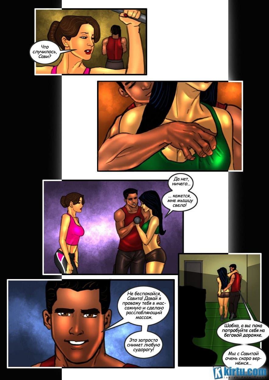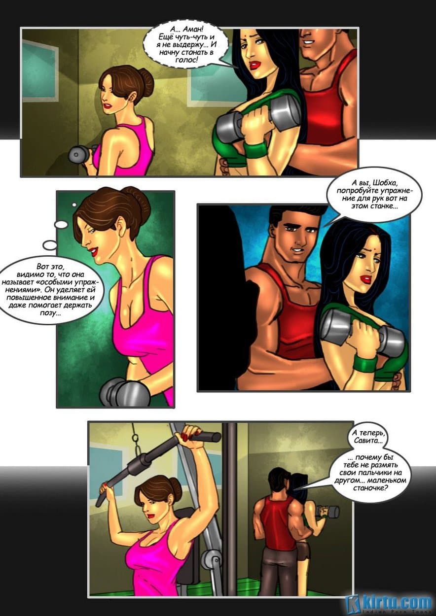 Эро комикс о Савите Бхабхи. Часть двадцатая: Секс – тренинг. Смотря на картинки секс комикса для жаждущих возбуждения людей, вы узнаете, как подруга Шобха просит Савиту научить ее искусству соблазнения. Савита предлагает ей посетить ее занятия в спортзале вместе с профессиональным тренером по физической подготовке.