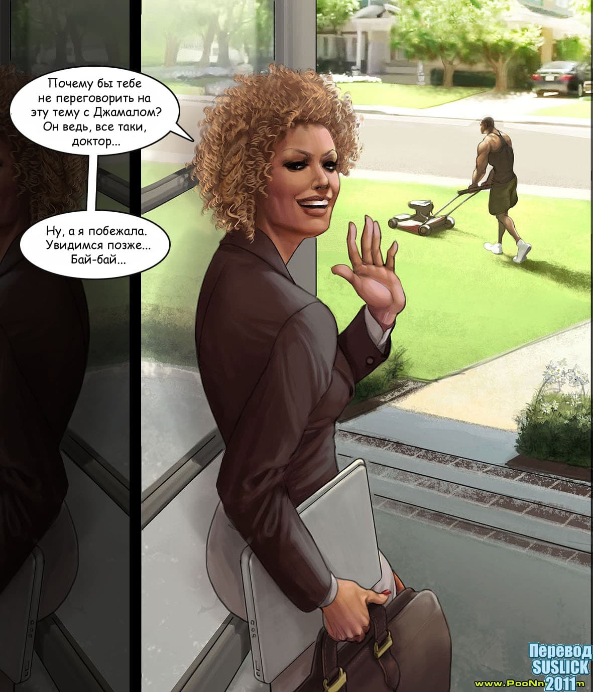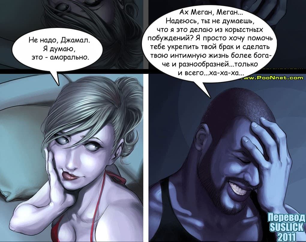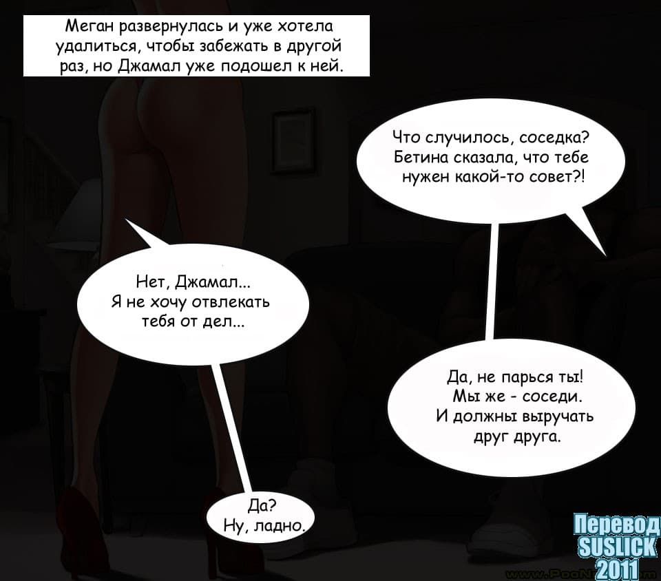 Эта история в порно комиксе начинается с того, что в соседний особняк рядом с домом девушки по имени Меган переезжает чернокожие брат и сестра. Меган идет знакомиться с ними и узнает, что ее черный сосед сексолог. Меган решает переговорить с ним по поводу семейных проблем и получает захватывающие эротические советы с межрассовыми отношениями, и плюс к этому огромный детородный орган.