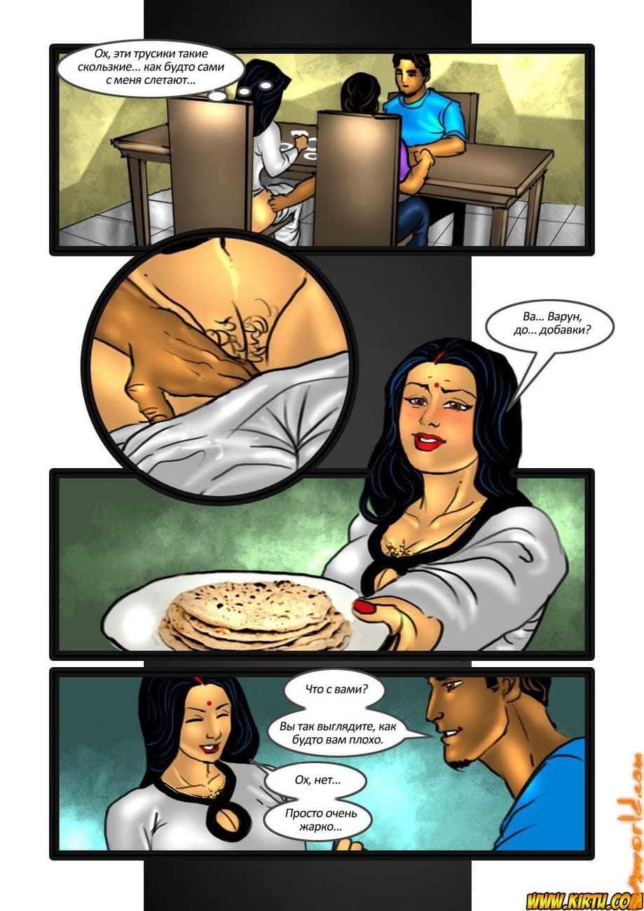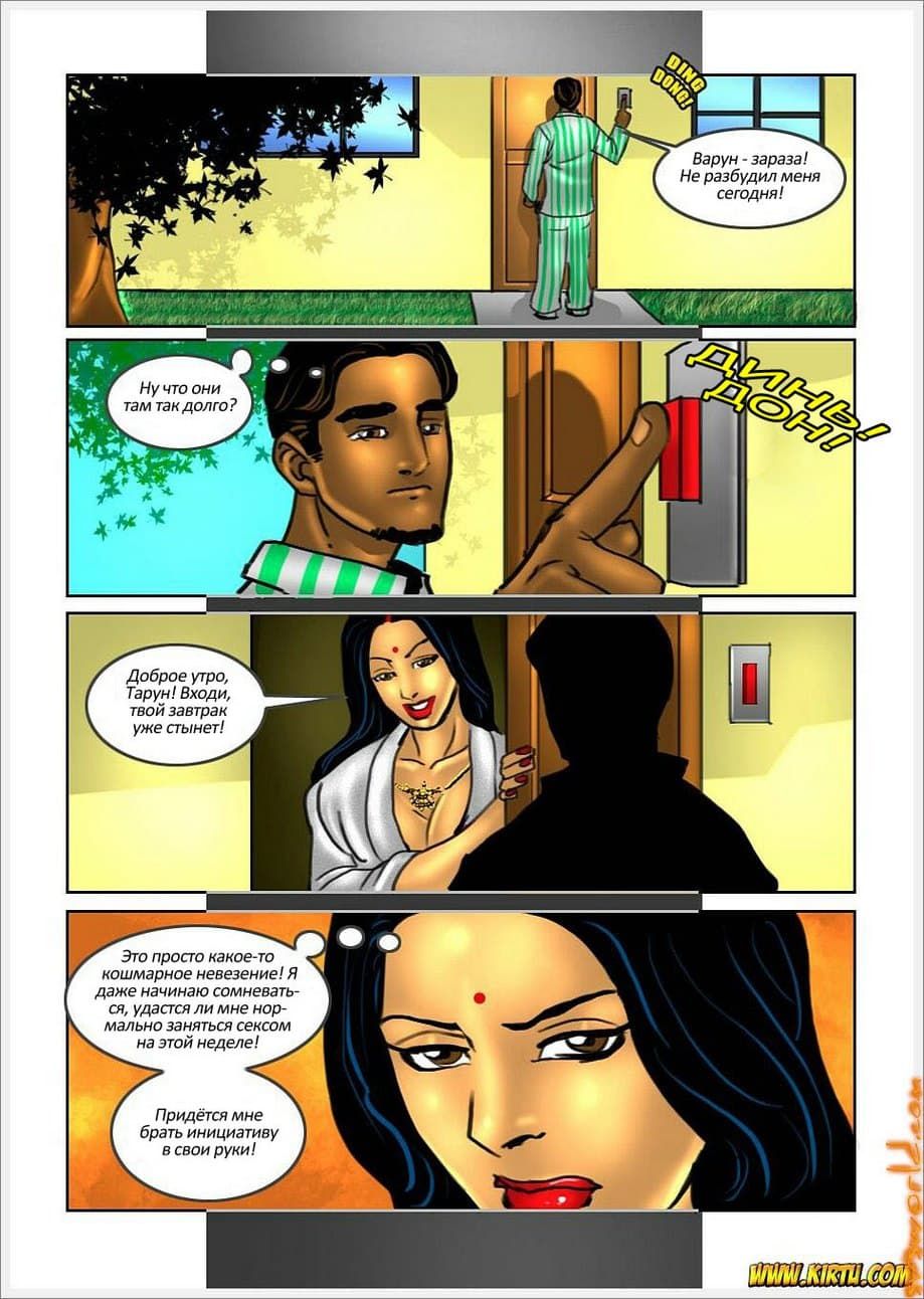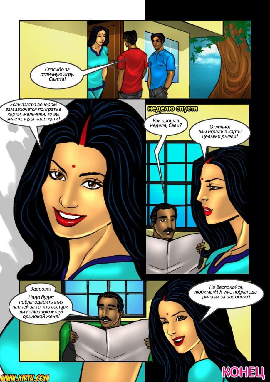 Сексуальное знакомство с соседними мальчишками для Савиты не закончилось. Муж Ашок уезжает в командировку, и наивно просит парней помочь своей жене в ее делах, ну а те, естественно согласились. Еще бы, целую неделю они будут сношать красивую зрелую соседку, которая позволяет им все, что угодно. Смотрите данную часть рисованного порнокомикса и получайте удовольствие.
