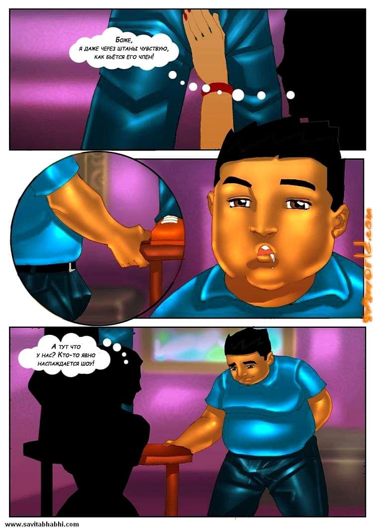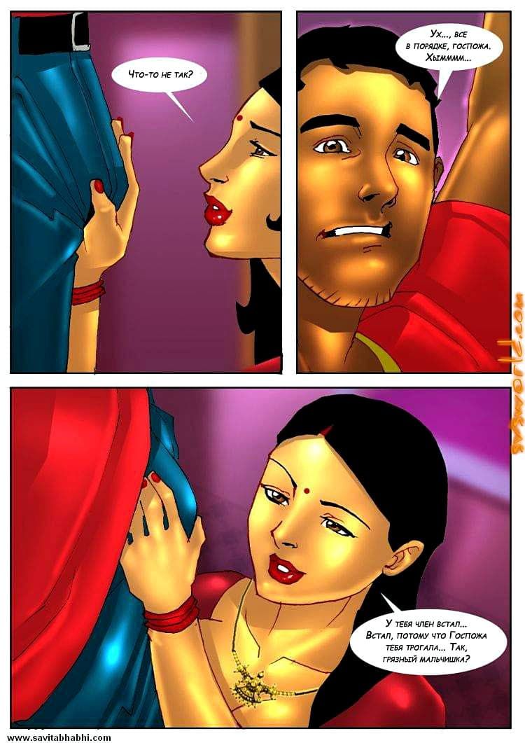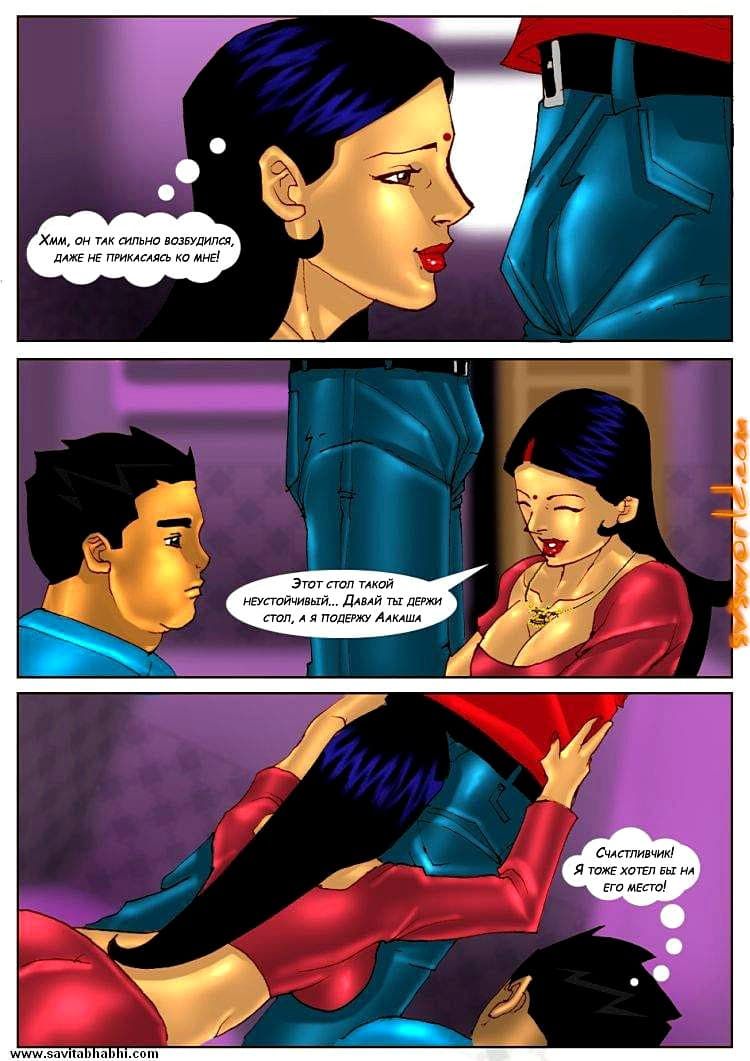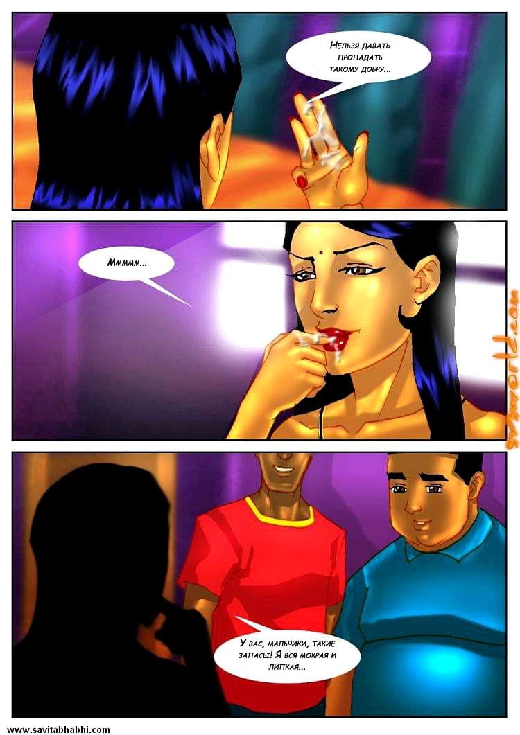 И так перед вами вторая рисованая эротическая история о восхитительной женщине по имени Савита. Сегодня суббота – долгожданный выходной, но даже сегодня мужу нашей героини Ашоку приходится находиться на работе. Савита опять начинает откровенно скучать и думает о любовных утехах. Вдруг в ее окно влетает мяч от крикета, в который играли соседские пацаны. Женщина решает пофлиртовать с ними, когда они приходят к ней с просьбой вернуть мячик. Она обратилась к ним с предложением подать ей вещи с верхних полок шкафа. При этом она так сексуально себя вела, что тут же завела озабоченных молодых людей. Смотрите комикс дальше, и вы не пожалеете…