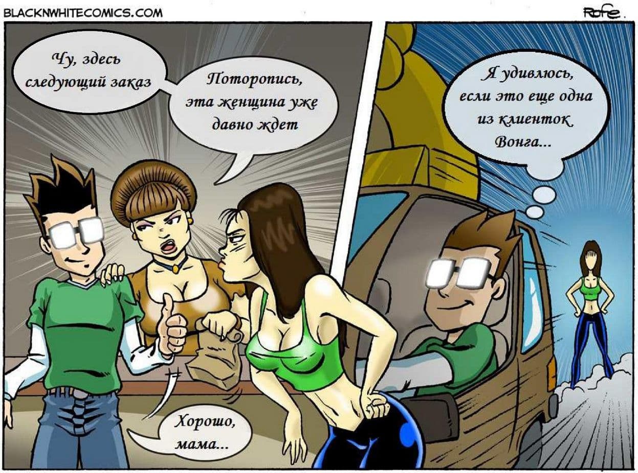 Если вам нравится порнуха, то посмотрите на этот комикс – рассказ, из которого узнаете о сексуальных приключениях молодого парня – доставщика пиццы со зрелыми женщинами, жаждущих траха.
