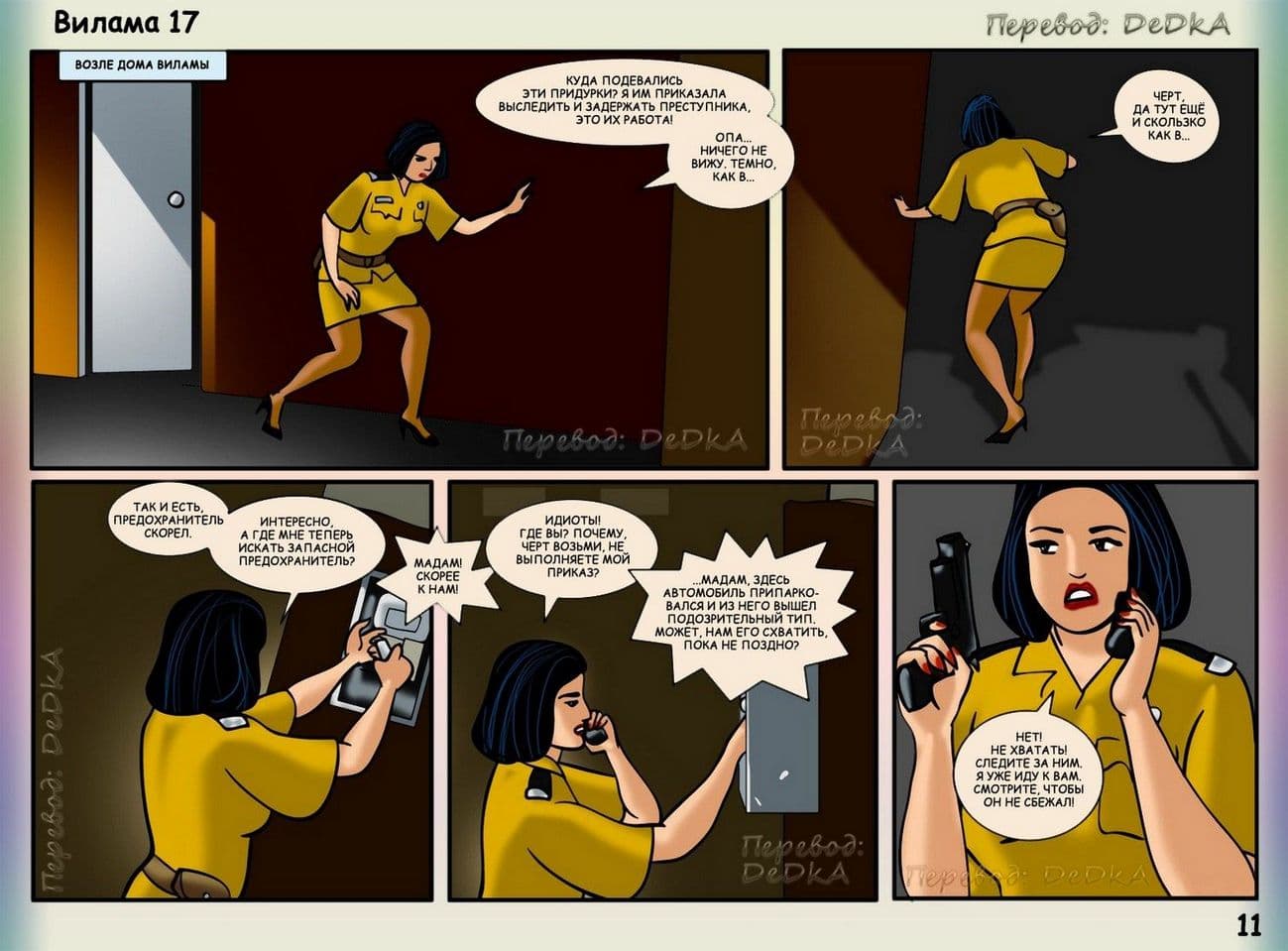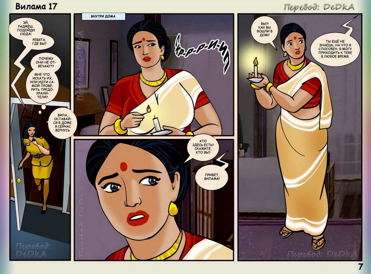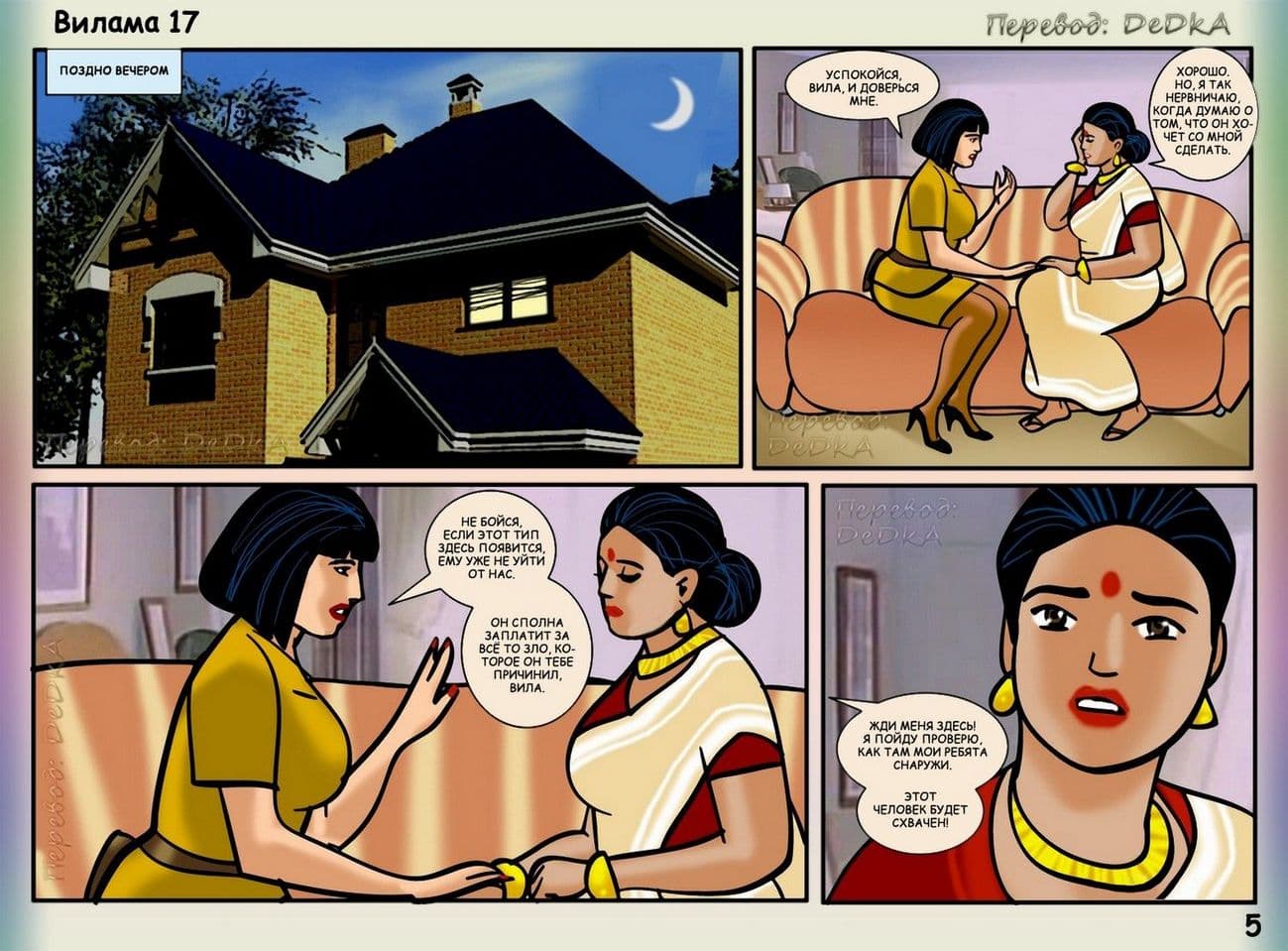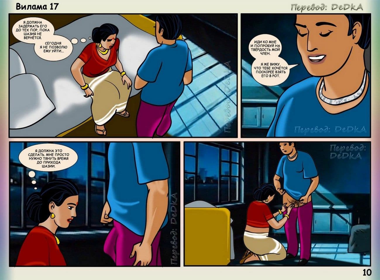 В продолжении рисованного порнокомикса о Виламе речь пойдет о том, как наша благоверная и наивная героиня не находит себе места, от тревожных раздумий, из – за подлого сексуального шантажиста. Этот негодяй делает из порядочной и обворожительной взрослой женщины обычную дешевую проститутку. С этим надо, что — то делать. Вилама обращается за помощью к своей подруге по имени Шазия, которая работает в местной полиции. Добрая знакомая нашей обожаемой Виламы Лакшми обещает принять все меры для поимки озабоченного вымогателя и отправить его очень надолго за решетку. Сказано – сделано, и у дома зрелой женщины была выставлена засада. Но все же сексуальный террорист проник в дом, и потребовал от Виламочки жесткого траха во все ее дырочки. У Виламы не оставалось выбора, как только подчиниться, но только для того, чтобы хитрого ебаря поймали.