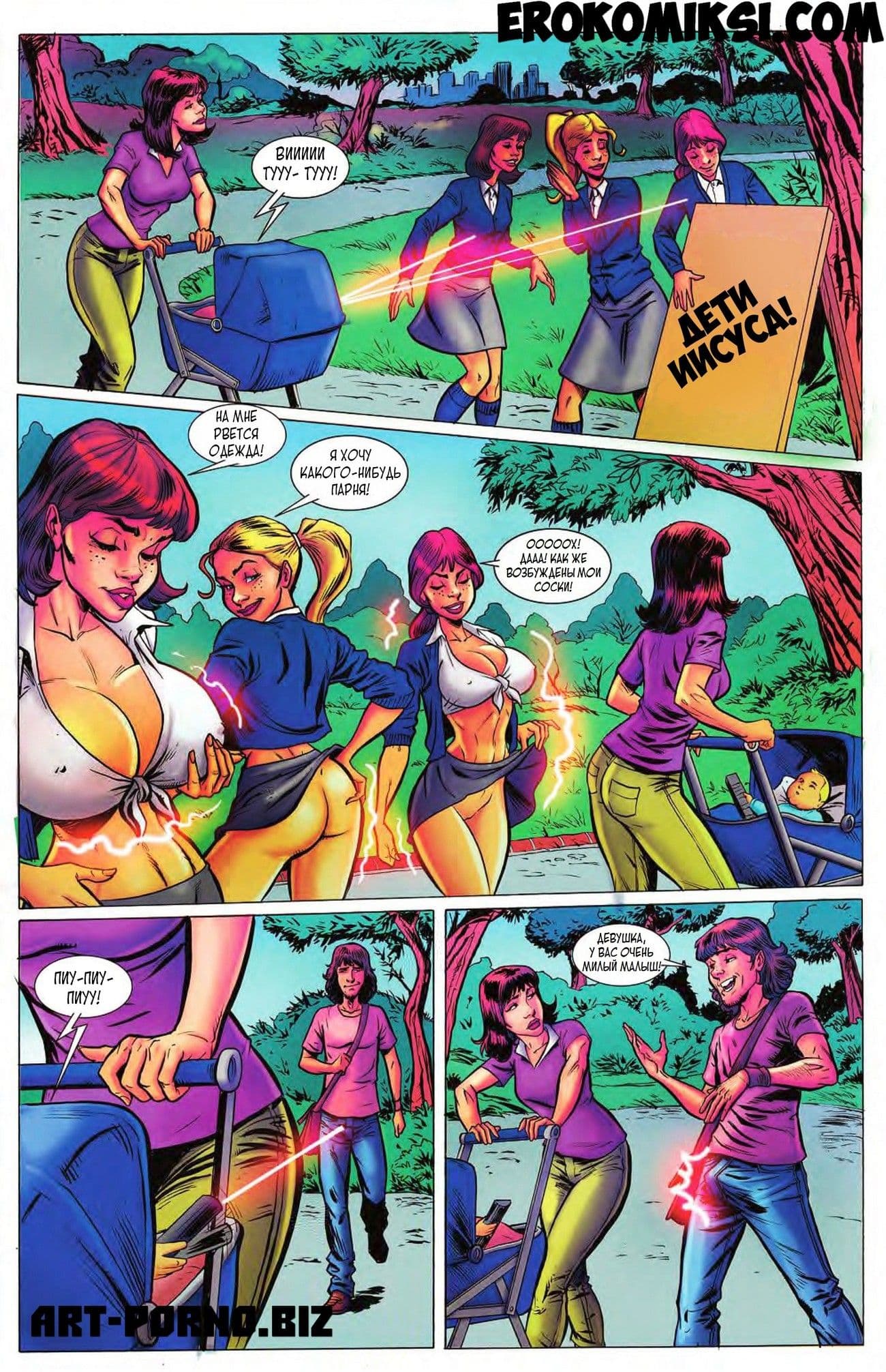 Для всех тех, кто предпочитает эротические комиксы смотреть онлайн, у вас есть возможность познакомиться с героями нового порно комикса. Сюжет этой истории начинается с того, что из окна многоэтажного дома выпал пульт, упавший в коляску к малышу, которого выгуливала симпатичная мамаша. Но пульт управления оказался не простой, а позволяющий управлять похотливыми желаниями женщин и мужчин вокруг. И пока бэби просто так нажимал на нем кнопки, все взрослые вокруг очень даже возбудились…