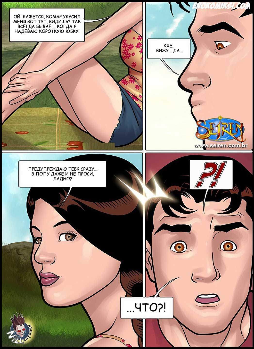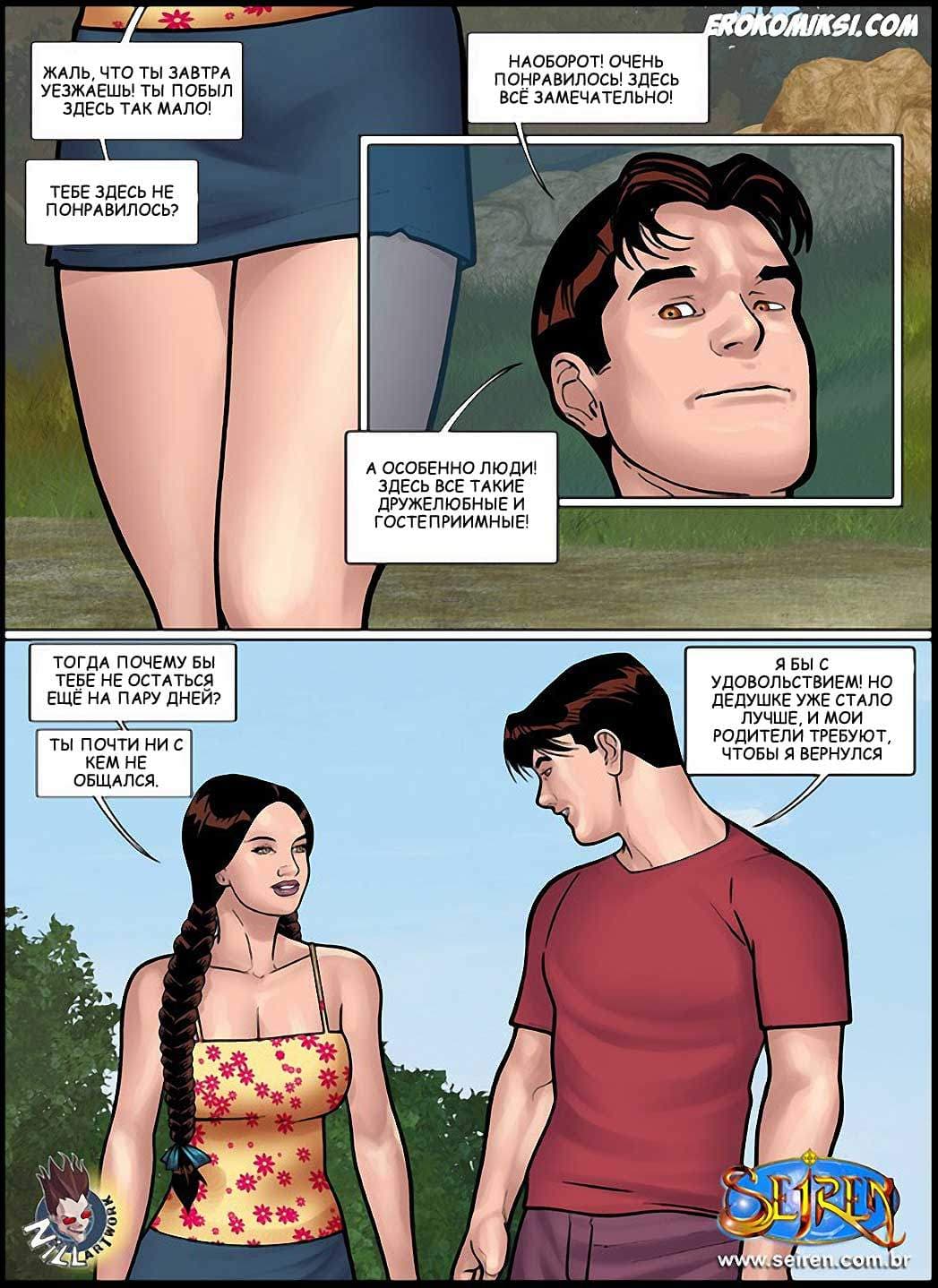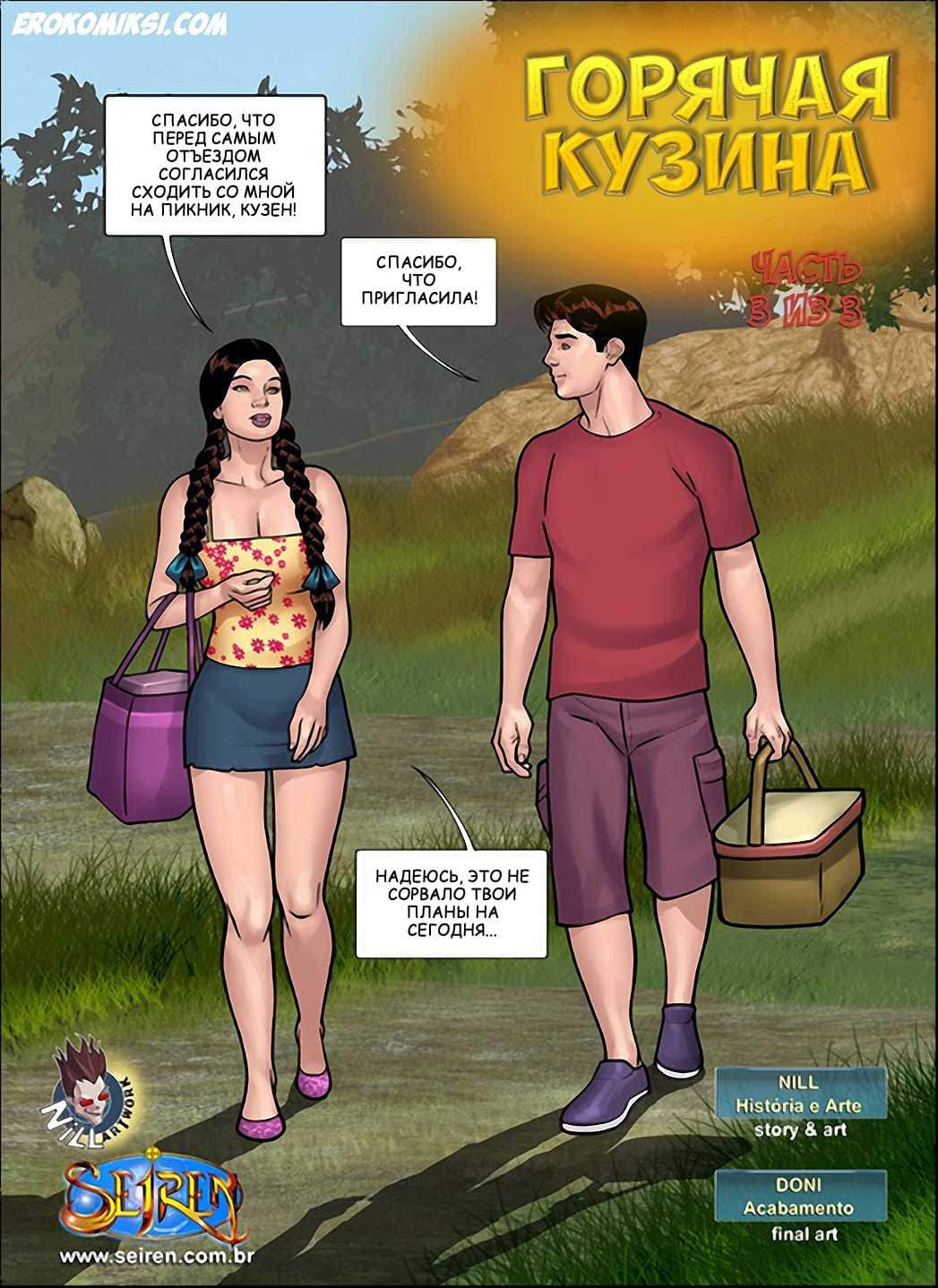 Эро комикс Горячая кузина в 18 части, 3 эпизоде расскажет о том, что за то время, что Луис провёл в деревне у родственников, с ним успели перетрахаться все подружки его кузины Люсии. А вот, что касается самой кузины, то Луис до последнего дня не чувствовал её интереса к себе. И вот в день перед его отъездом, Люсия вдруг пригласила его на природу… на пикник… только он и она… Что же будет дальше?