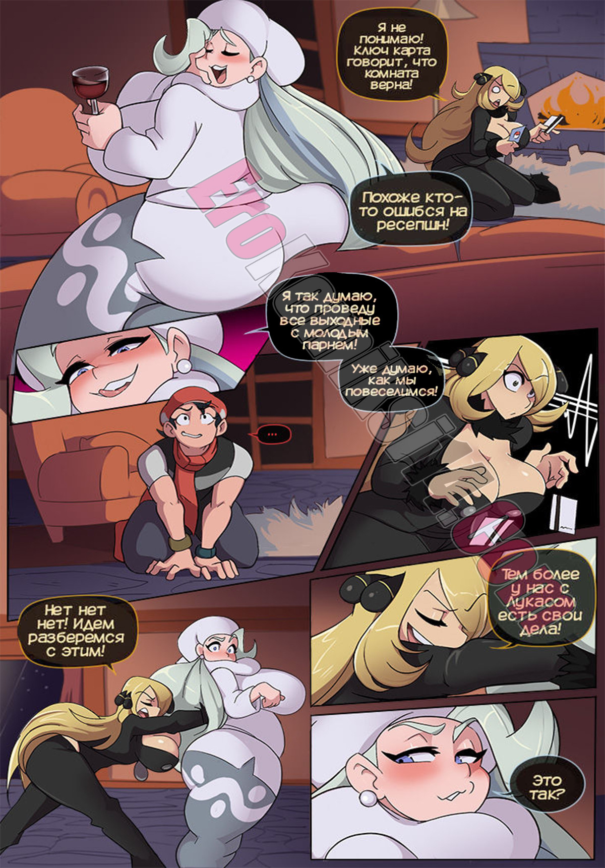 Порно комикс Покемоны. Гость Синтии. Cynthia Guest. Schpicy Сисястой красотке блондинке дома стало очень скучно и поэтому она решила позвать к себе своего дружка. Сходу она набросилась на него и прижала его лицо к своим большим сочным сиськами, после чего отправилась с ним на диванчик.