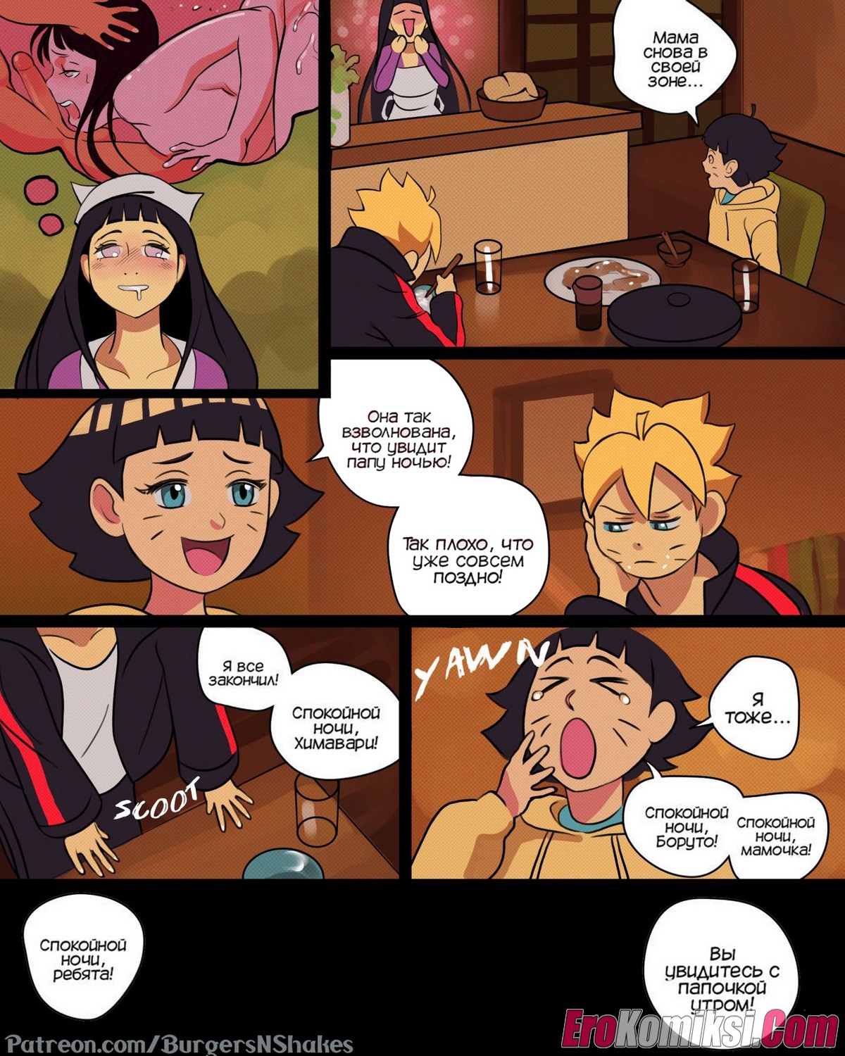 Хината и Боруто. Горячая милфа по имени Хината постоянно возбуждена от мысли о сексе с Боруто. Но он постоянно занят своей учебой. Женщина придумала как соблазнить парня и заняться с ним сексом. Она пола в его комнату совершенно голая.