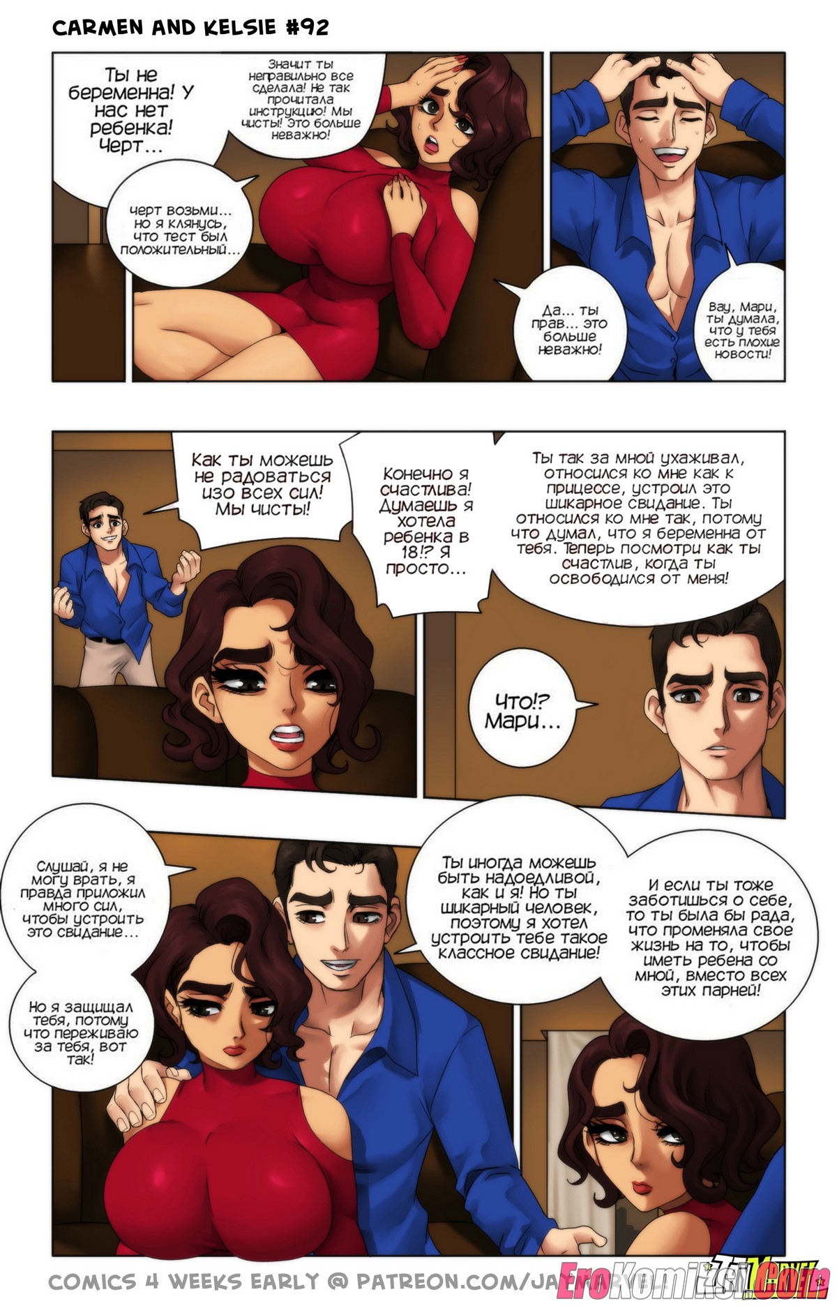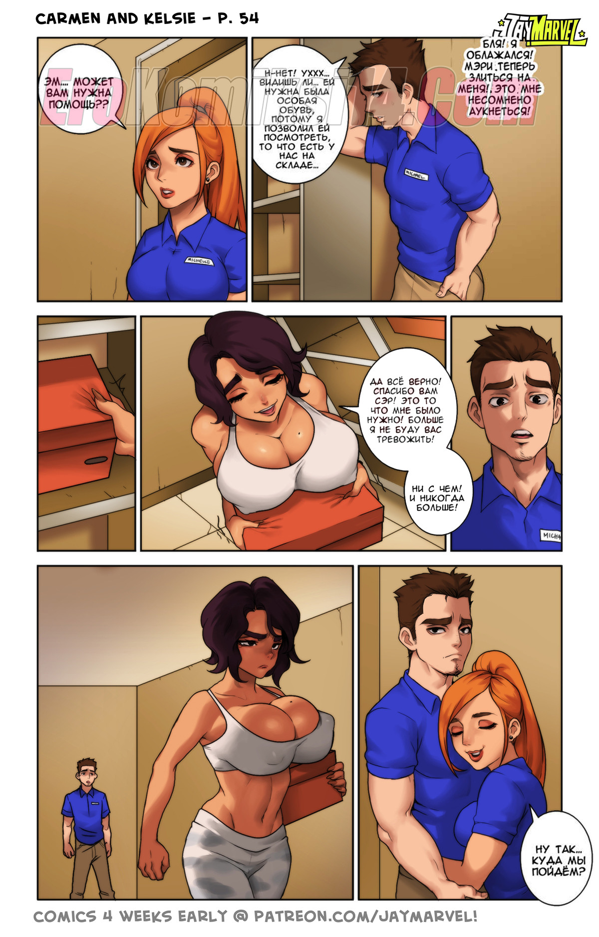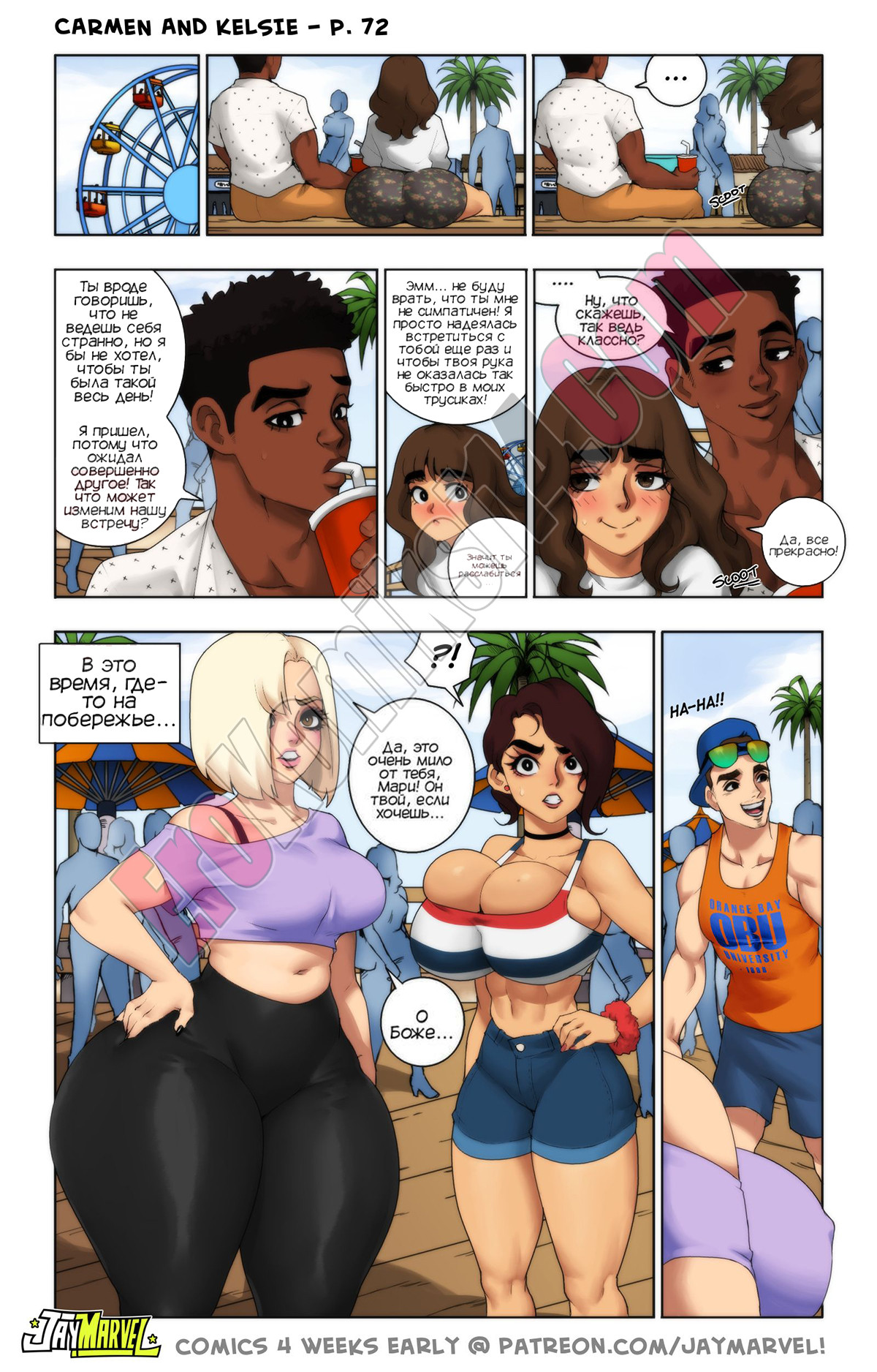 Порно комикс Кармен и Келси. Carmen x Kelsie. Jay Marvel. На русском. После жаркого секса с брюнеткой. Она предложила парню встречаться на постоянке. Но его эта мысль испугала, так как он не сможет трахаться с еще двумя красотками. И начал мычать и сопротивляться. Как ему удастся выкрутиться из такой деликатной ситуации.