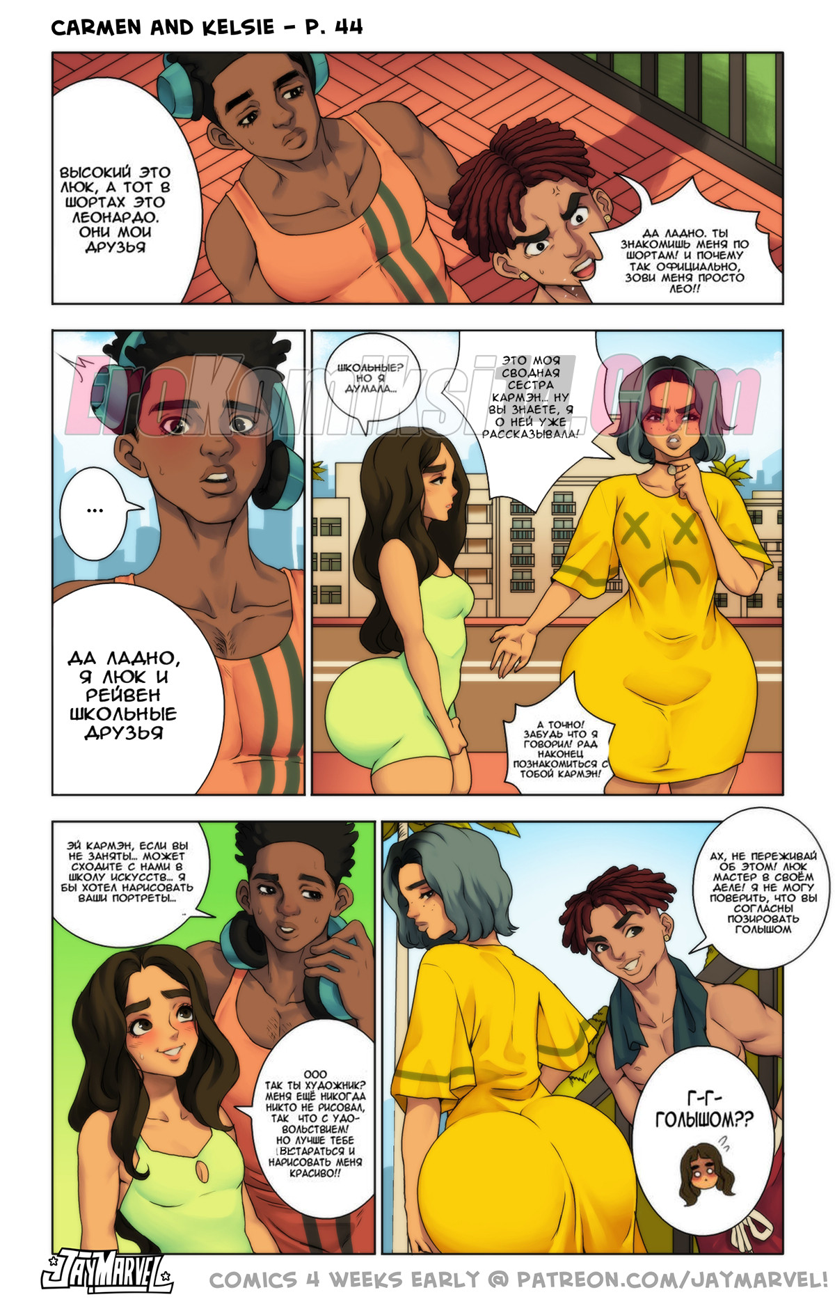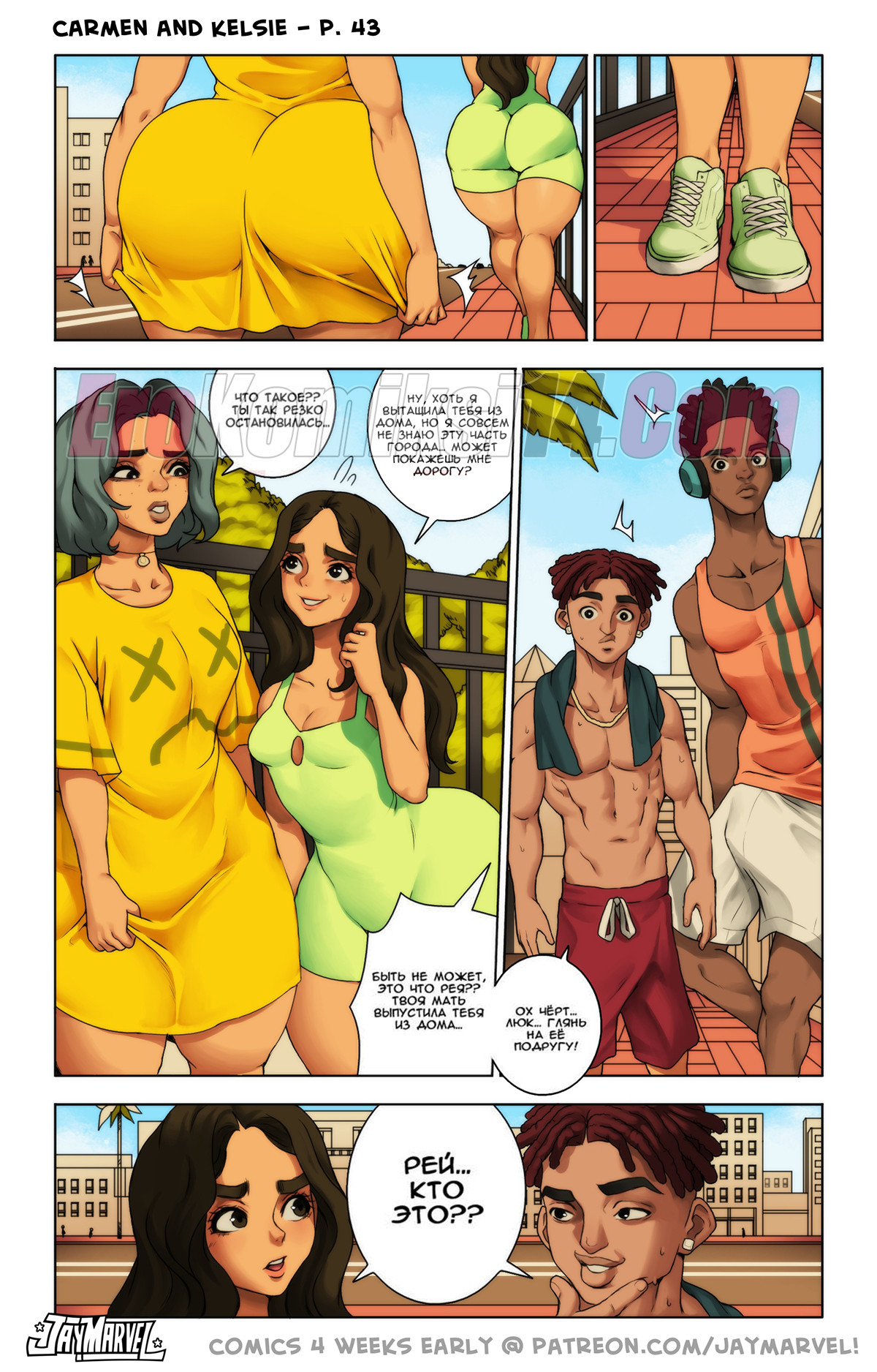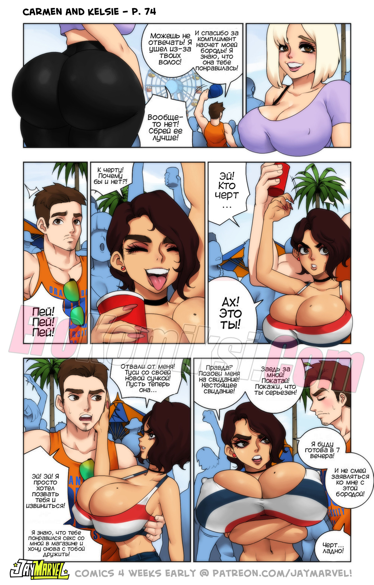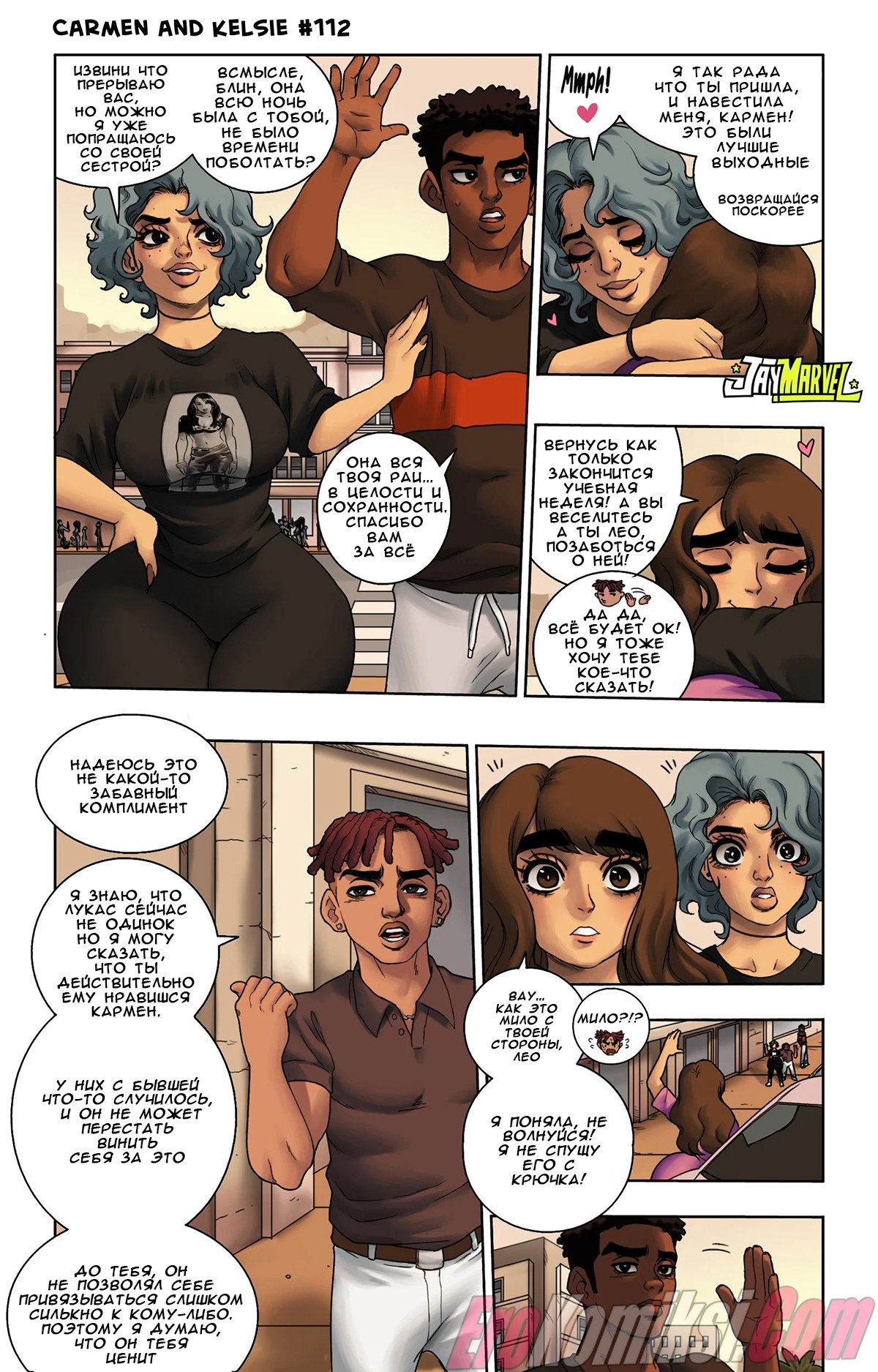 Порно комикс Кармен и Келси. Carmen x Kelsie. Jay Marvel. На русском. После жаркого секса с брюнеткой. Она предложила парню встречаться на постоянке. Но его эта мысль испугала, так как он не сможет трахаться с еще двумя красотками. И начал мычать и сопротивляться. Как ему удастся выкрутиться из такой деликатной ситуации.
