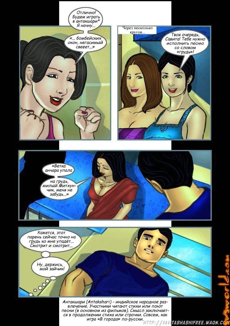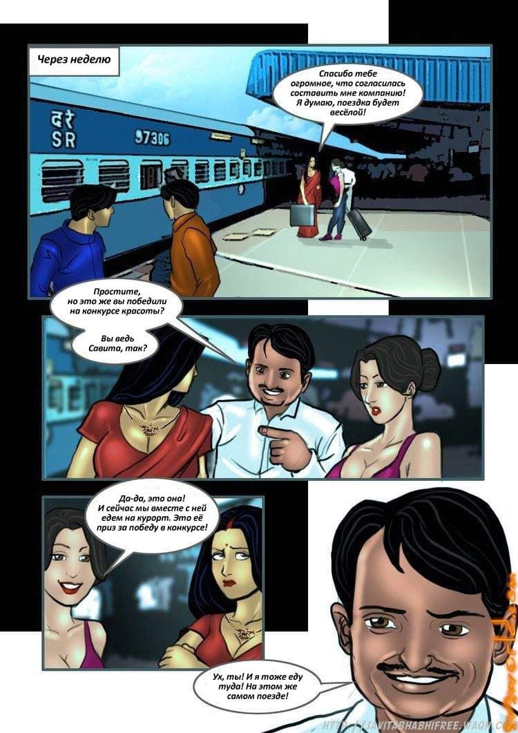 Этот индийский рисованный комикс покажет нам, как после победы в конкурсе красоты Савите вручили путевку на горнолыжный курорт. Муж Савиты Ашок по ряду причин с ней поехать не смог, и его заменила подруга Шобха. В поезде женщины познакомились с симпатичными парнями, а с одним из них Зрелая женщина захотела потрахаться.