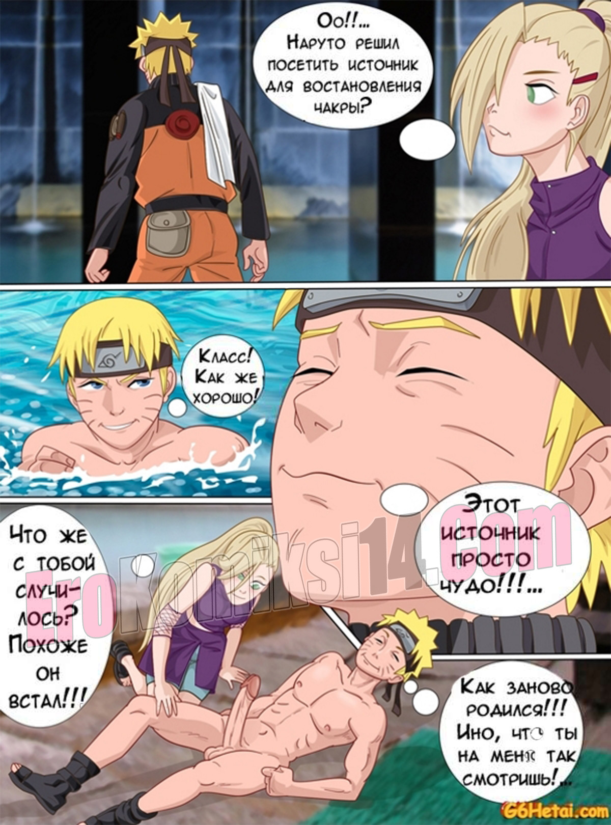 Порнокомикс Наруто. Волшебный горячий источник. Наруто отправился в волшебный источник, чтобы восстановить силы, но из-за этого у него встал хуй. Его шикарная подруга решила ему с этим помочь и она начала сосать его хуй. Девушка очень возбудилась, поэтому решила продолжить и позволила парню себя отъебать.
