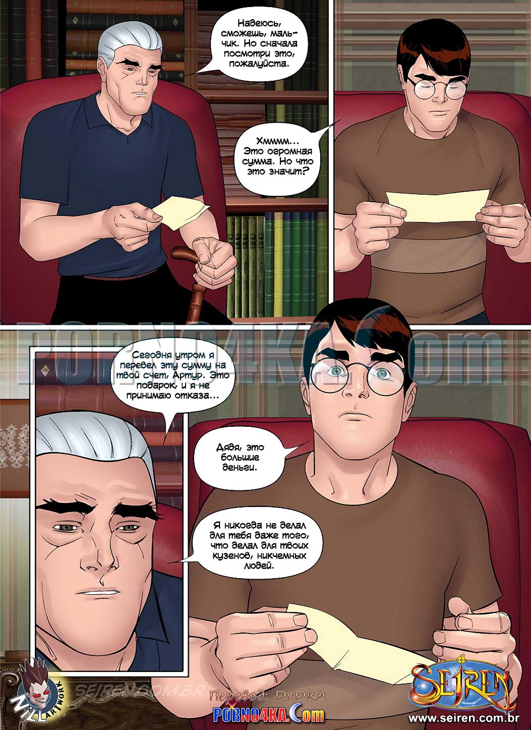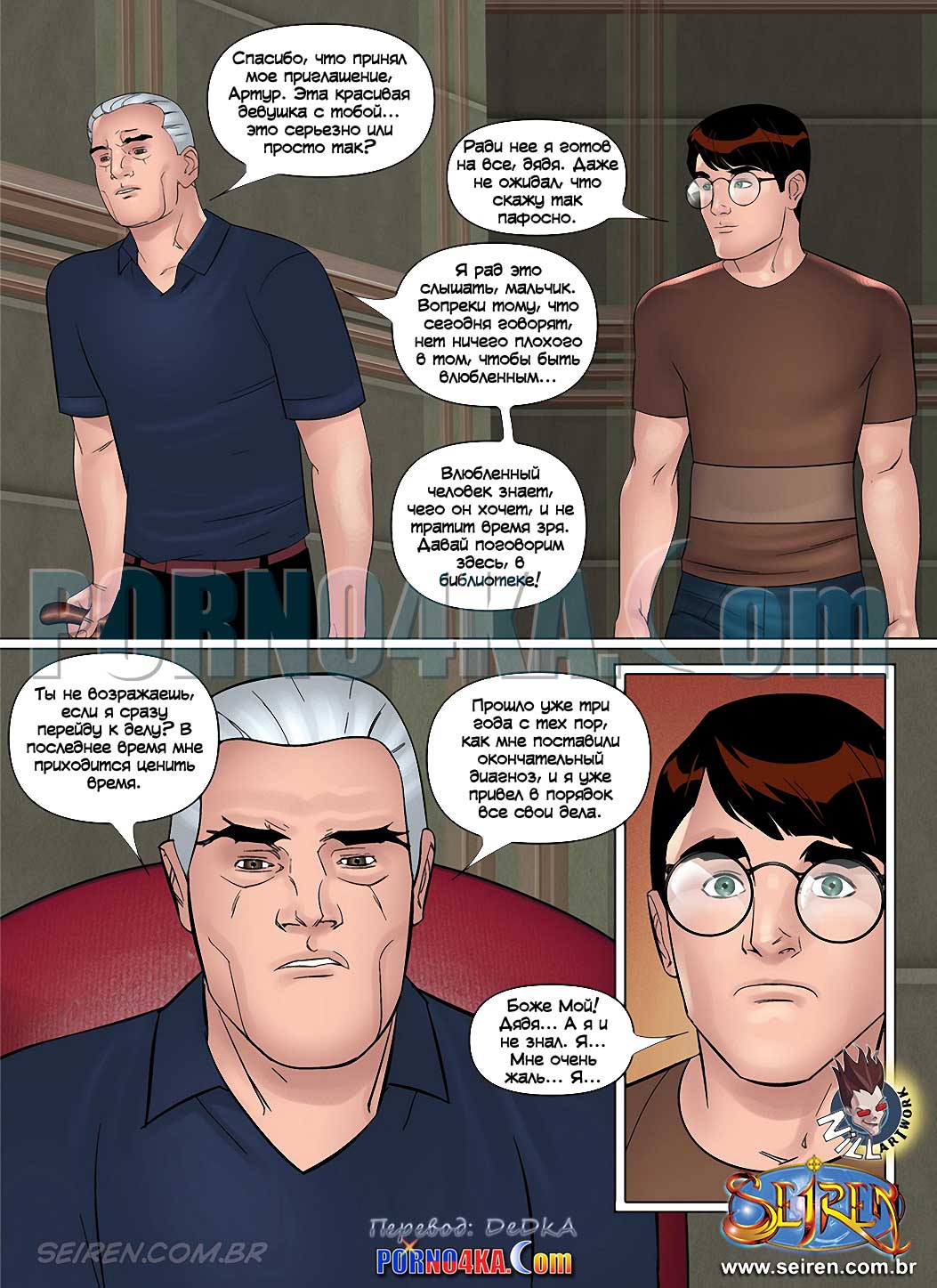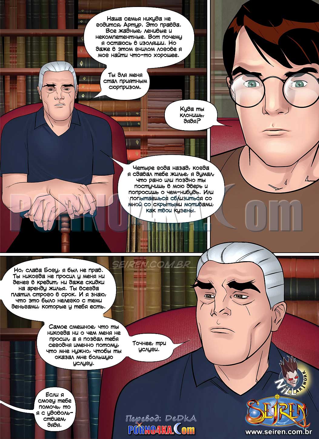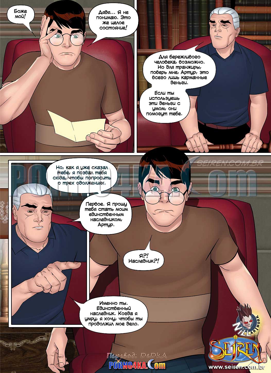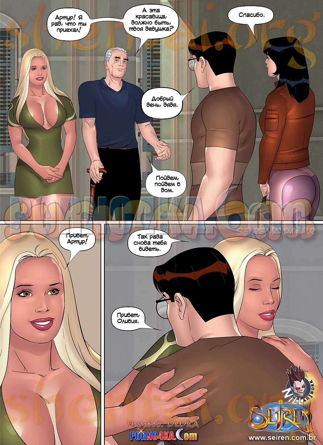 Порно комикс Ох, семейка. Часть 14. Seiren. Все еще не разрывая отношений с Полиной, Артур сближается с Анной. Он даже берет ее с собой, когда дядя, не любивший лишних гостей, приглашает Артура прийти к нему для важного разговора. Дело в воле. Оказывается, дядя Артура безнадежно болен, и хочет сделать его единственным наследником, чтобы, когда дядя ребенок достигнет совершеннолетия, Артур передаст ему наследство. Но почему жена дяди Артура тоже этого хочет И самое главное, дядя, который больше не может стать отцом, не имеет ребенка Как все это понимать.