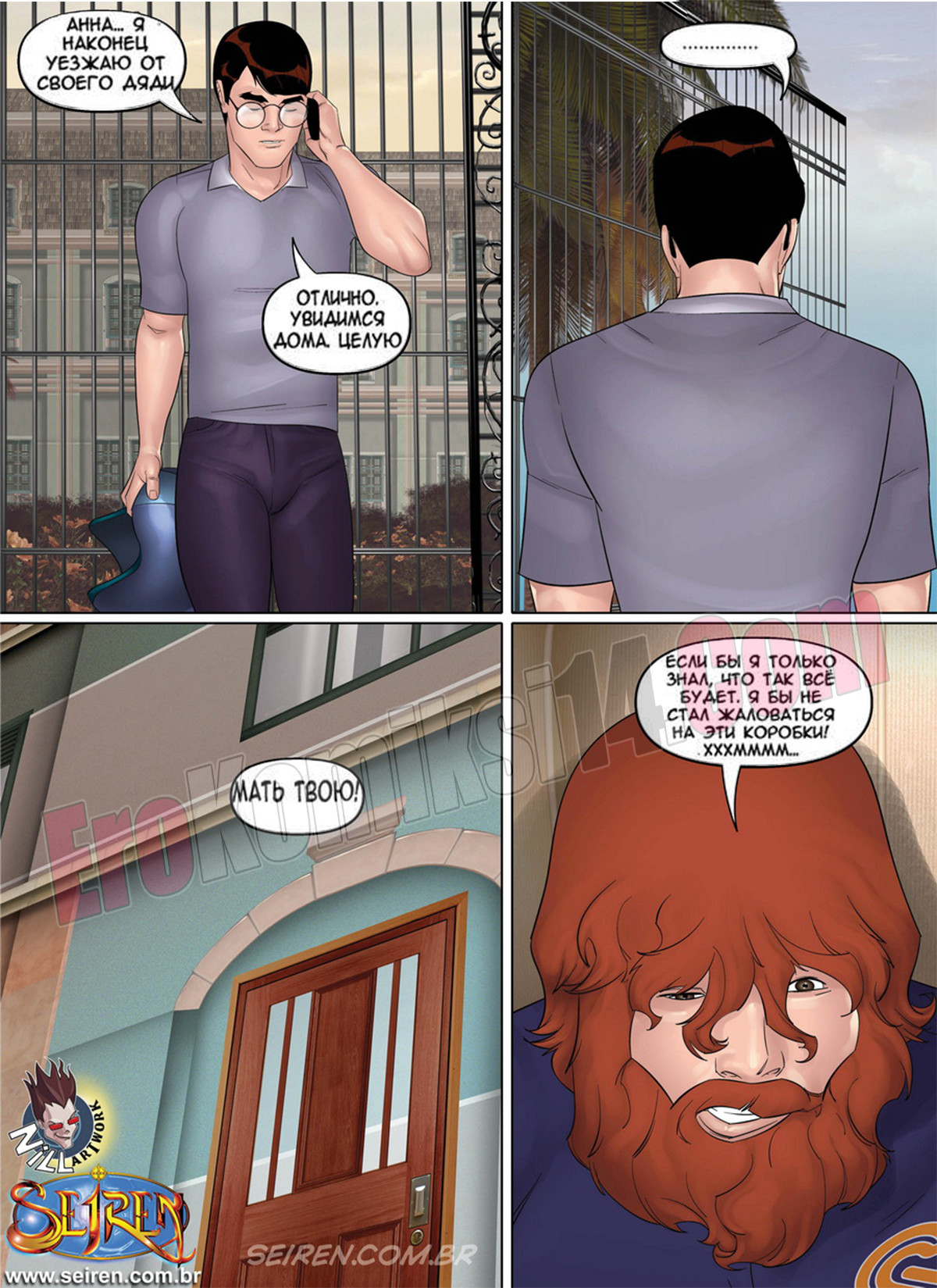 Порно комикс Ох, семейка 16 часть. Seiren. Рыжая милфа трахает бородатого рабочего мужика дома. Она начала сосать его большой член, а затем оседлала и трахнула его, а затем они были сожжены ее подругой и присоединились к ним.