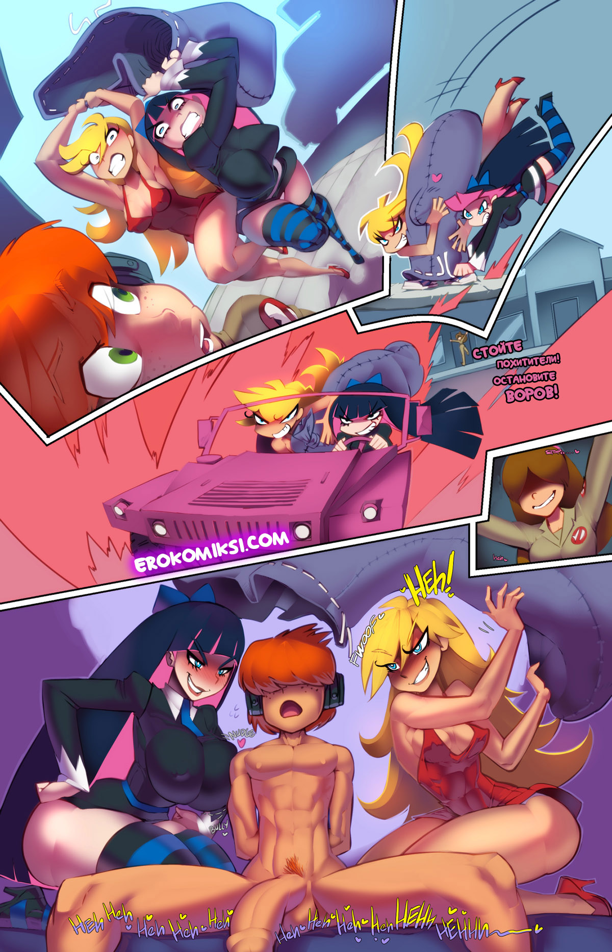 Порно комикс Охотник за кисками. Часть 4. Haunted Pussy. Panty Raid. Fred Perry Трусельда и Чулочка решили вернуть своего дружка себе. Ведь Мэйбл постоянно с ним трахается и не даёт ему далеко от неё уйти…