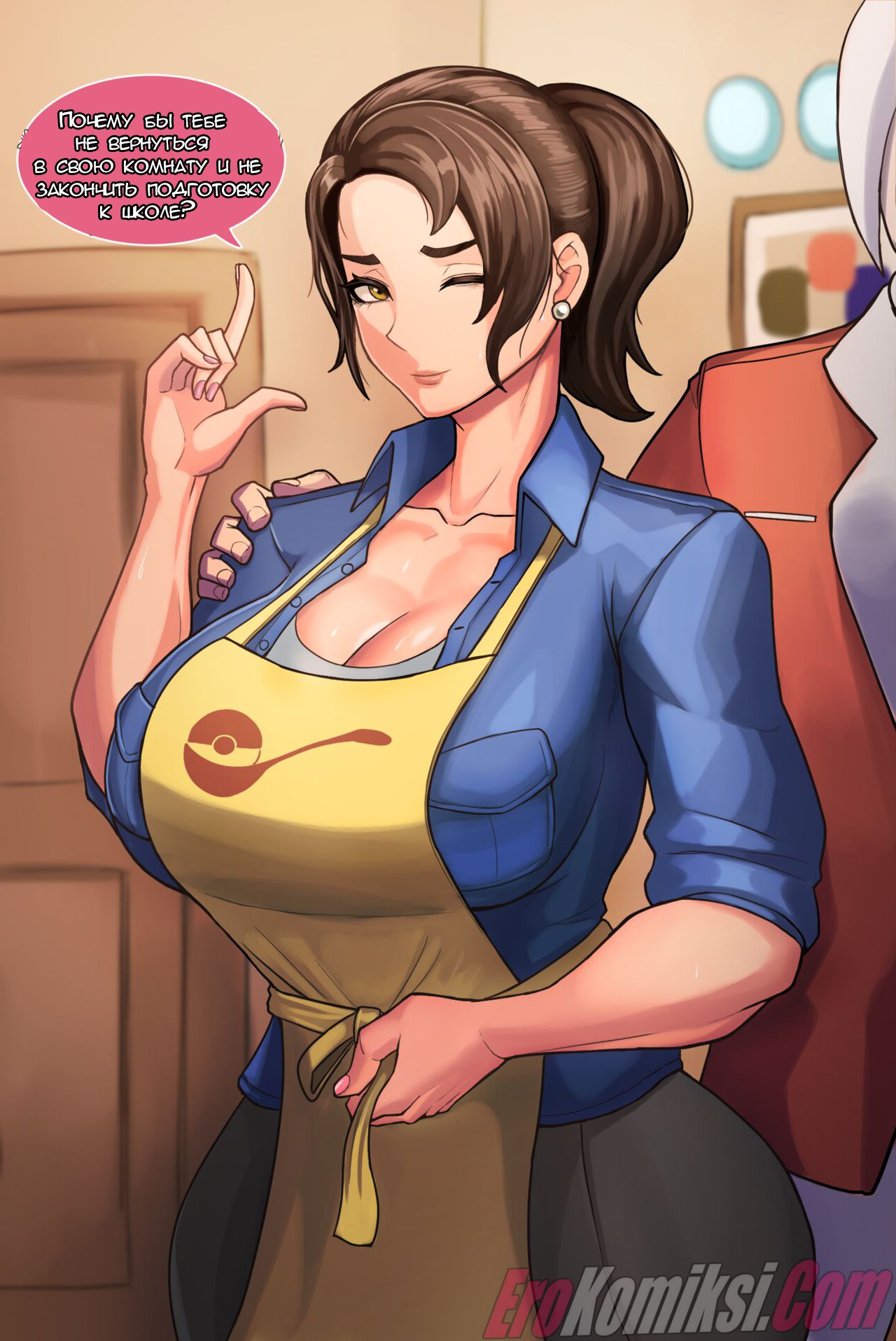 Порно комикс Покемамочка. Pokemommy. Kingbang. Аппетитная большегрудая милфа решила остаться и пообщаться с...