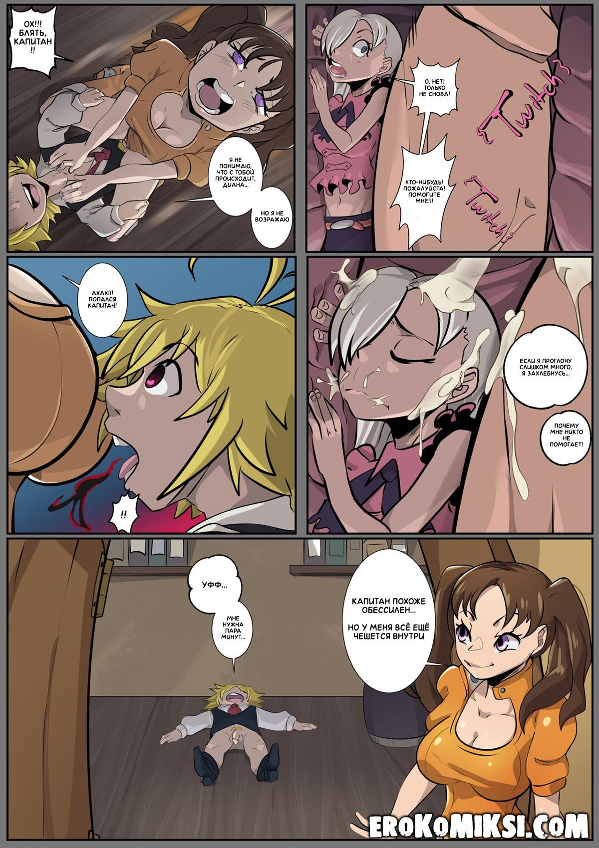 Порно комикс 7 смертных грехов. Я хочу глубже! После того, как великанша Диана случайно засосала в свою киску Элизабет, та пыталась выбраться оттуда и тем самым, вызывала у Дианы зуд в киске. Диана уже не знала, как ей избавиться от этого зуда и отправилась к капитану Мелиодасу и стянув с него штаны, начала прыгать на его члене, но член капитана оказался слишком мал и не смог избавить Диану от зуда. Тогда, Диана отправилась к Кингу и обнаружив, что у Кинга нереально огромный член, смогла удовлетворить свою потребность…