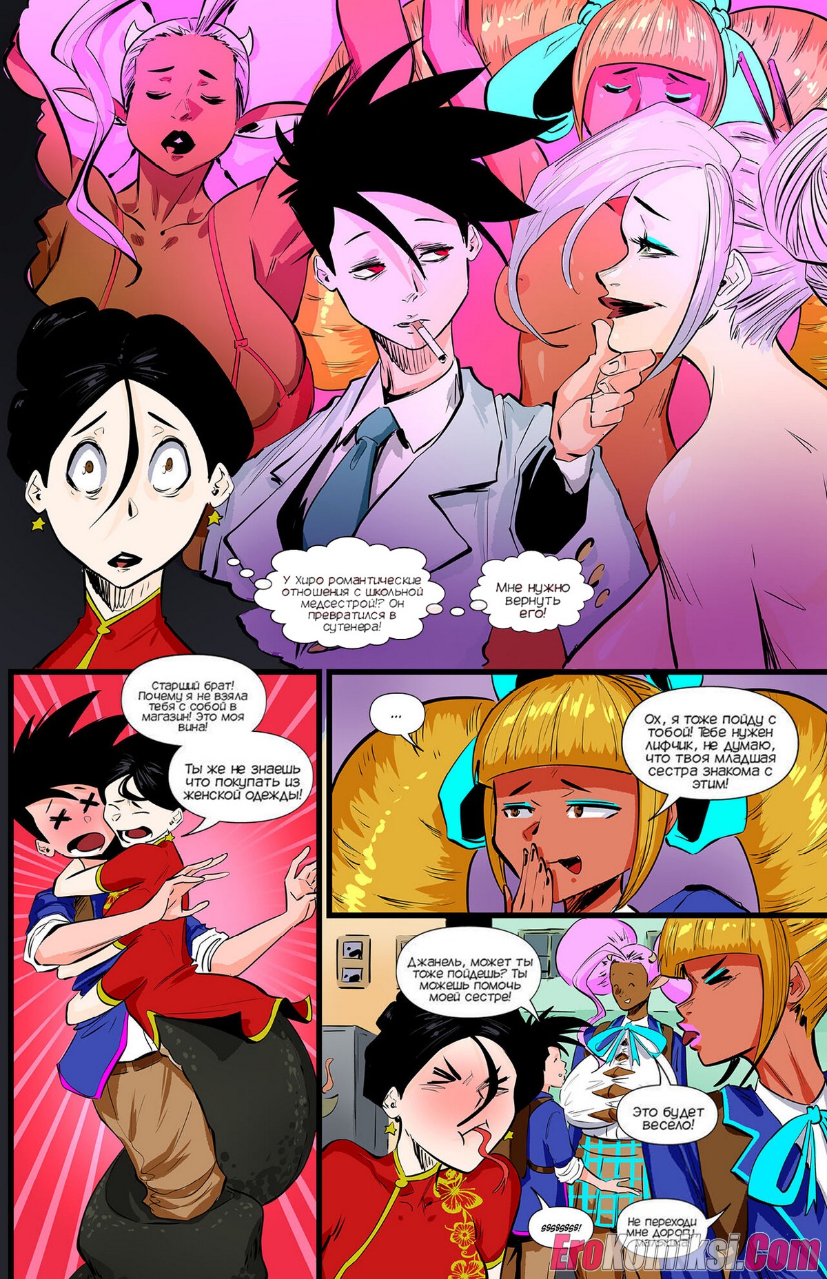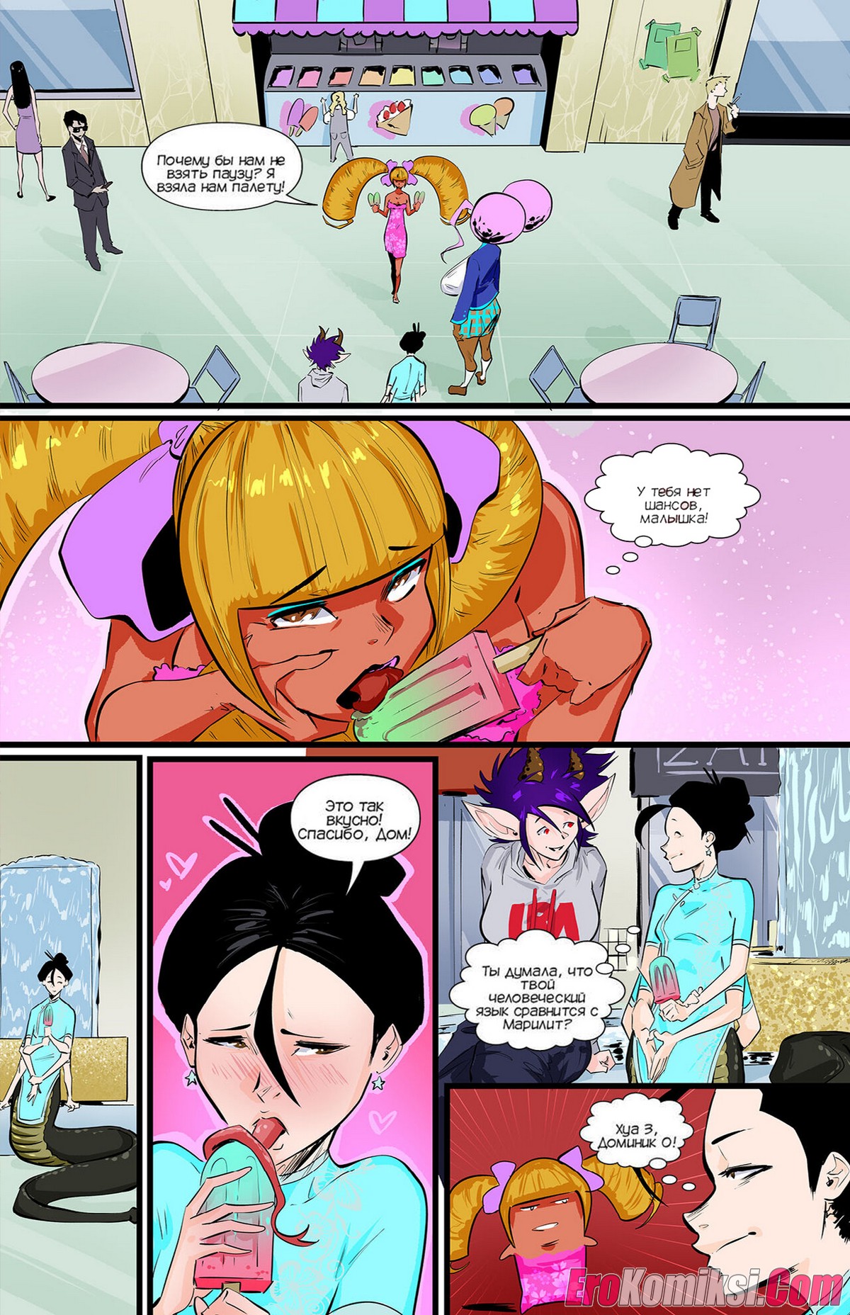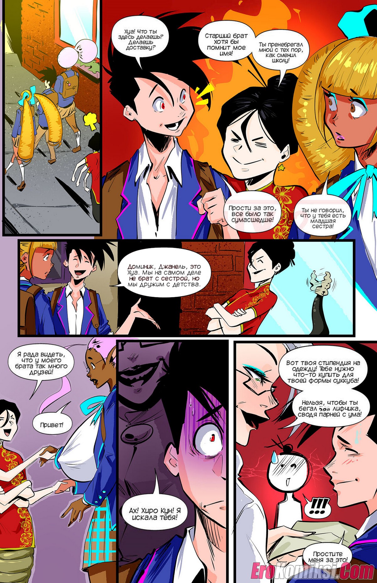 Порно комикс Академия девушек монстров. Часть 5. Monster Girl Academy. Worky Zark Парень гулял со своими подругами и встретил свою подругу детства. Они все вместе отправились в магазин одежды, чтобы подобрать для парня одежду для его формы суккуба.